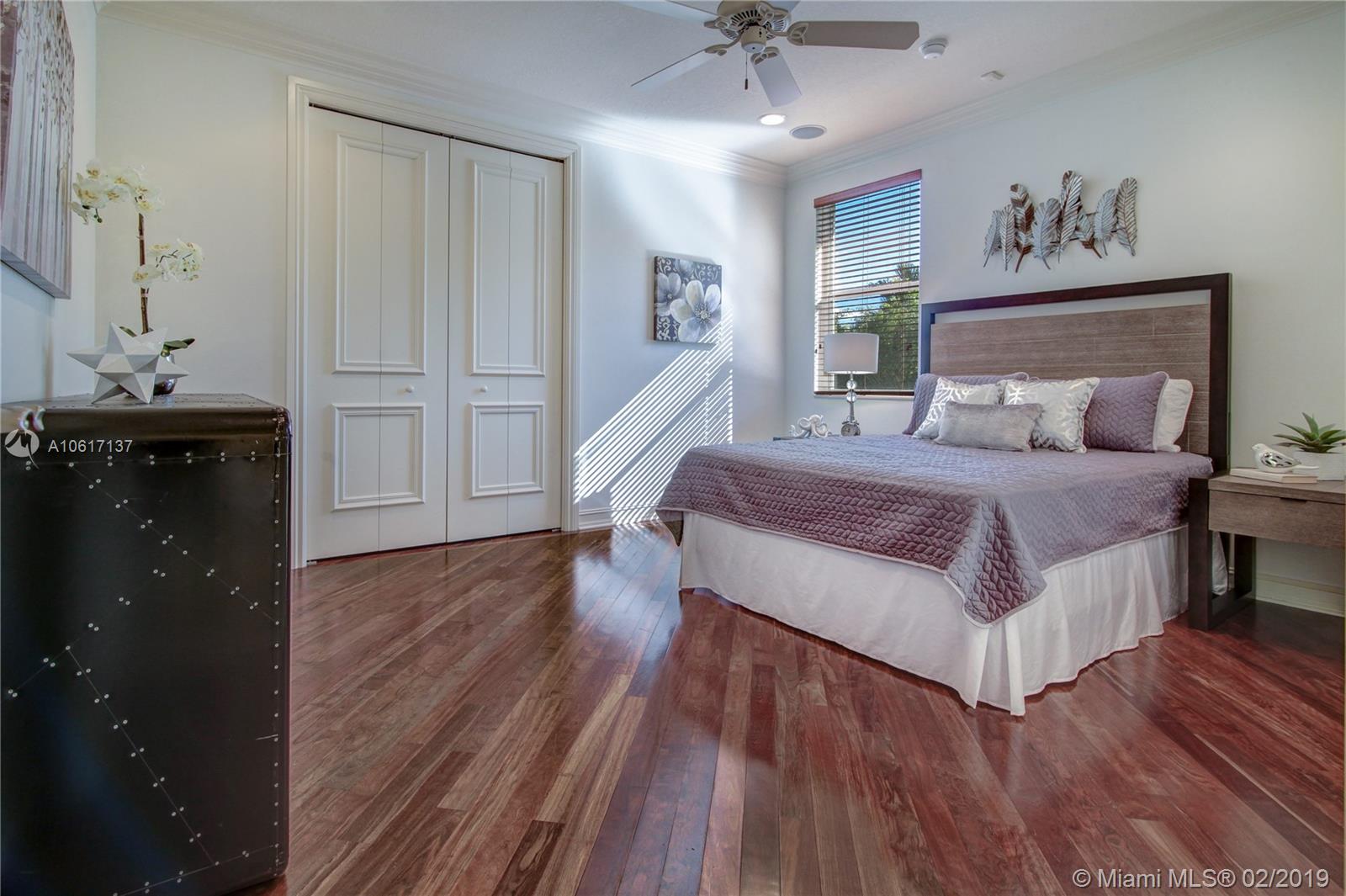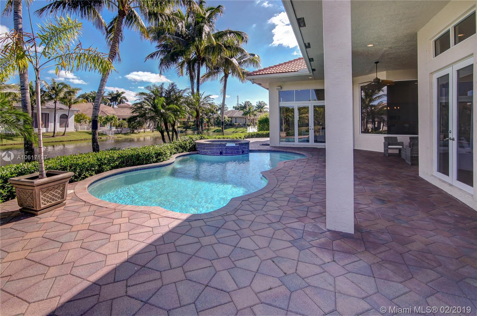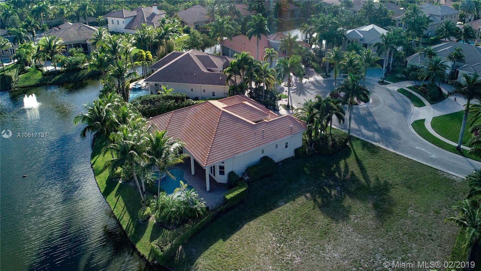 A brilliant blend of effortless sophistication in one of the most private of settings*This waterfront gem,nestled on a secluded cul-de-sac street,offers 4bdrms/3.5bths/ofc/5th bdrm & 3cg*Desirable triple split bedrm plan,family rm w/built-in wine cooler,solid wd drs,24” porcelain tile flrs & hardwood flring,designer light fixture & is wired w/a whole house,multi-room audio syst*All-marble master bth,designed w/jacuzzi tub & dble shower*Newly renovated island kitchen & breakfast nook is equipped w/new Wolf 5-burner cktp,48” Monogram refrigerator & dishwasher & ss dble ovens*Newly refinished heated pool/spa overlooking the serene lake w/ ample room for a playground*Sensational find,offers recently refinished hardwd flring,new washer/dryer. Welcome home, enjoy the country club lifestyle.