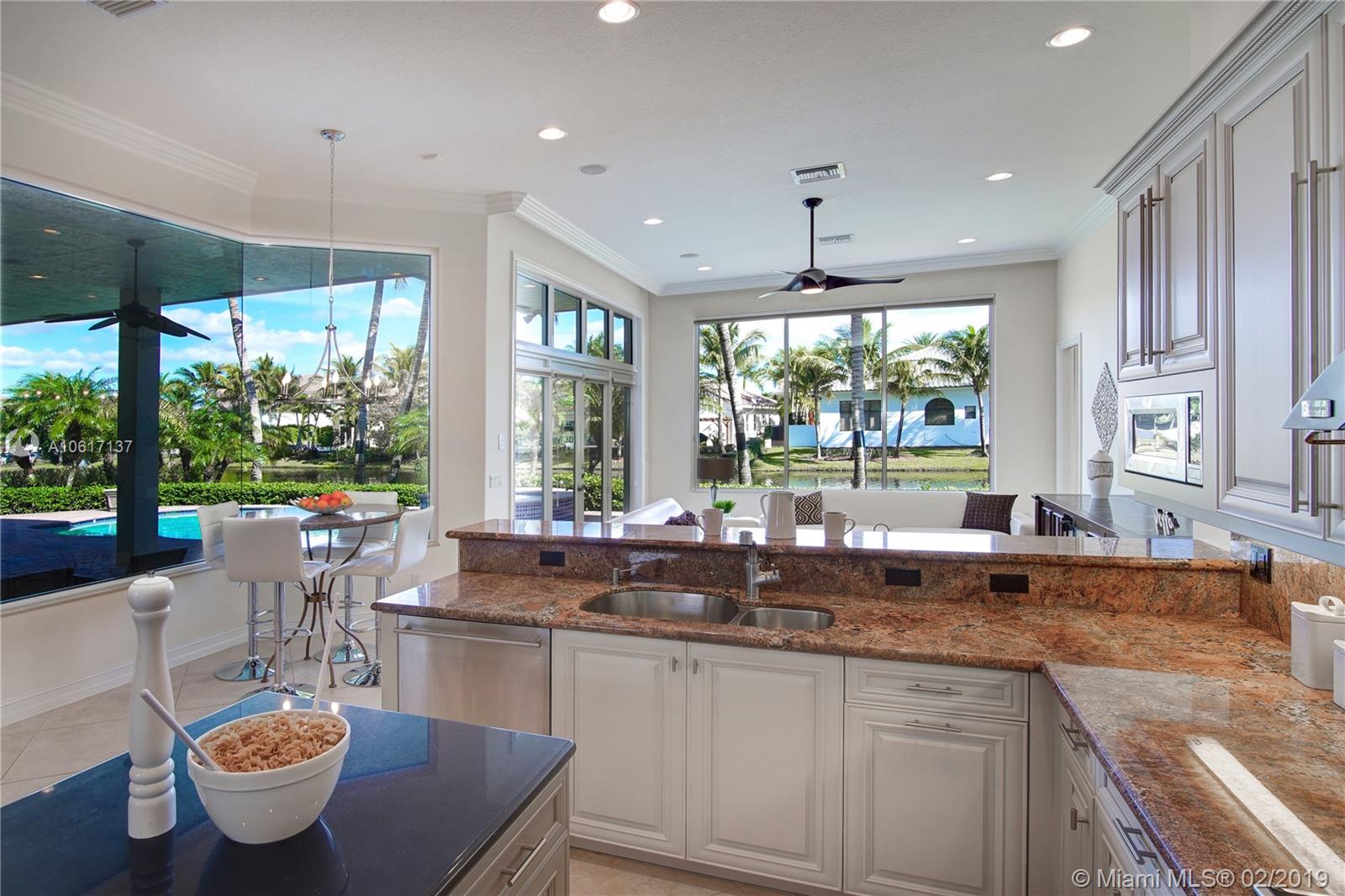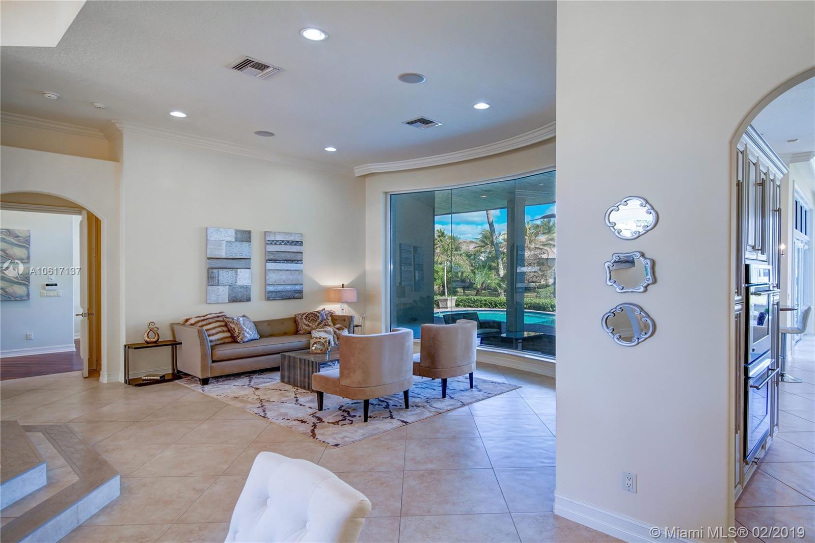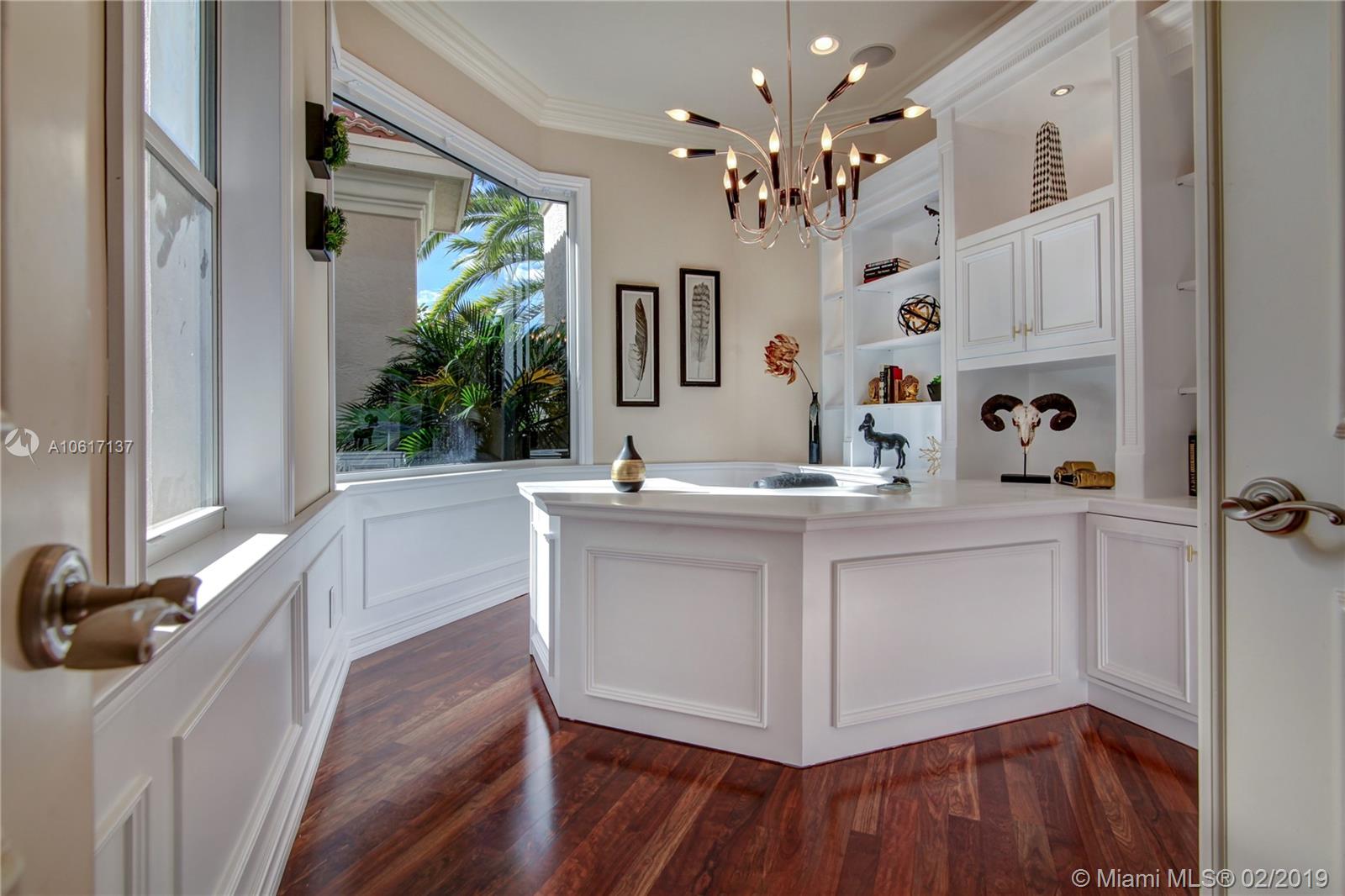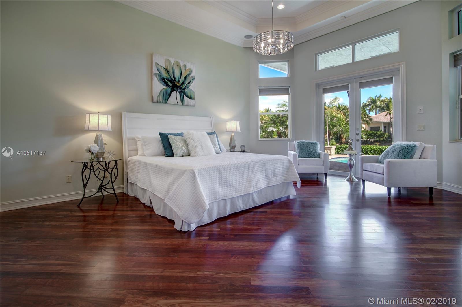 A brilliant blend of effortless sophistication in one of the most private of settings*This waterfront gem,nestled on a secluded cul-de-sac street,offers 4bdrms/3.5bths/ofc/5th bdrm & 3cg*Desirable triple split bedrm plan,family rm w/built-in wine cooler,solid wd drs,24” porcelain tile flrs & hardwood flring,designer light fixture & is wired w/a whole house,multi-room audio syst*All-marble master bth,designed w/jacuzzi tub & dble shower*Newly renovated island kitchen & breakfast nook is equipped w/new Wolf 5-burner cktp,48” Monogram refrigerator & dishwasher & ss dble ovens*Newly refinished heated pool/spa overlooking the serene lake w/ ample room for a playground*Sensational find,offers recently refinished hardwd flring,new washer/dryer. Welcome home, enjoy the country club lifestyle.