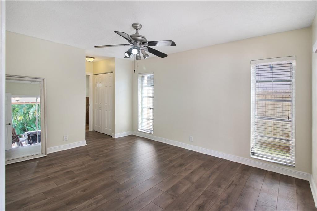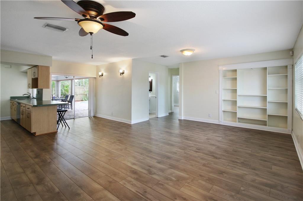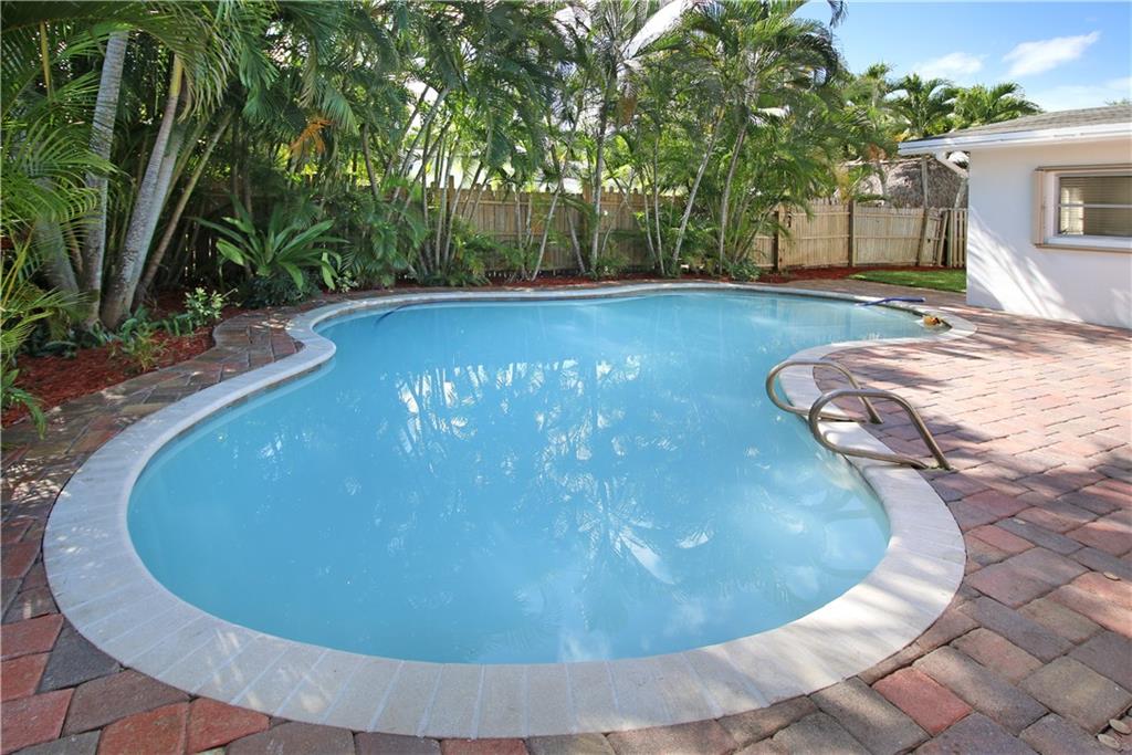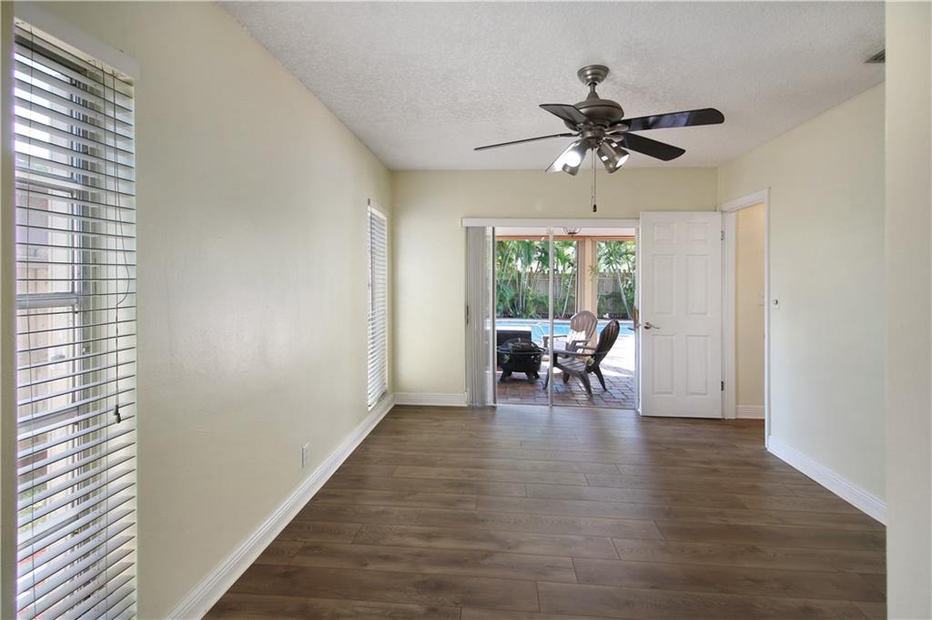 3 bedroom 2 bath with pool and 2 car garage! The previous owner has opened up the 4th bedroom to make a larger living area which makes this a great home for entertaining but can easily be converted back if desired. The fenced in back yard feels like an oasis with the freeform pool surrounded by beautiful landscaping and the pool gets sun all day with its southern exposure! Brand new flooring throughout, stainless steel appliances, updated bathrooms and hurricane shutters on every opening makes this home move in ready. The pool was also just resurfaced and comes with a 10 year warranty. A whole home warranty is also available at no cost to the buyer that covers everything from the roof to the appliances.
