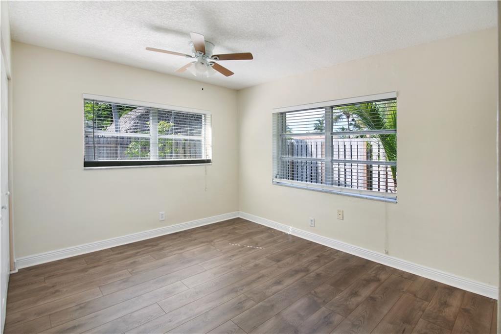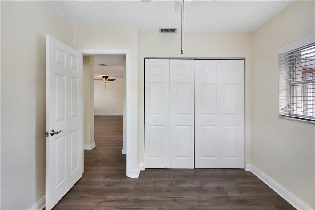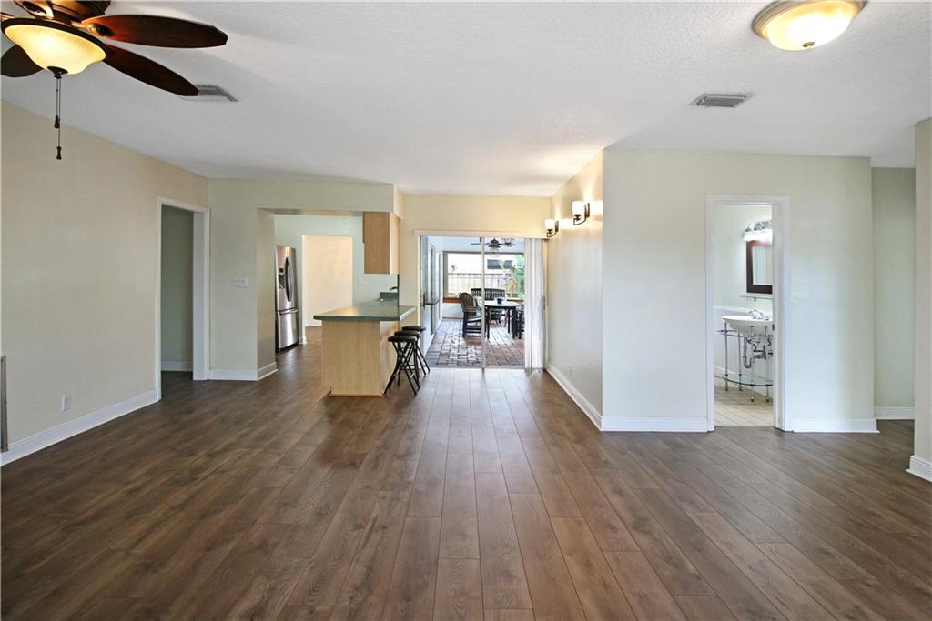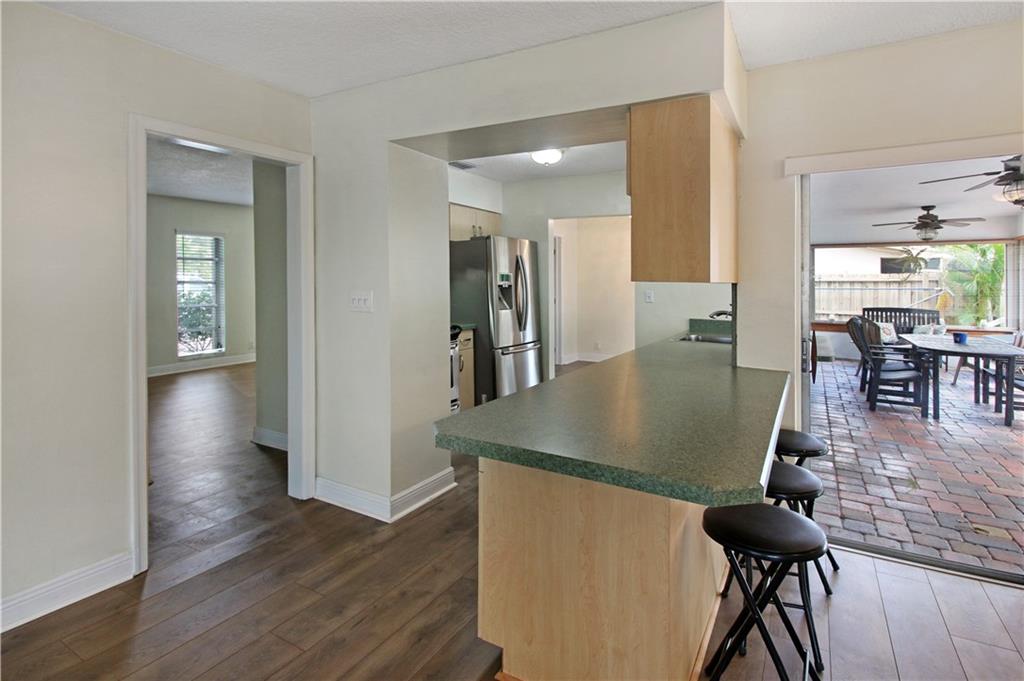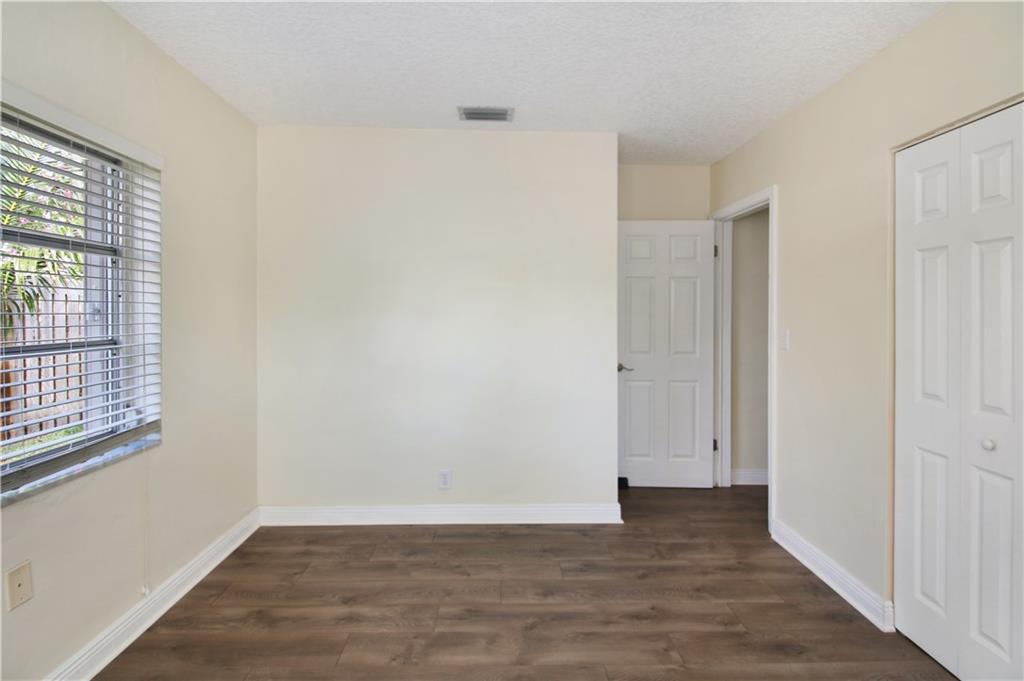 3 bedroom 2 bath with pool and 2 car garage! The previous owner has opened up the 4th bedroom to make a larger living area which makes this a great home for entertaining but can easily be converted back if desired. The fenced in back yard feels like an oasis with the freeform pool surrounded by beautiful landscaping and the pool gets sun all day with its southern exposure! Brand new flooring throughout, stainless steel appliances, updated bathrooms and hurricane shutters on every opening makes this home move in ready. The pool was also just resurfaced and comes with a 10 year warranty. A whole home warranty is also available at no cost to the buyer that covers everything from the roof to the appliances.