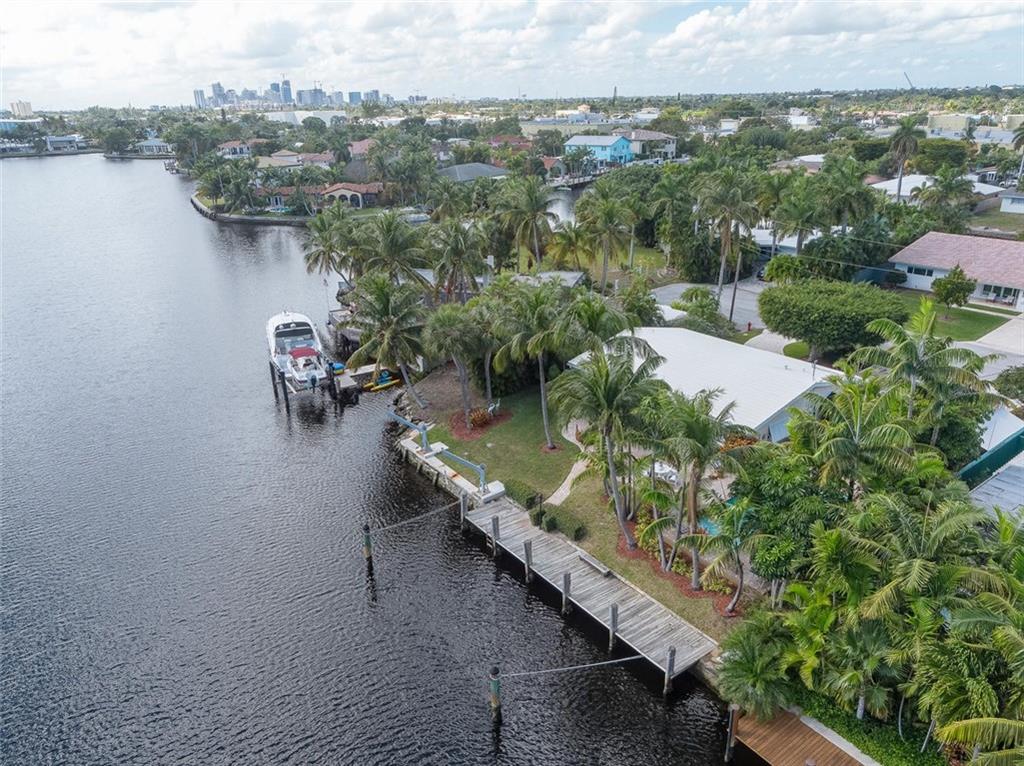 Come live the South Florida Lifestyle in this waterfront oasis. 90' of waterfront with amazing long Middle River views. Perfect for boating, paddle boarding & skiing. Peaceful resort style backyard. Fantastic neighborhood-walking distance to Trader Joe's, Fresh Market & restaurants. Centrally located, minutes to downtown, beach, major highways & airport. One fixed bridge (10'/13'). Ready for your personal touches.