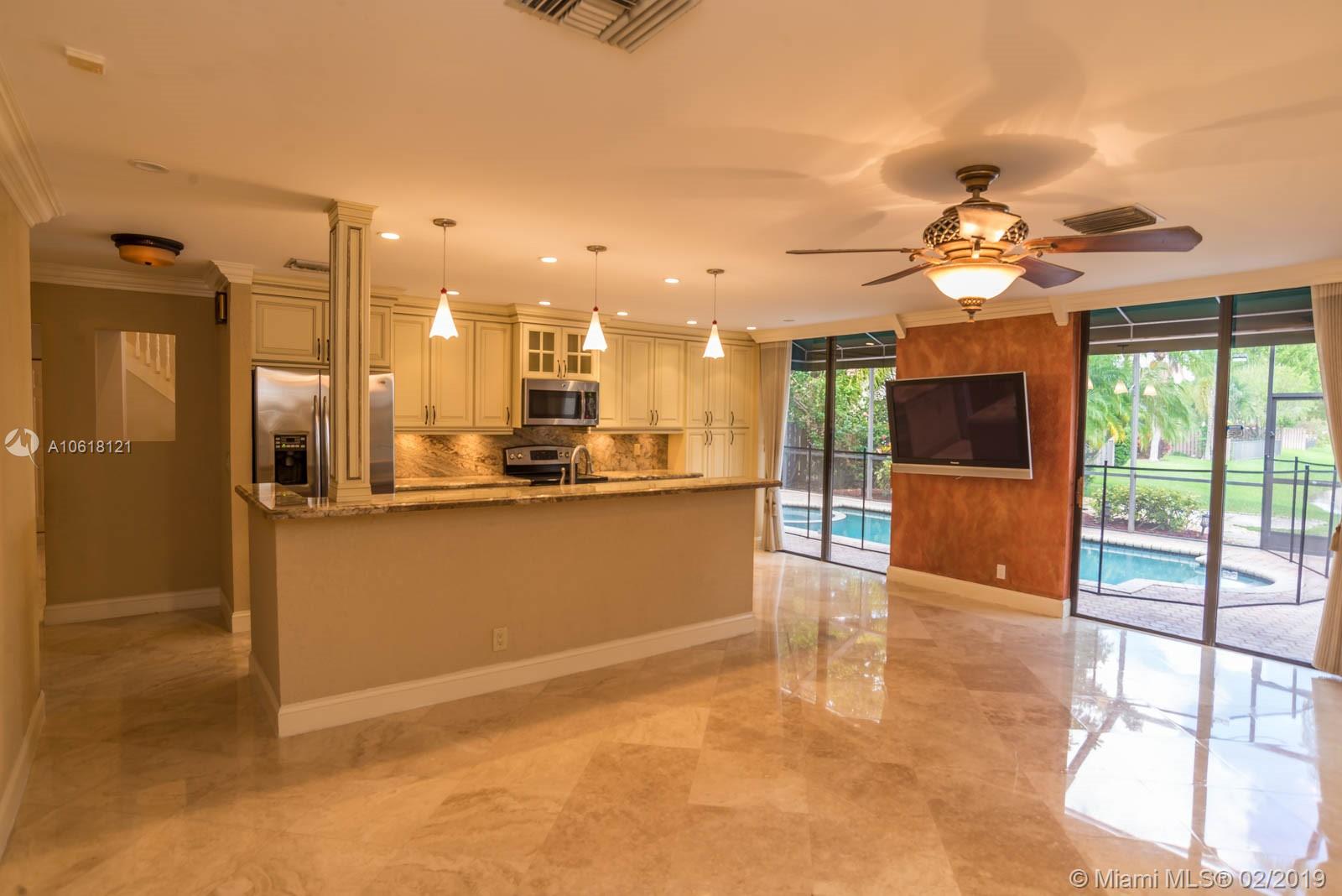 Don't miss out on the largest home and lot in the desirable Fountain Springs Community. Renovated in 2016, marble and wood laminate floors, vaulted ceilings, crown molding, window treatments, granite countertops, stainless steel appliances, ample storage and so much more. Enormous Master Bedroom with a balcony overlooking the pool, backyard and lake. Master Bathroom has shower, tub and dual sinks. Three additional bedrooms and 2 bathrooms make up this spacious home. Enjoy the outside seating/dining patio by the lake and screened pool. Utilize nearby parks and all that Plantation has to offer. Conveniently located near shopping, restaurants, I-595, I-75, airport and the beach is 20 minutes away. Community has a clubhouse, adult and children's pool. Move in and enjoy this home! Easy to show.