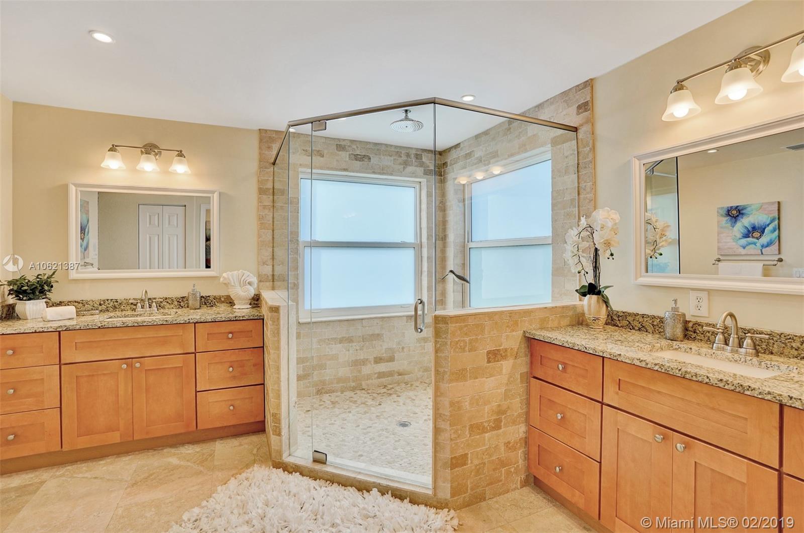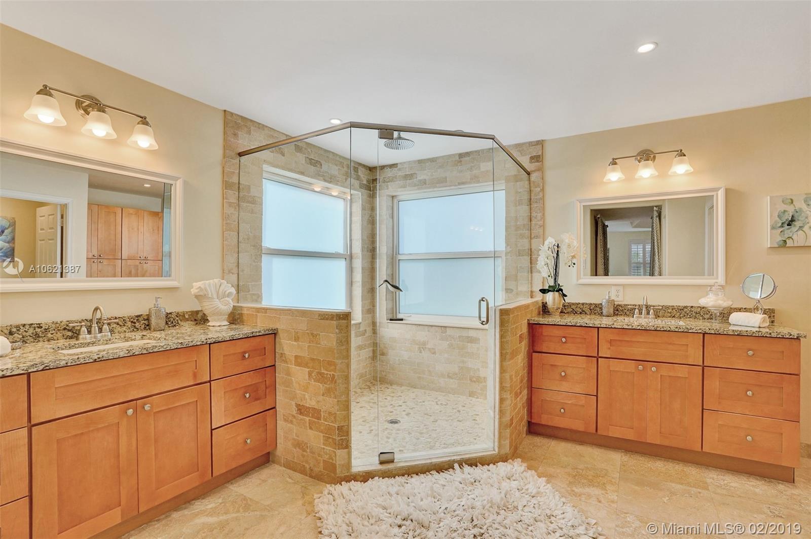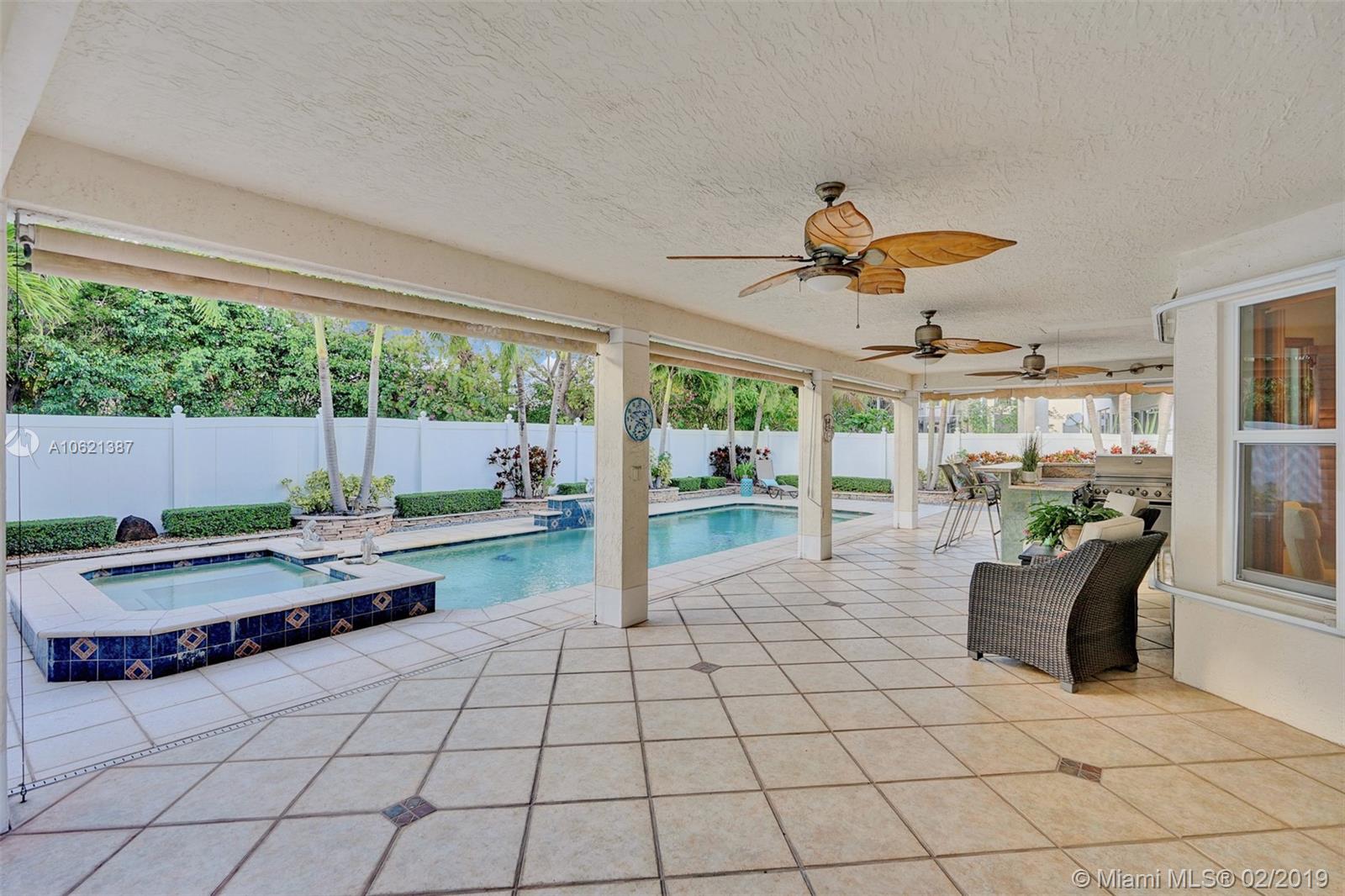 Enjoy South Florida Living!!! Over $100,000 in upgrades in backyard alone, incl outdoor kitchen, salt chlorinated, heated pool and spa, 15x30 covered patio w/awnings and shades. $22,000 spent in landscape design. Felicia/6 model with 5 bedrooms, 3 full baths, family room, sitting room off master bedroom, 3 car garage and stunning 2 story ceiling in living room and dining room. Light-filled home. Kitchen with 42" cabinets, granite, 4yr old top-of-the-line Kitchen Aid appliances. Remodeled Master with glamorous over-sized shower and remodeled modern downstairs bath. IMPACT GLASS for all, but four windows. Accordion & panel shutters. A/Cs 6 yrs old. 5yr old 51 gallon water heater. Water softener, water filtration system, alarm with high-definition cameras, intercom, & plantation shutters.
