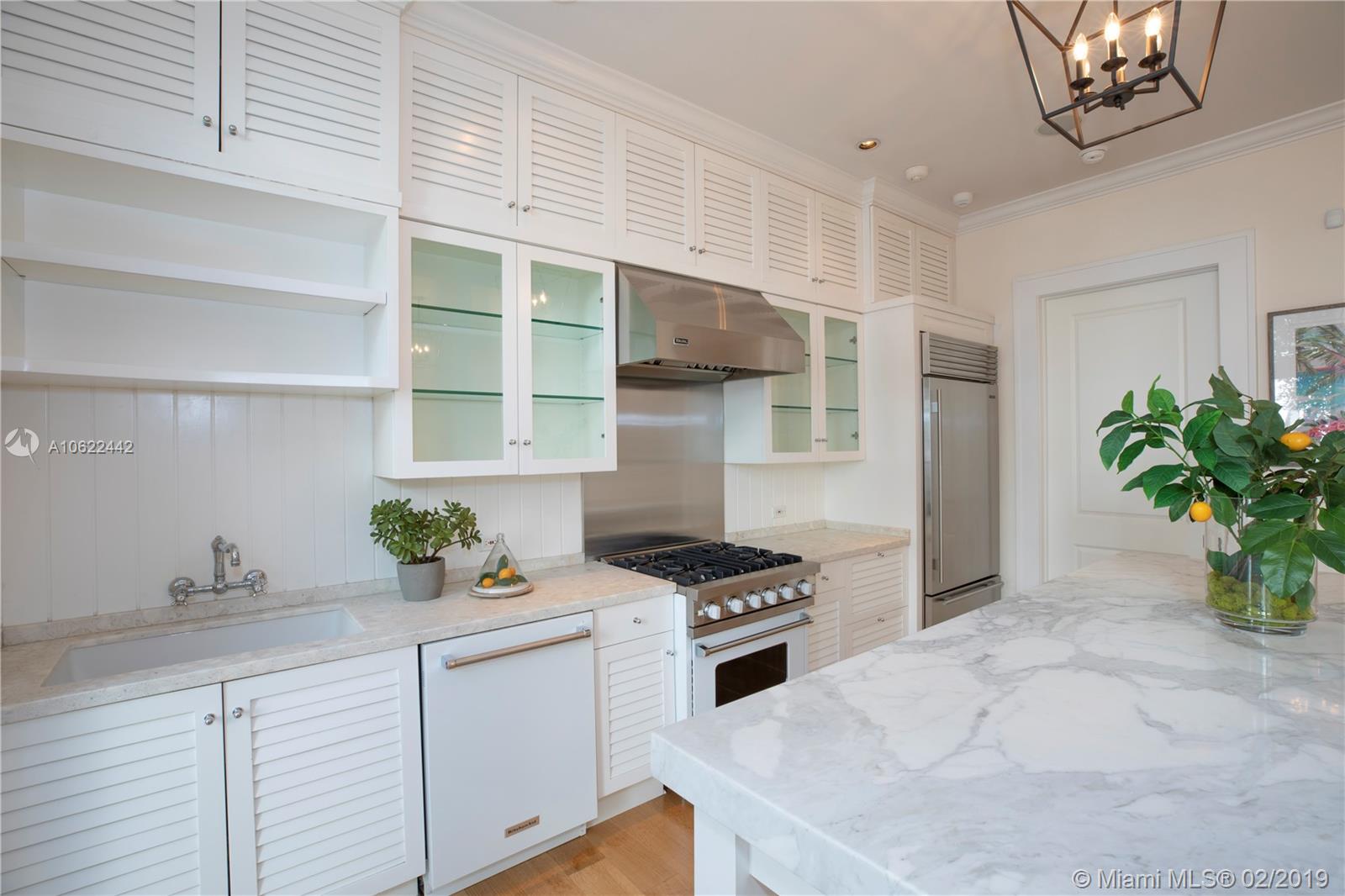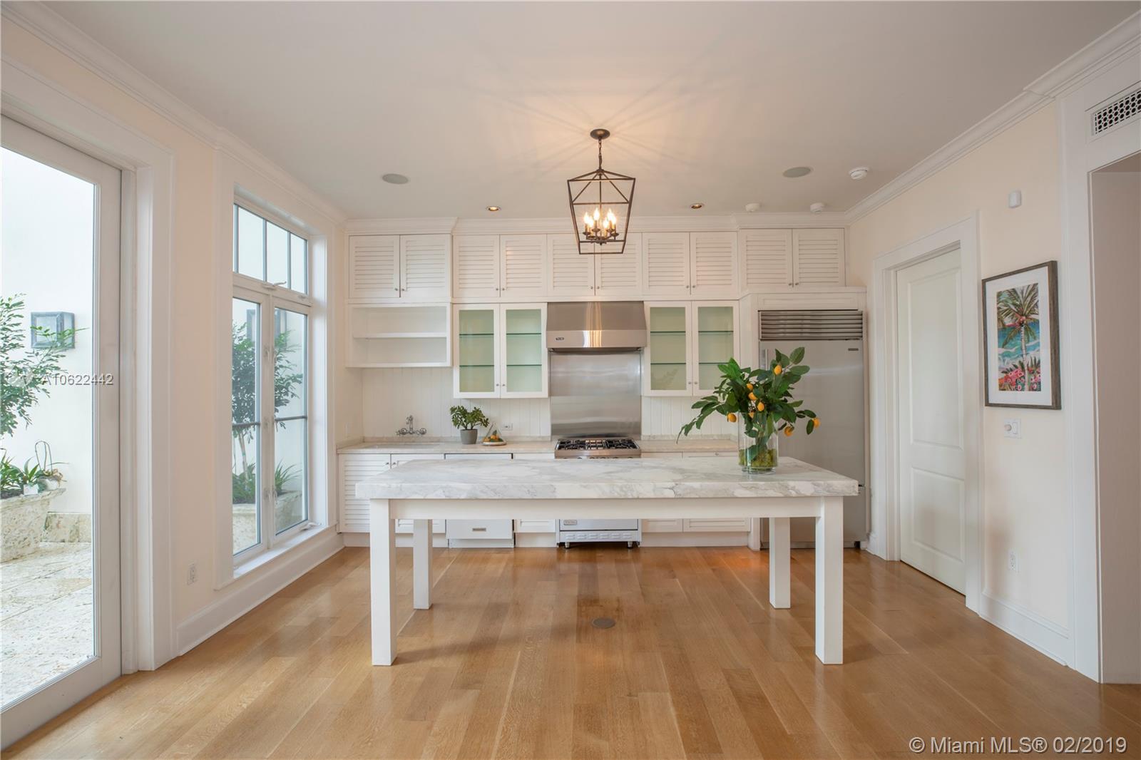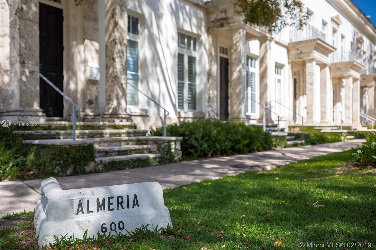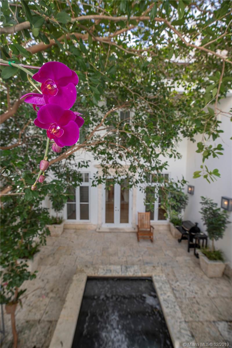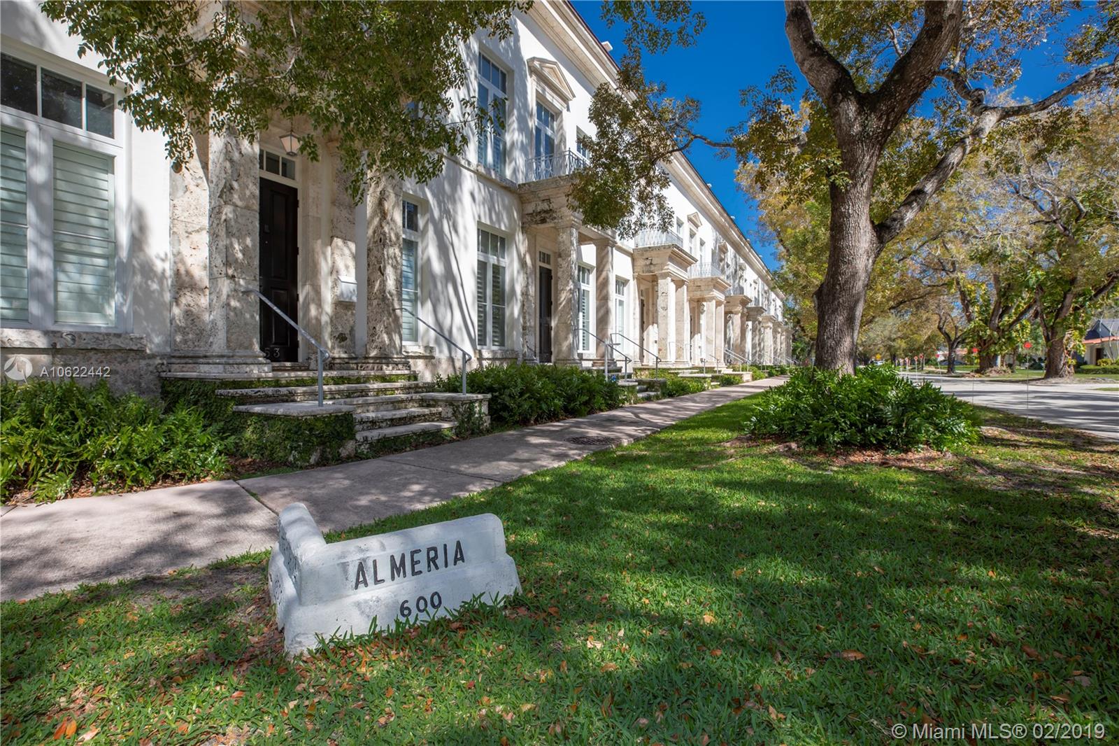 Sophisticated elegance abounds in this luxurious townhome in the award-winning Almeria Row. Volume ceilings, high end finishes, gleaming oak wood floors, and impact windows and doors are just some of the highlights of the timeless design. The open concept kitchen features Calcutta marble countertops and island, white louvered cabinets, top-of-the-line appliances and an expansive butler’s pantry. 4 bedrooms including 2 master suites in main house and 2 en-suite guestrooms above the 2-car garage. Separating the main house from the guest house is a private coral-stone courtyard centered by a serene pool/fountain. Enjoy refined living in a relevant location nestled among the trees on the beautiful Almeria Avenue and within walking distance to all that Coral Gables has to offer. SqFt per Tax.