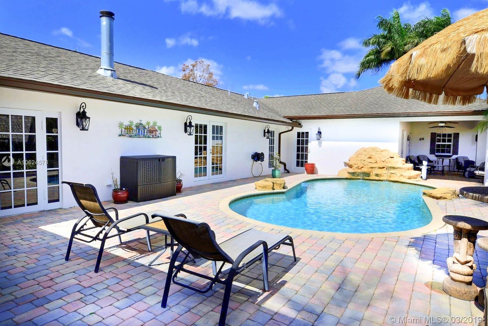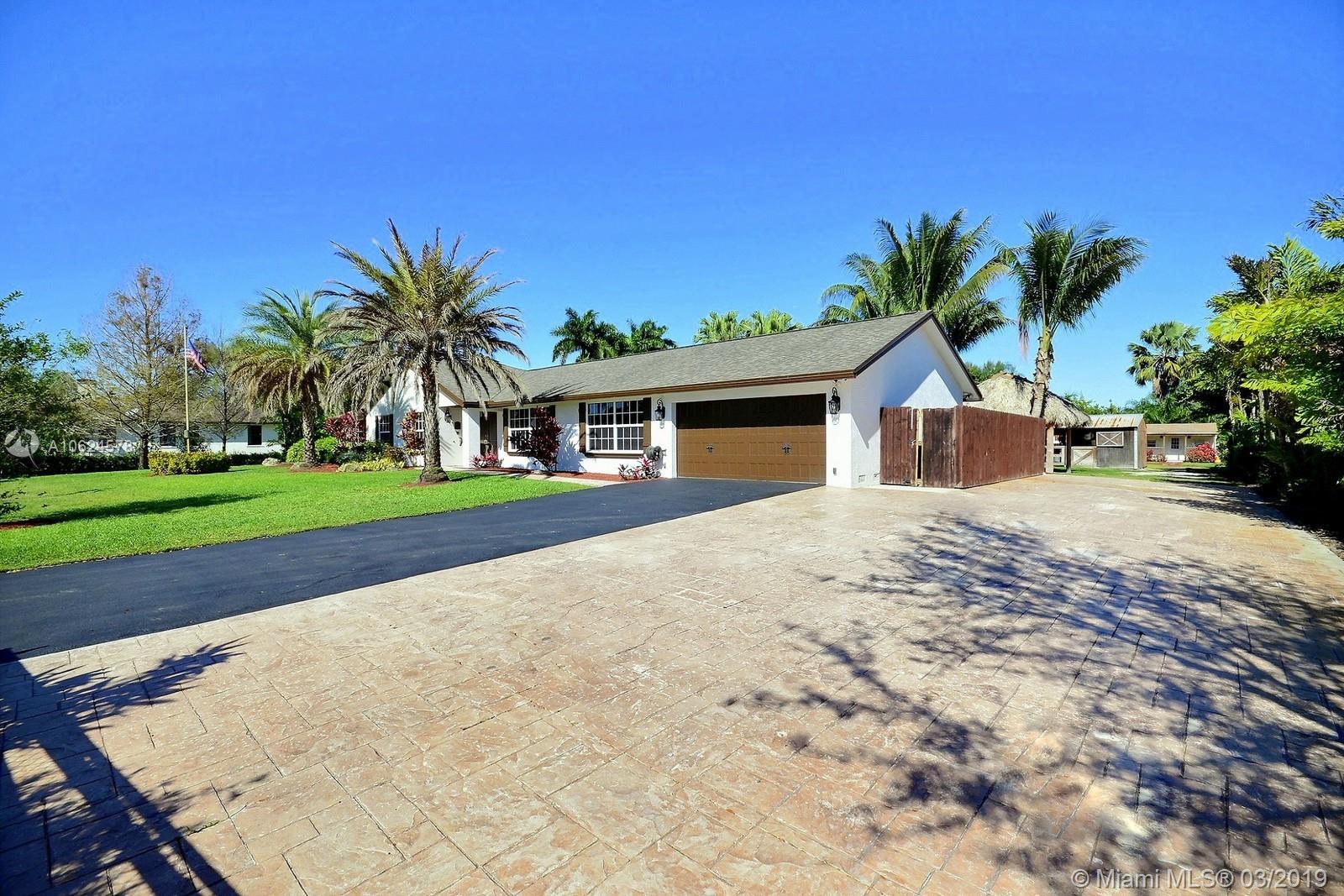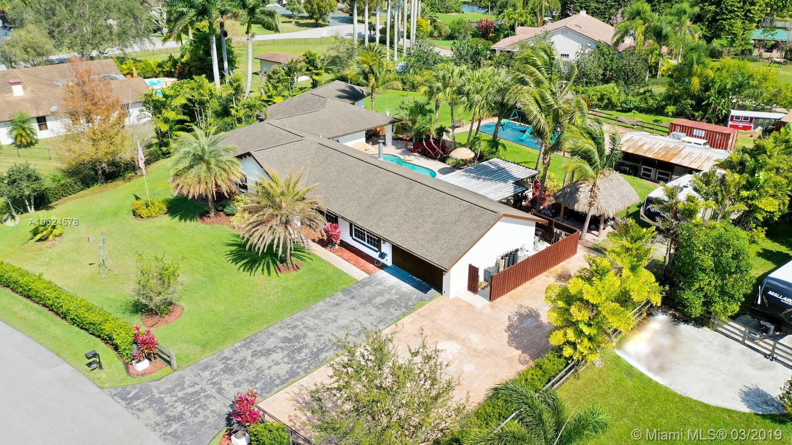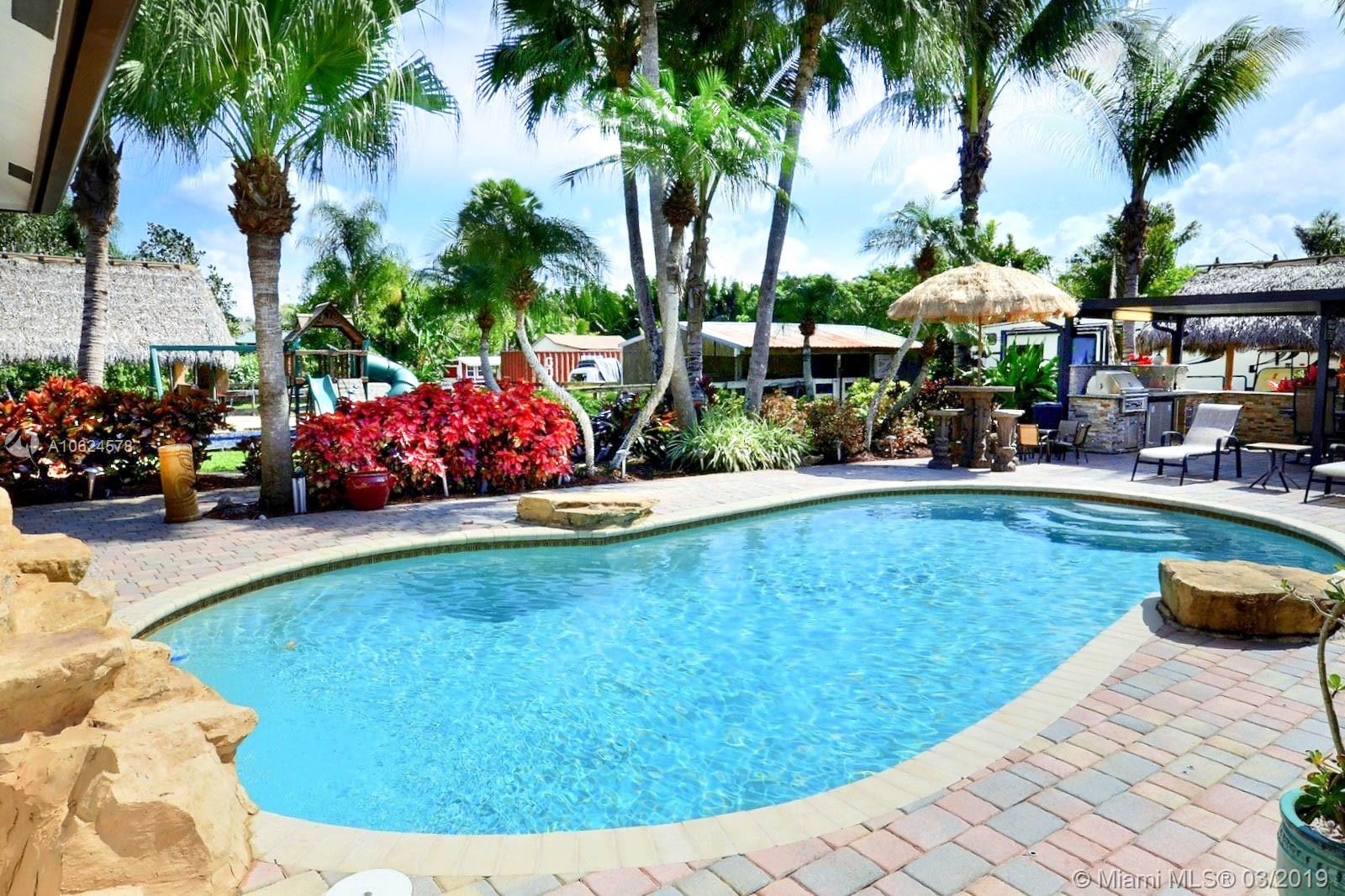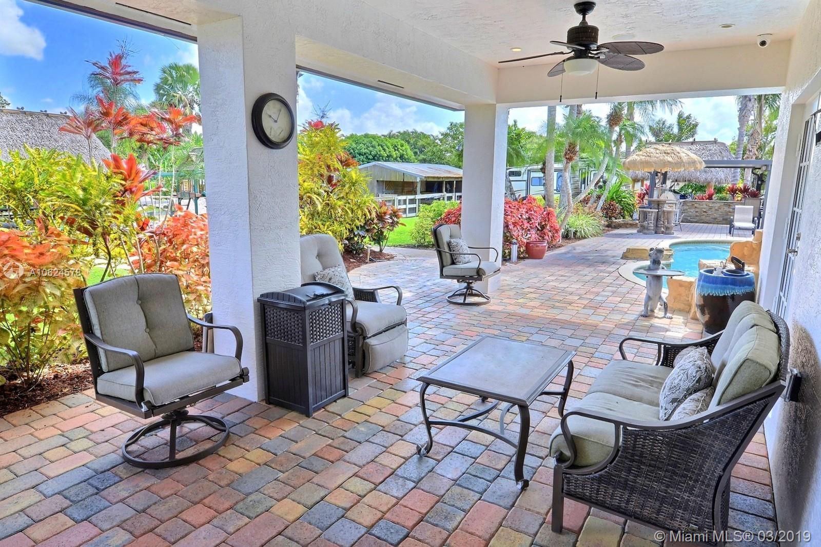 WELCOME TO YOUR OWN SW RANCHES RESORT! PERFECT HOME TO ENTERTAIN, THERE IS SOMETHING FUN FOR ALL AGES. GORGEOUS HOME WAS TASTEFULLY REMODELED FEATURING LARGE KITCHEN W ISLAND, STAINLESS APPLIANCES, VIKING FRIDGE, BOSCH COOKTOP, OVEN & WARMING DRAWER, MIELE COFFEE MAKER, WOOD CABINETS IN KITCHEN & BEAUTIFUL WET BAR; WOOD BURNING FIREPLACE, MARBLE FLOORS. INCREDIBLE MASTER SUITE W 2 CLOSETS, SPA-LIKE BATH W 2 VANITIES, JETTED TUB & WALKIN SHOWER. SECURITY SYS W 12 CAMERAS; SURROUND SOUND; SOLID DOORS INSIDE, IMPACT WINDOWS & GARAGE DOORS. ENJOY OUTDOORS W FULLY EQUIPPED KITCHEN W ICEMAKER, FREEZER, STAINLESS BBQ & DRAWERS, REFRESHING POOL, PLAYGROUND, 2 CHICKEE HUTS W PAVER FLOORS, FRUIT TREES & CHICKEN COOP. 10+CARS CAN PARK BETWEEN GARAGE & DRIVEWAYS + ROOM FOR RV PARKING ON SIDE OF HOME.