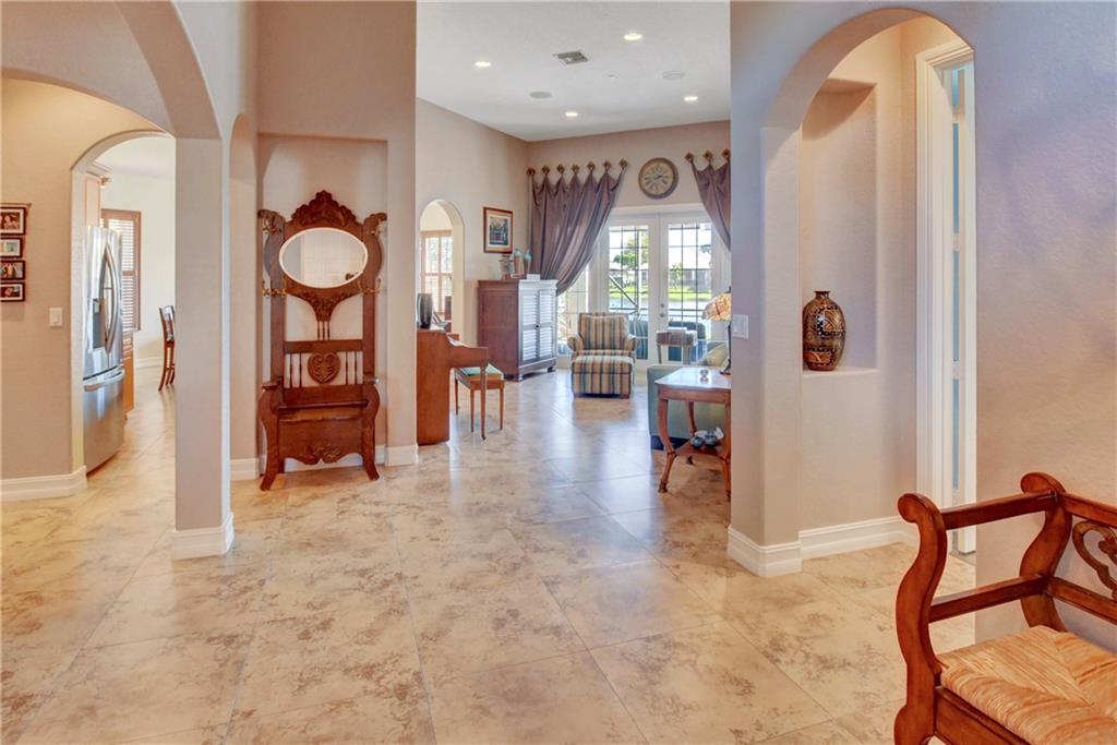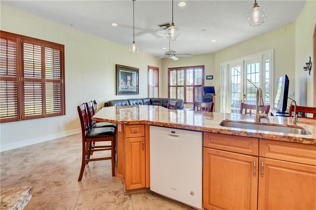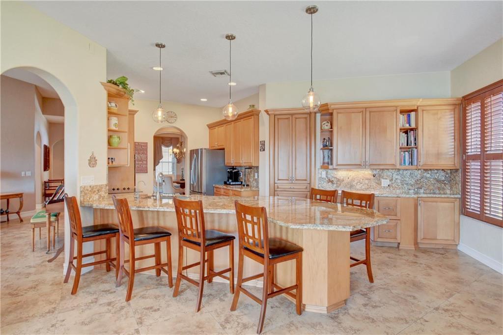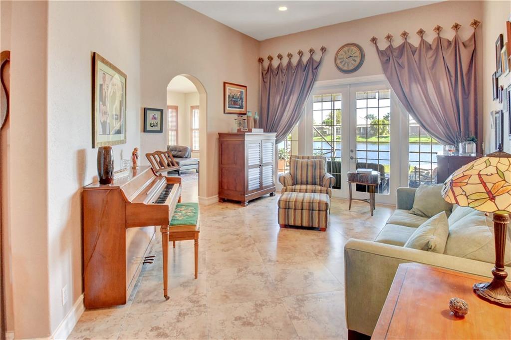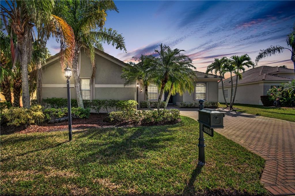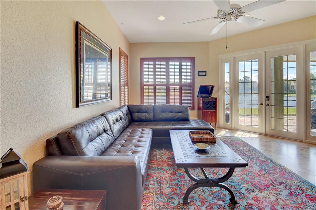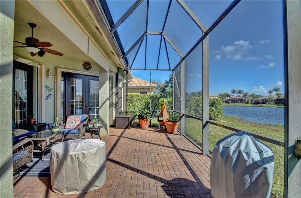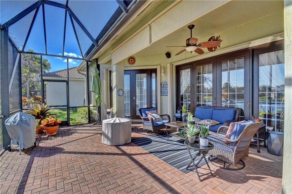 This 5 bedroom, 3 bath one-story home sits on a waterfront lot with amazing views!!! Enjoy the view of the lake from the extended screened-in patio with southern exposure. Kitchen has been upgraded with expanded granite countertops and extra cabinetry. Other features include but not limited to Plantation Shutters, French doors, custom closets, huge master suite, and Accordion shutters. Gated community with 24-hour manned guard gate, clubhouse, heated community pool, tennis, basket, exercise room plus much more.