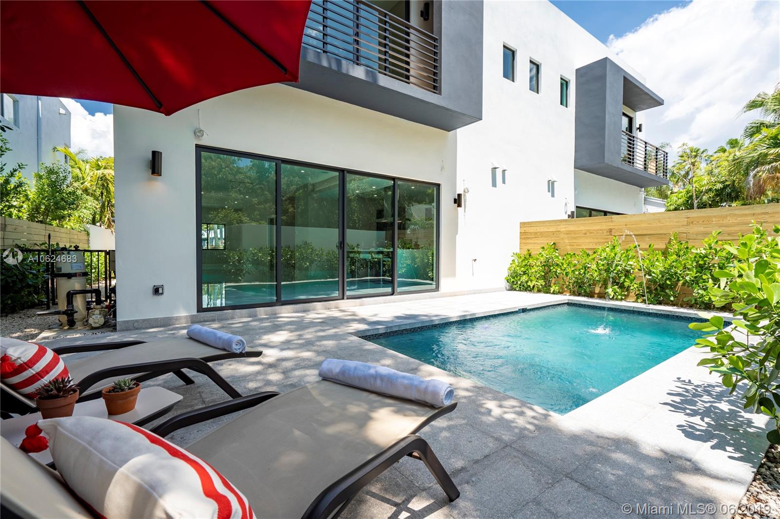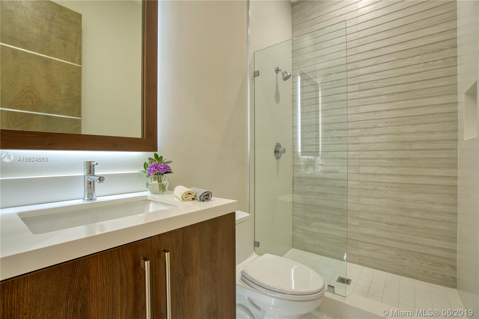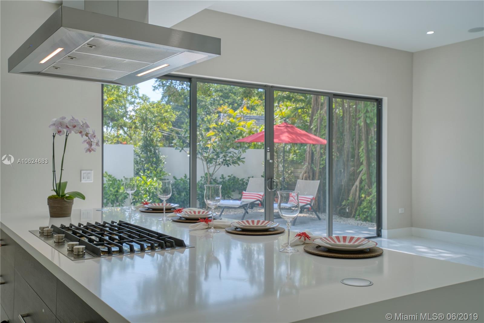 Stunning, brand new in Coconut Grove. This contemporary home has everything to please the most discerning buyer. It features 4 bedrooms, 3.5 bathrooms, formal dining and living room. Open floor plan offers 10ft ceilings, custom kitchen cabinets with gas stove top, Jenn-Air appliances, and quartz backsplash and waterfall countertops. Master Bath has luxury amenities including a soaking tub, rain shower, seamless shower floor & double vanity. Design details include solid wood floors, and stunning 24 by 24 porcelain tile, surround sound system, stairs w/ glass & steel railings, LED Lighting,& Ipe wood front facade. Social areas open up to a spacious backyard with pool and lush landscaping. Step outside & enjoy the breeze from the bay, café-lined streets, nearby parks, and upscale restaurants.