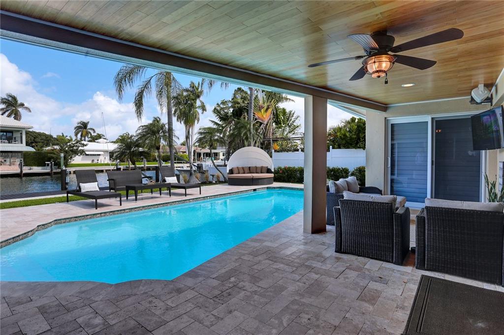 Honey Stop The Car! Completely Renovated 3/2 Pool Ocean Access! 80ft. of Water Frontage 70ft. of Dock! NO Fixed Bridges! New Plumbing, New Electrical Throughout All LED Lighting! New AC, New AC Ducts, New Impact Windows and Doors! New Electronic Boat Lift W/Remote Control that holds 13000 lbs! New Appliances W/Smart Hub Refrigerator! New Surround Sound System inside and out! New Plantation Shutters on All Windows! New Flooring, New Travertine Marble Driveway and Pool Deck and Siding front and back! Heated Pool! New Security System with cameras! New Hot Tub W/Warranty, New Outdoor grill and refrigerator bar on the patio! Corner Lot! Minutes away to beach, shopping, gym, restaurants! This home has it all don't let this one pass you by!