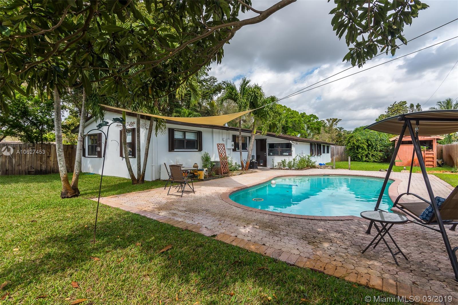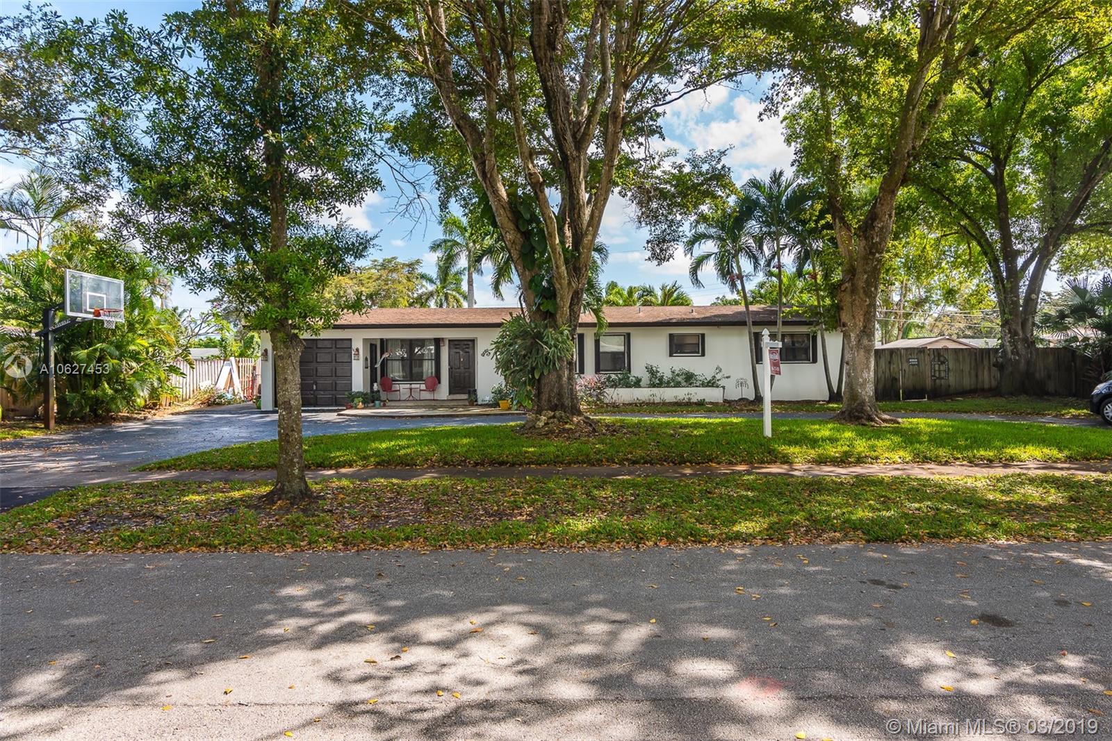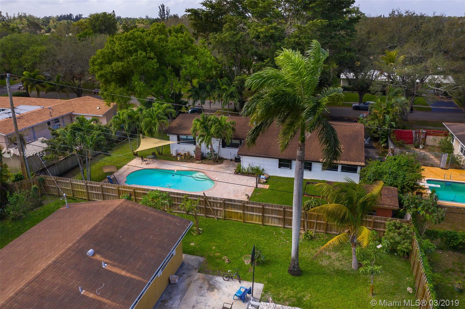 Awesome 3 bedroom 2 bath ranch home in Plantation with giant circular driveway. This has to be the prettiest street in Plantation. Massive yard with huge pool. Extensively remodeled kitchen with upgraded appliances. Second family room/playroom adjacent to the screened back patio which overlooks the pool. Full laundry room too. This home also features a one car attached garage and an enormous shed!