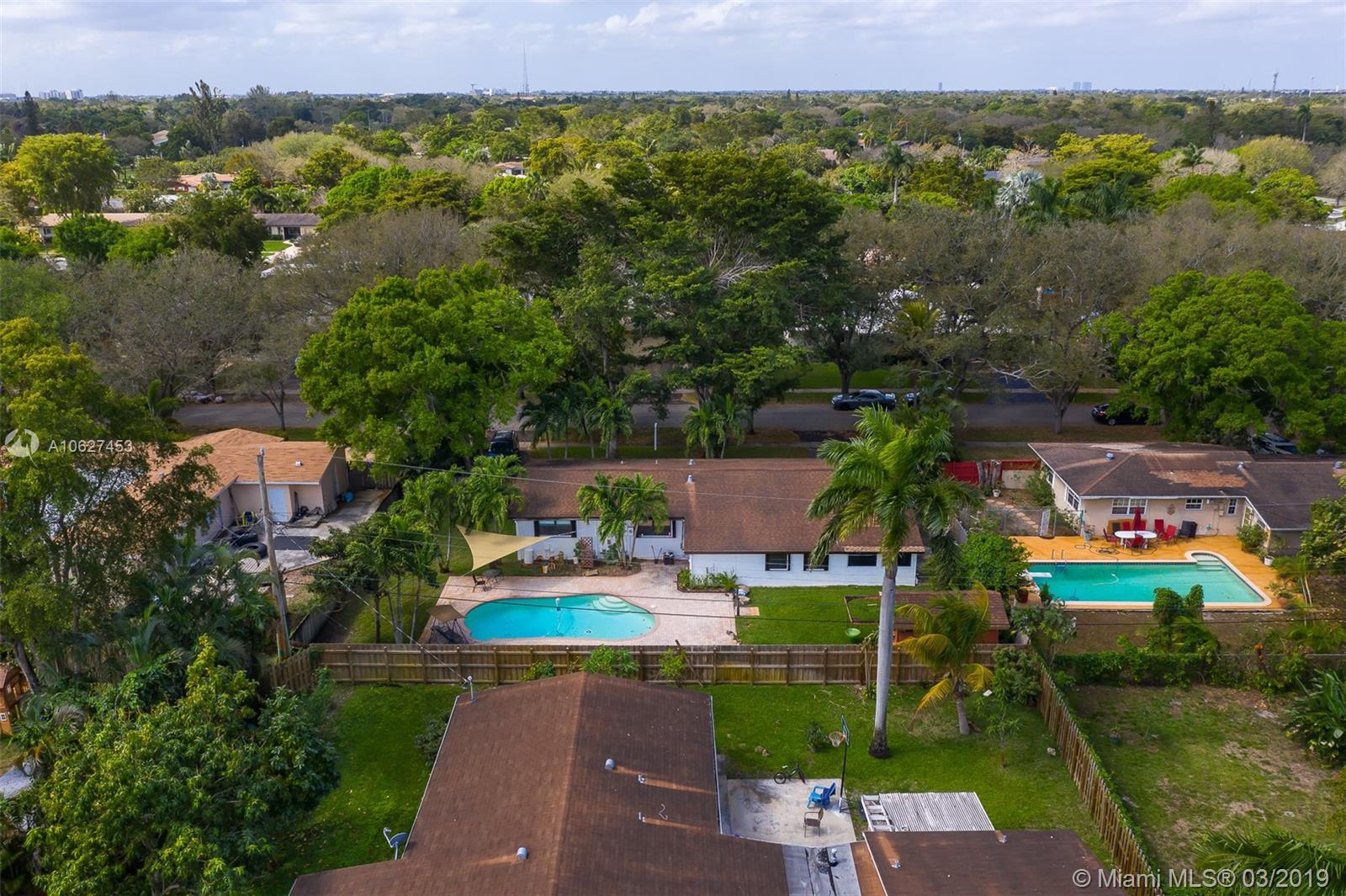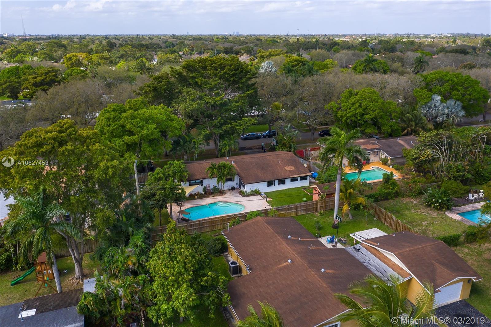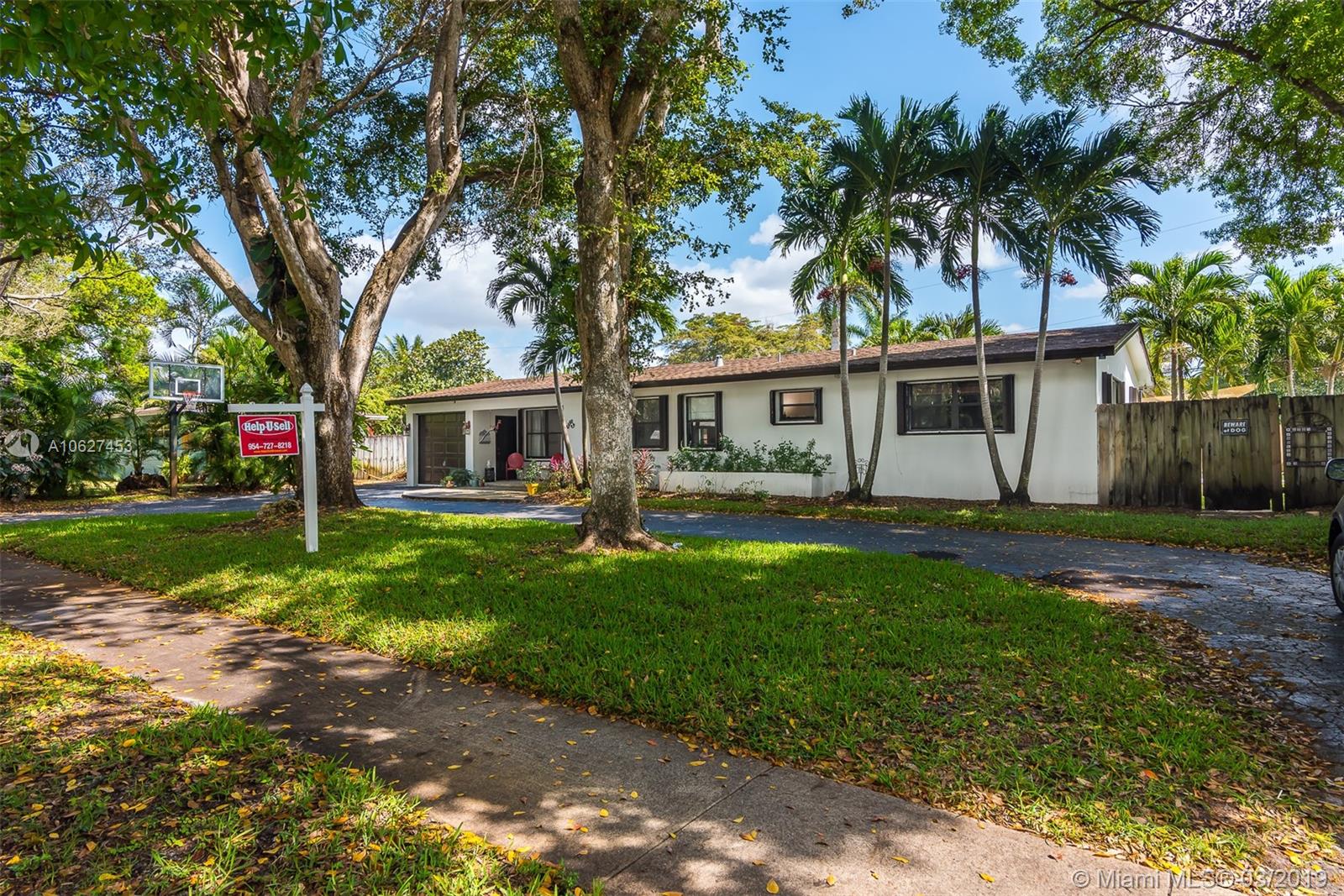 Awesome 3 bedroom 2 bath ranch home in Plantation with giant circular driveway. This has to be the prettiest street in Plantation. Massive yard with huge pool. Extensively remodeled kitchen with upgraded appliances. Second family room/playroom adjacent to the screened back patio which overlooks the pool. Full laundry room too. This home also features a one car attached garage and an enormous shed!