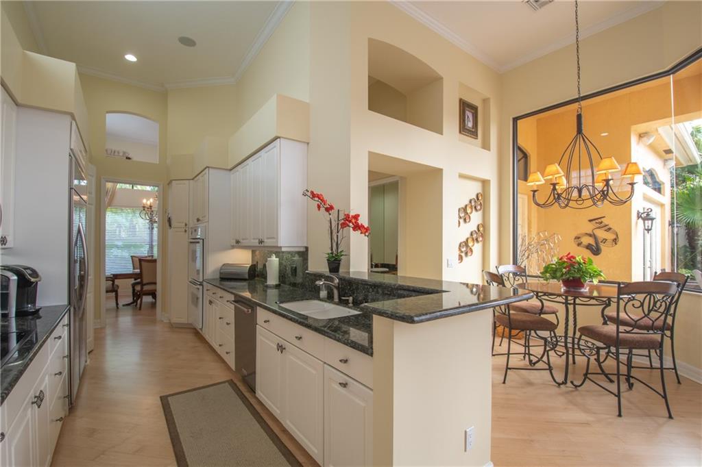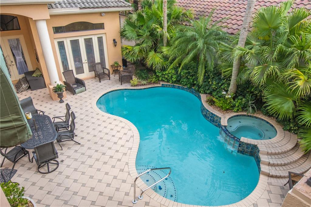 One of a kind, pristine, and immaculate single family estate home in prestigious Boca Pointe. This is a 5 bedroom courtyard house. Master bedroom downstairs, 3 bedrooms upstairs. Complete guest house w/5th bedroom by pool with bath and kitchen. There is also a library/den/office with wood built-ins conveniently located on first floor. First floor laundry room with cabinets. Solid wood floors throughout first floor. Kitchen is spacious and functional, upgraded cabinets, granite counter tops, 2 full ovens & oversized refrigerator. Ground floor master suite overlooks tropical pool. Large his and hers closets. The master bath is upgraded w/granite & washed tile. Functional wood wall unit in spacious family room which overlooks the pool area and so much more