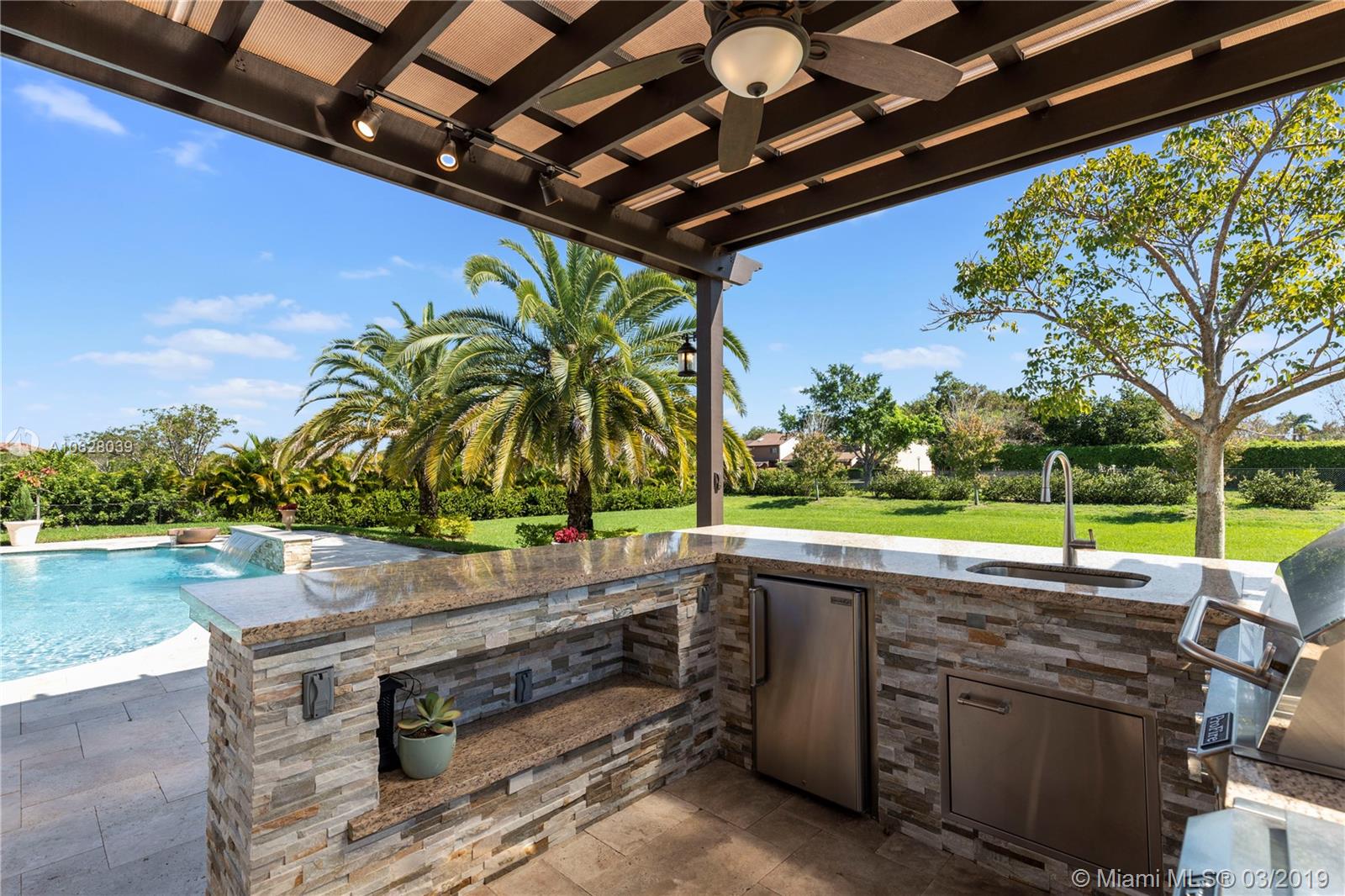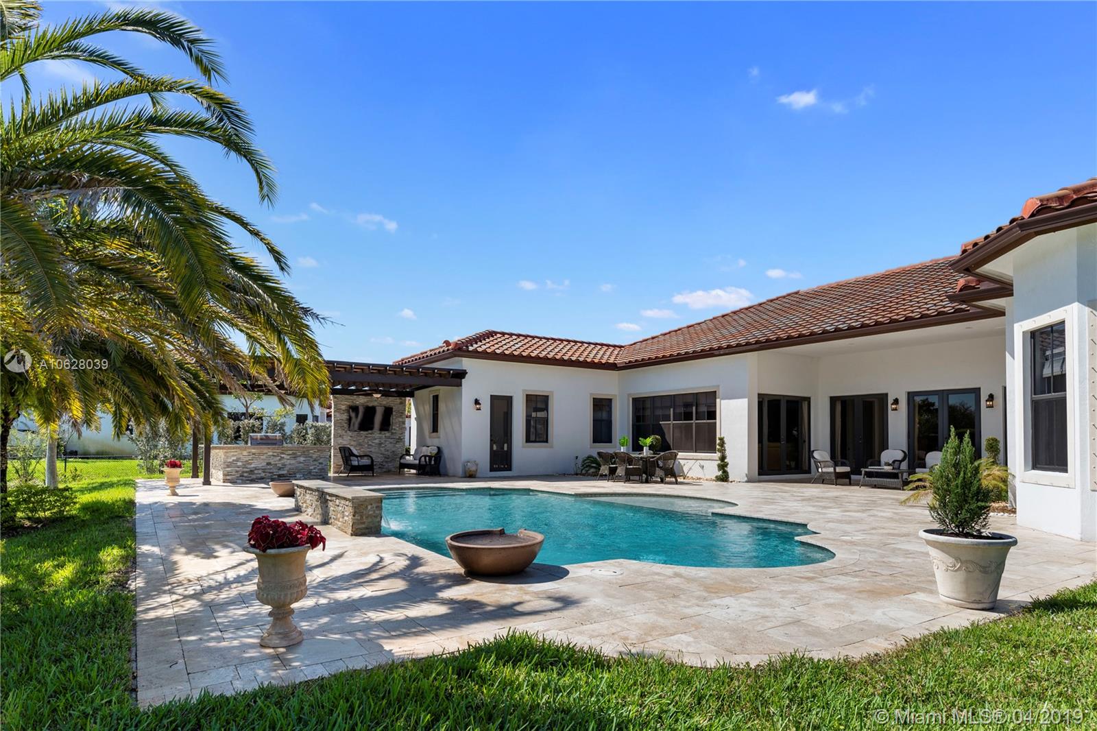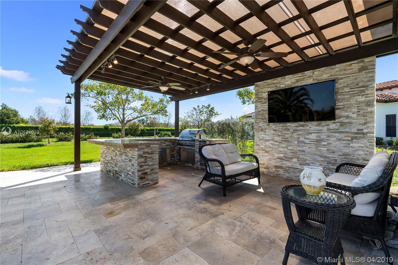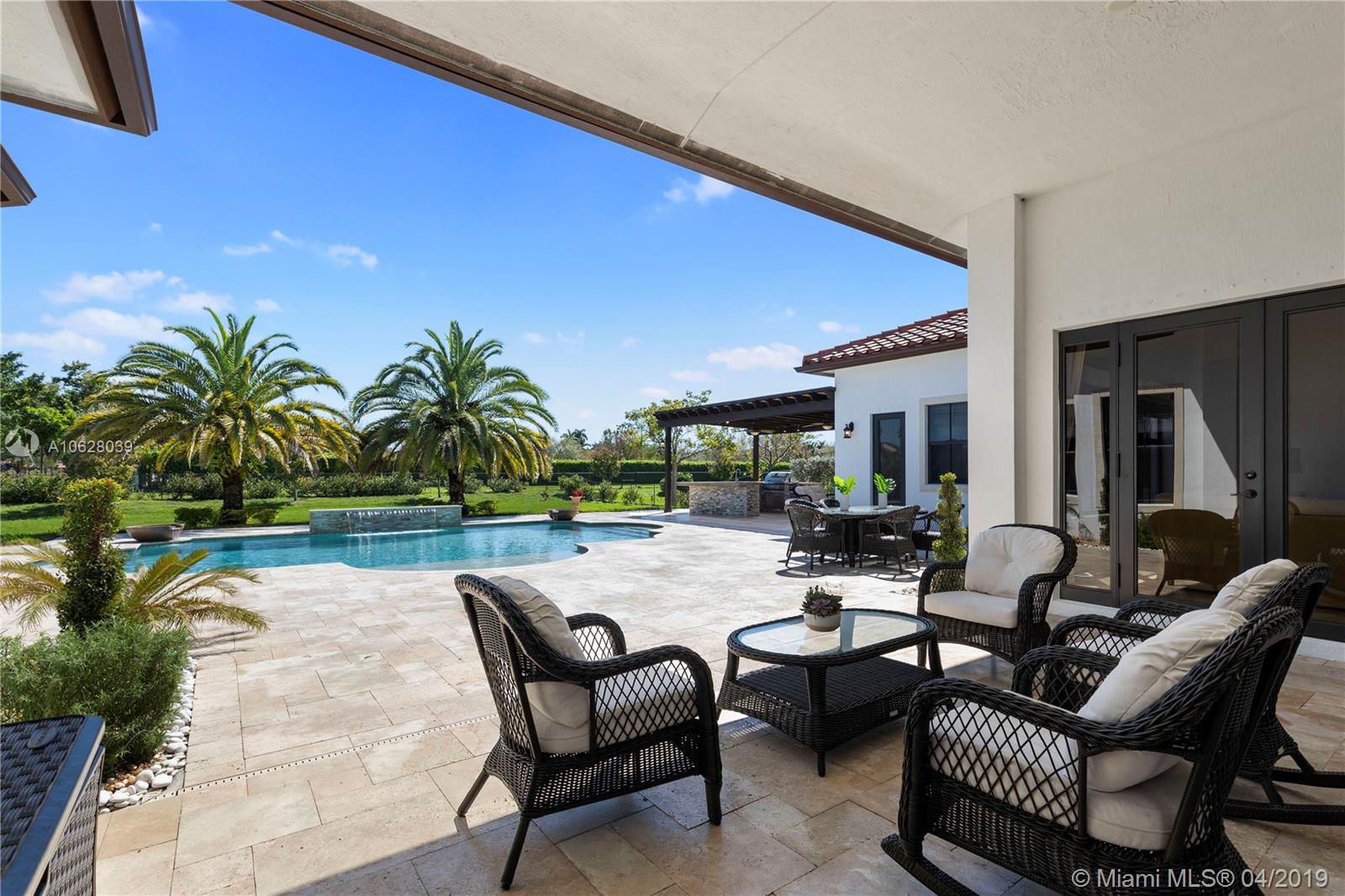 Newer Construction on Builders Acre in Davie Florida! The impeccable one-story home is situated on a 35,000 Sq. Ft. Lot in the luxurious boutique community of Parkside Estates. Features include 4 Bedrooms, 3.5 Baths, office, 12 Ft Ceilings, authentic Brazilian Cherrywood floors in the Bedrooms, open concept, cabana bath, custom window treatments and much more. The outdoor space will leave you breathless... highlighted by a saltwater heated pool, custom summer kitchen with oversized pergola and a large screen TV to complete the space.