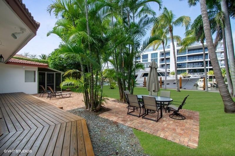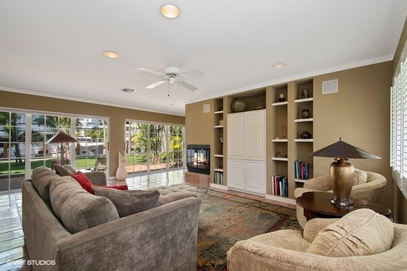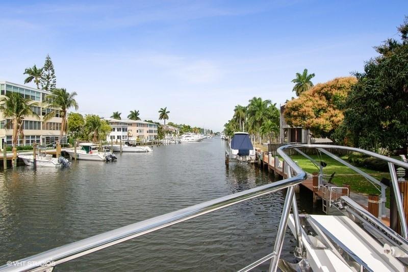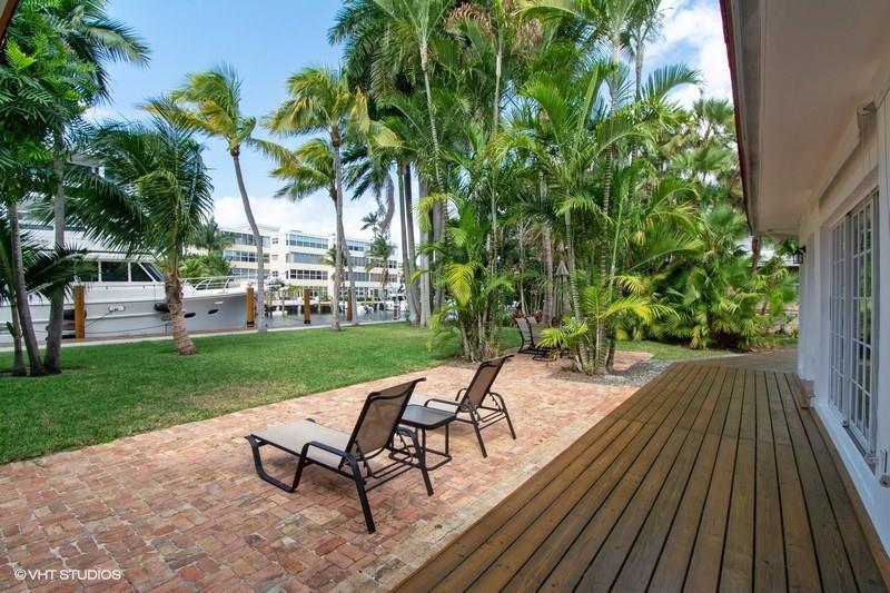 Perfectly charming & beautifully maintained deep water home waiting to be taken to the next level! Amazing opportunity to update, add on, or build your dream home. Situated on one of the few streets with underground utilities and offering 90 feet of water with direct access to the Intracoastal and no fixed bridges to the ocean. 2/2 with an office/den, cozy light filled interior with spacious living room, inviting corner fireplace, generous master bedroom that opens to a totally private wrap-around screened porch with outdoor tub and shower. A wall of sliding glass doors opening to tranquil tropical views of mature palms and waterway. A wonderful chance to live the true Florida lifestyle!