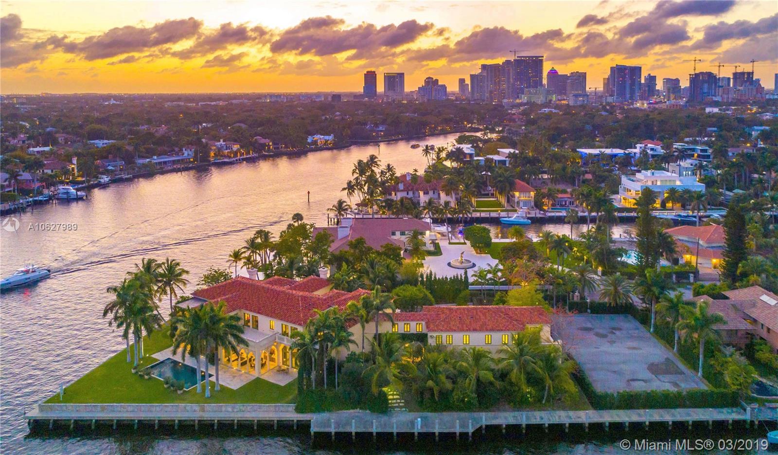 AUCTION NOW OPEN. CONCLUDING ON SITE April 12. SELLING WITHOUT RESERVE.Open Daily 1 to 4PM by Appt. Newly constructed Bella Fortuna has won CASF Craftmanship awards for:(i) Landscaping;(ii) Stonework-Cast,Carved;(iii) Metal Fabrication;(iv) Cabinetry;(v) Woodworking;(vi) Flooring-stone; (vii) Paint & Decorating; (viii) Plaster-ceilings; (vix) Stucco;+ (x) Overall outstanding craftsmanship. This one of a kind masterpiece of highest quality is on a rare+ raised acre;750 FT deep waterfront; double point peninsula; in luxe Las Olas Isles on Millionaire's Row w/wide water Intracoastal+New River Views.No wake zone. 350 FT dock.Direct Ocean Access.Steps to Ft. Lauderdale Beach +Las Olas Blvd.Starchitect Jeff Smith.Designer Bunny Williams.Marker Construction.