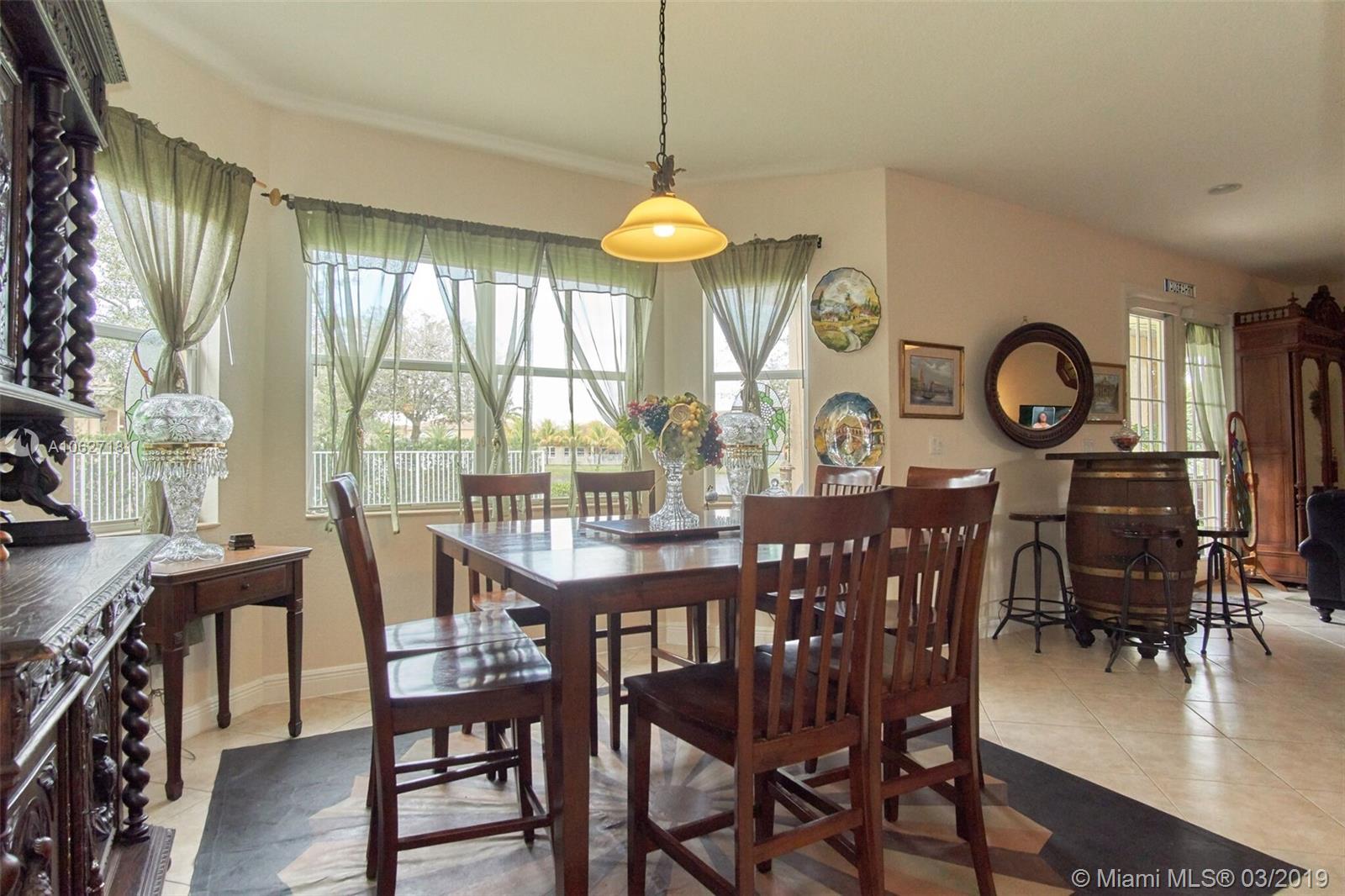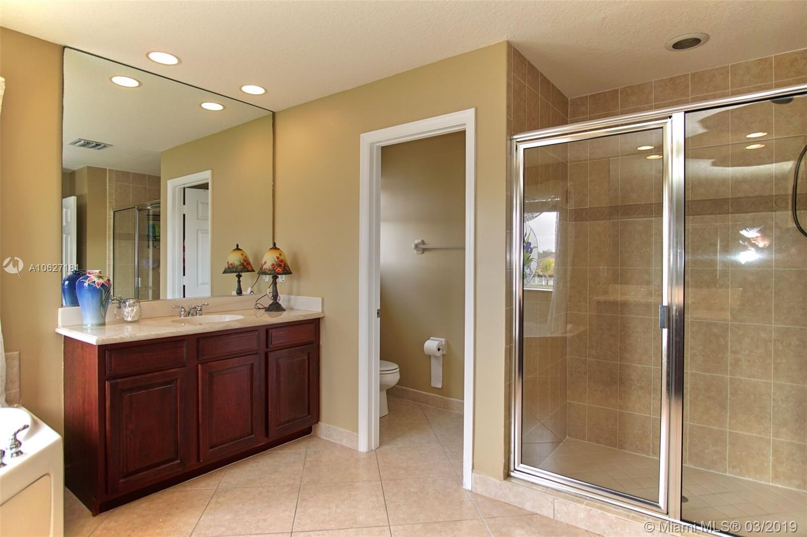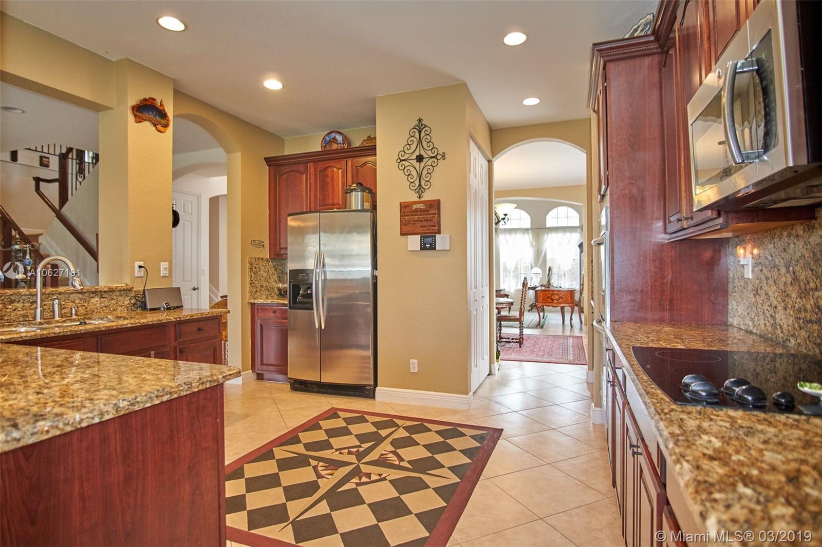 Gorgeous and Unique to find in the market Violet model in the Garden section at The Isles at Weston. Over 4,200 living area sq, 5 Bedrooms 5 Full Bathrooms, Top of the line Stainless Steel Appliances, Granite Counter Tops, Upgraded Cherry Wood Cabinets, Elegant Double Staircase, Formal living and Dining room, of a good size to accommodate any size of furniture; Separated Family Room, with Breakfast Area; Bedroom Downstairs with full bath and large closet; Full cabana bath, with exit/entry to patio; French door that opens to a Private Lake view; Master suite with rest/sitting area, 4 great size Bedrooms Upstairs Plus Large Den/Lof, which is an excellent addition to the floor plan to create your special space. Convenience 3 car garage. A must see Jewel!