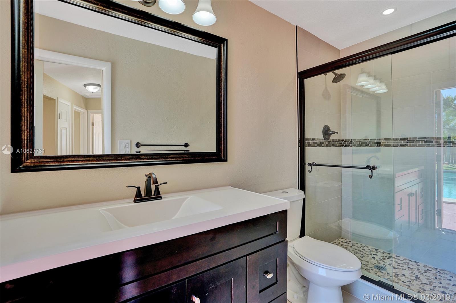 TASTEFULLY REMODELED 3/2,1 CG,CORNER LOT,POOL HOME WHICH FEATURES A STAMPED CONCRETE CIRCULAR DRIVEWAY. UPGRADED KITCHEN CABINETS, GRANITE COUNTER TOPS. UPGRADED BATHROOMS & NEW LIGHT FIXTURES. MASTER BEDROOM BOASTS A CLOSET SYSTEM. GUEST BATHROOM FEATURES A JACUZZI JET TUB. MASTER BEDROOM & ONE OF THE GUEST BEDROOMS ALLOWS OUTSIDE ACCESS TO A FRESHLY PAINTED STAMPED CONCRETE POOL DECK WHICH FEATURES A PASS THROUGH KITCHEN WINDOW & 3 NEW EXTERIOR CEILING FANS. NEW VERTICAL & BLIND WINDOW TREATMENTS THROUGHOUT THE ENTIRE HOME. NEW INT & EXT PAINT,BASEBOARDS & OUTLETS & SWITCHES. TANK LESS HOT WATER HEATER. NEW REMOTE CONTROL CEILING FANS IN ALL BEDROOMS. NEW SPRINKLER & POOL PUMP,TIMER & FILTER. NEW GARAGE DOOR. SEE BROKER REMARKS. THIS PROPERTY WILL NOT LAST!