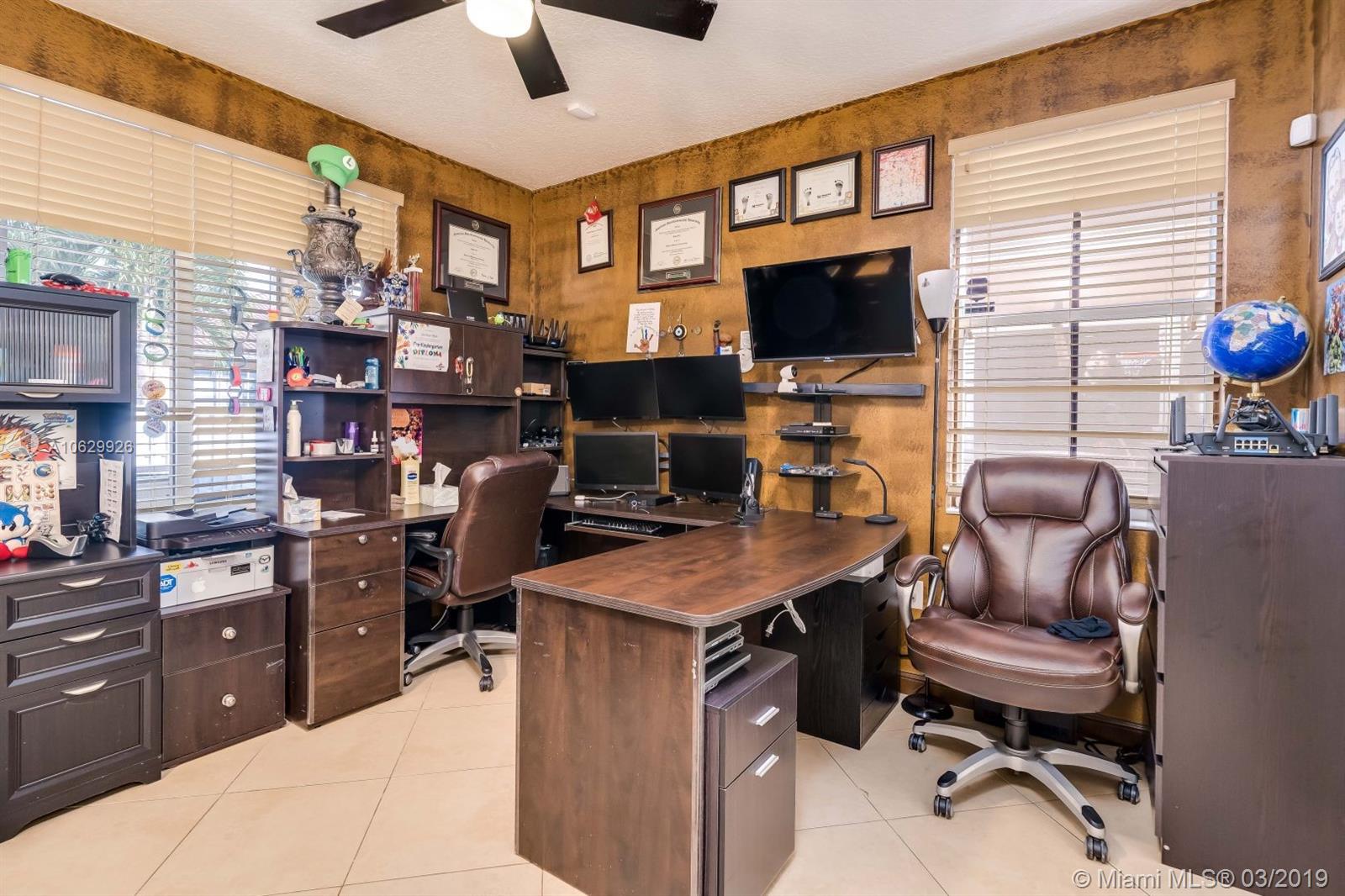 SPACIOUS CORNER LOT 4 BED HOME W/1 BED/1 BATH ON GROUND FLOOR. EAT IN KITCHEN W/42" CABINETS, GRANITE & STAINLESS. WOOD FLOORS IN LIVING, DINING RM & STAIRS, TILED EVERYWHERE ELSE, HIS/HER SINKS & CLOSETS, GORGEOUS WROUGHT IRON STAIRCASE, NEW A/C, TANKLESS WATER HEATER,PROF EXTERIOR PAINTING & SEALED DRIVE. UPGRADED LIGHT FIXTURES W/DIMMERS, INSTALLED USB PORTS THROUGHOUT, SEPARATE FAMILY RM & LAUNDRY RM W/SINK, SMALL "LOFT" AREA UPSTAIRS, GARAGE IS EVERY MANS DREAM W/LIFT, FLOORING & PORTABLE ELECTRIC SOURCE, $14,000 WINDOW TREATMENTS, CEILING FANS, VIDEO SURVEILLANCE SYSTEM/MONITOR CAN BE VIEWED ON MOBILE APP, KEYLESS ENTRY THROUGH GARAGE, ACCORDIAN HURRICANE SHUTTERS, CONTROL GARAGE DOORS W/APP & ALL STAYING W/HOME. SCREENED PATIO. CLOSE TO SCHOOLS, SHOPPING, TURNPIKE & I-75. COMM POOL