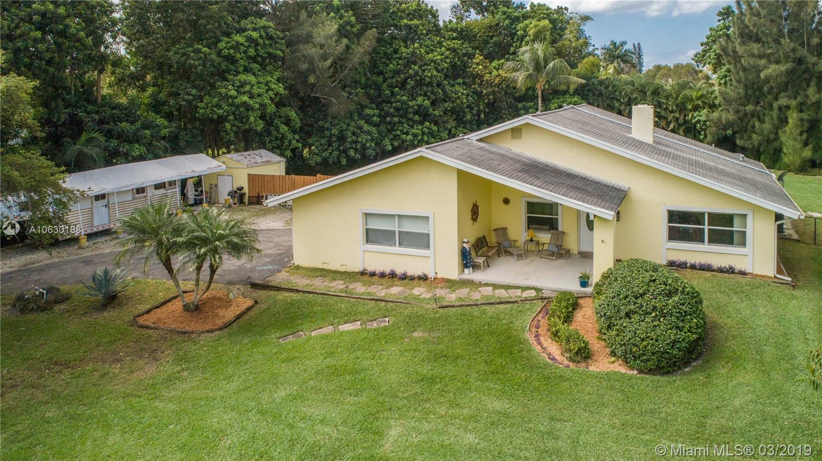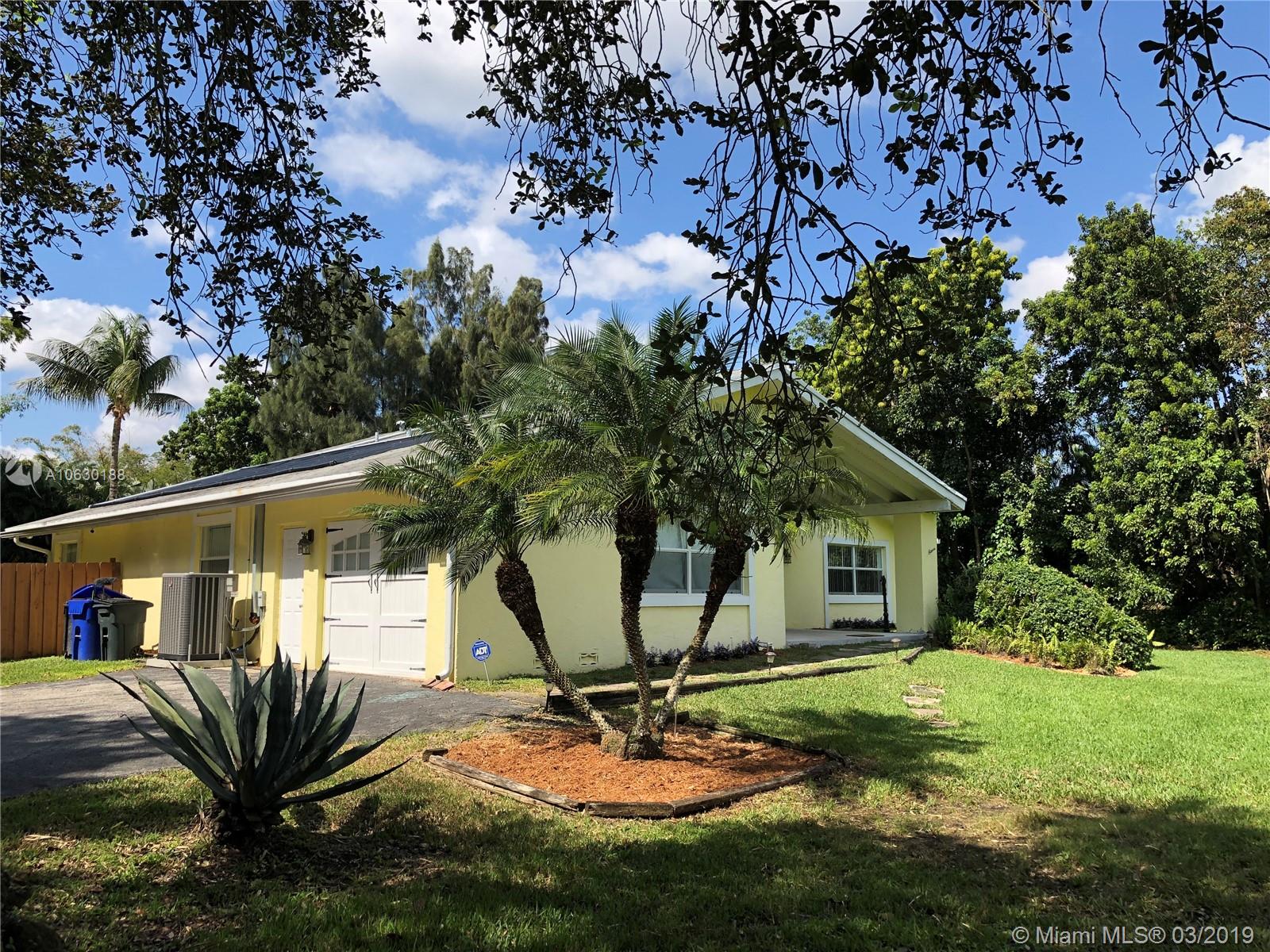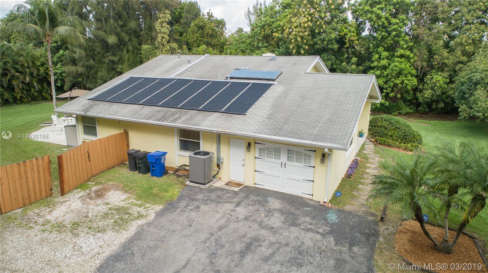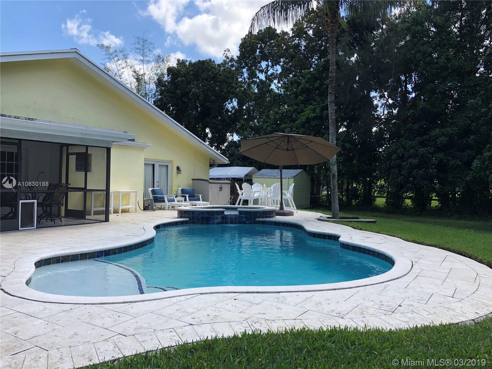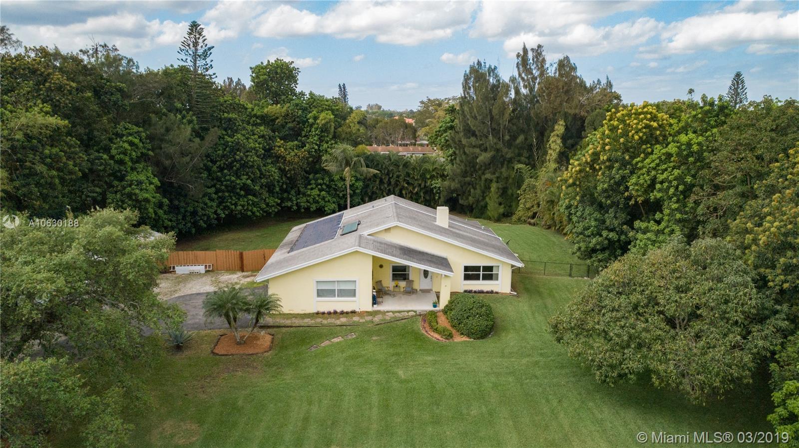 Looking for a charming, immaculate ranch style home in Southwest Ranches? This is it! Nestled on 1.2 acres, this 3bd 2bth has been extensively updated throughout. Features include gated entrance, scenic driveway, fully fenced with an array of bamboo and fruit trees lining the entire property for privacy. New remote controlled therapeutic hot tub, salt water heated pool, stone deck and enormous backyard ideal for entertaining. Solar paneled roof for heating the pool and hot water. Garage was converted into a 4th bed/office equipped with A/C. Can be converted back. Exquisite stone fireplace showcased in both living and family rooms. Tile floors throughout. Generous kitchen with wood cabinets and stainless steel appliances. Screened patio, laundry room, ample closets and many more features.