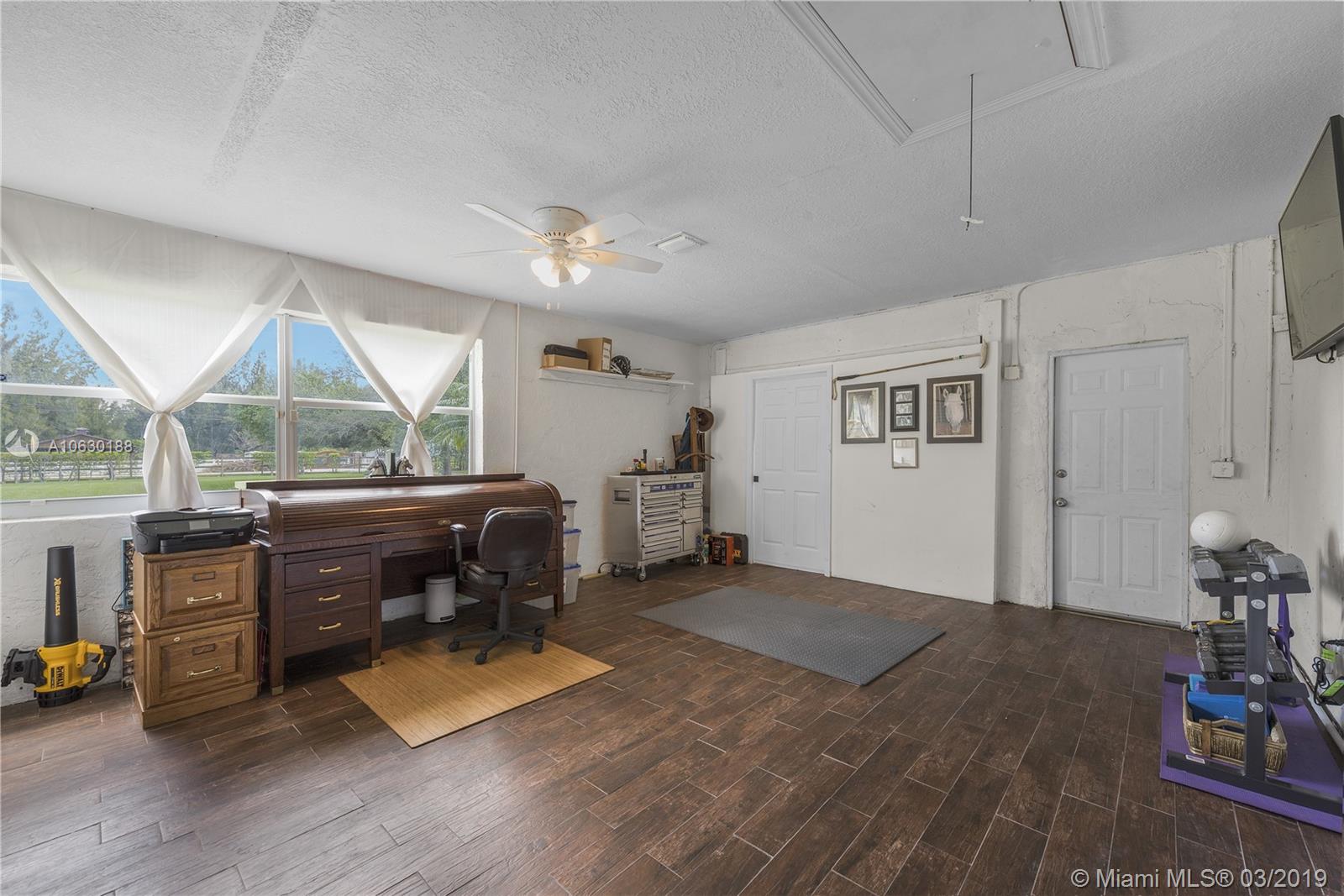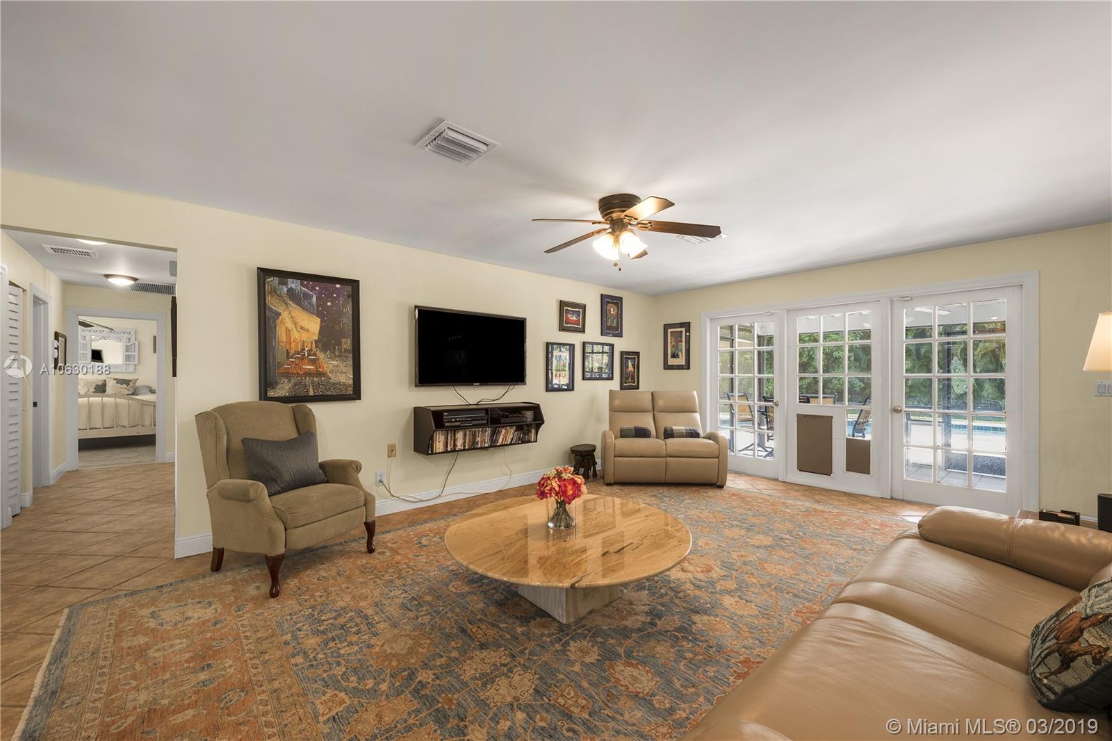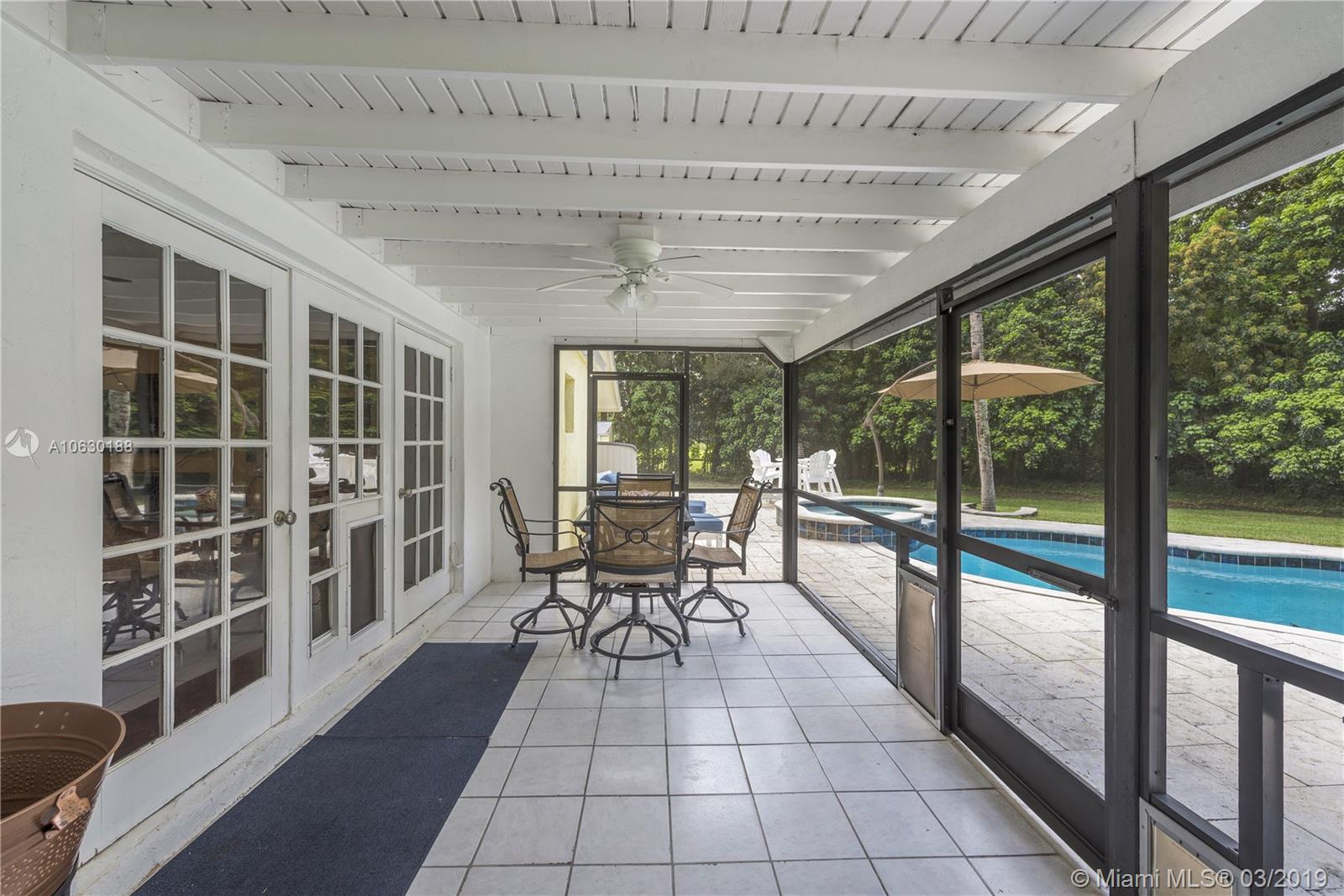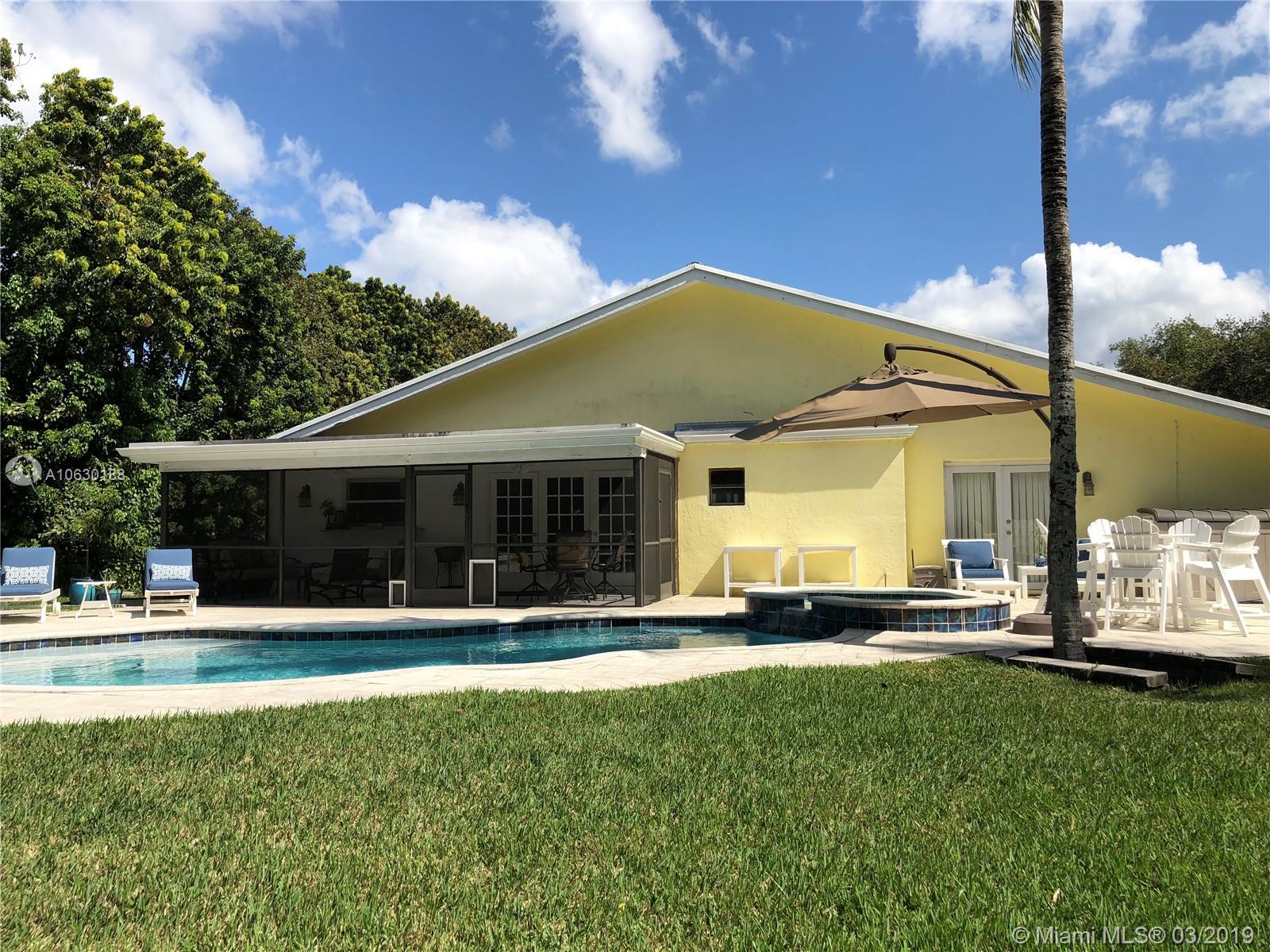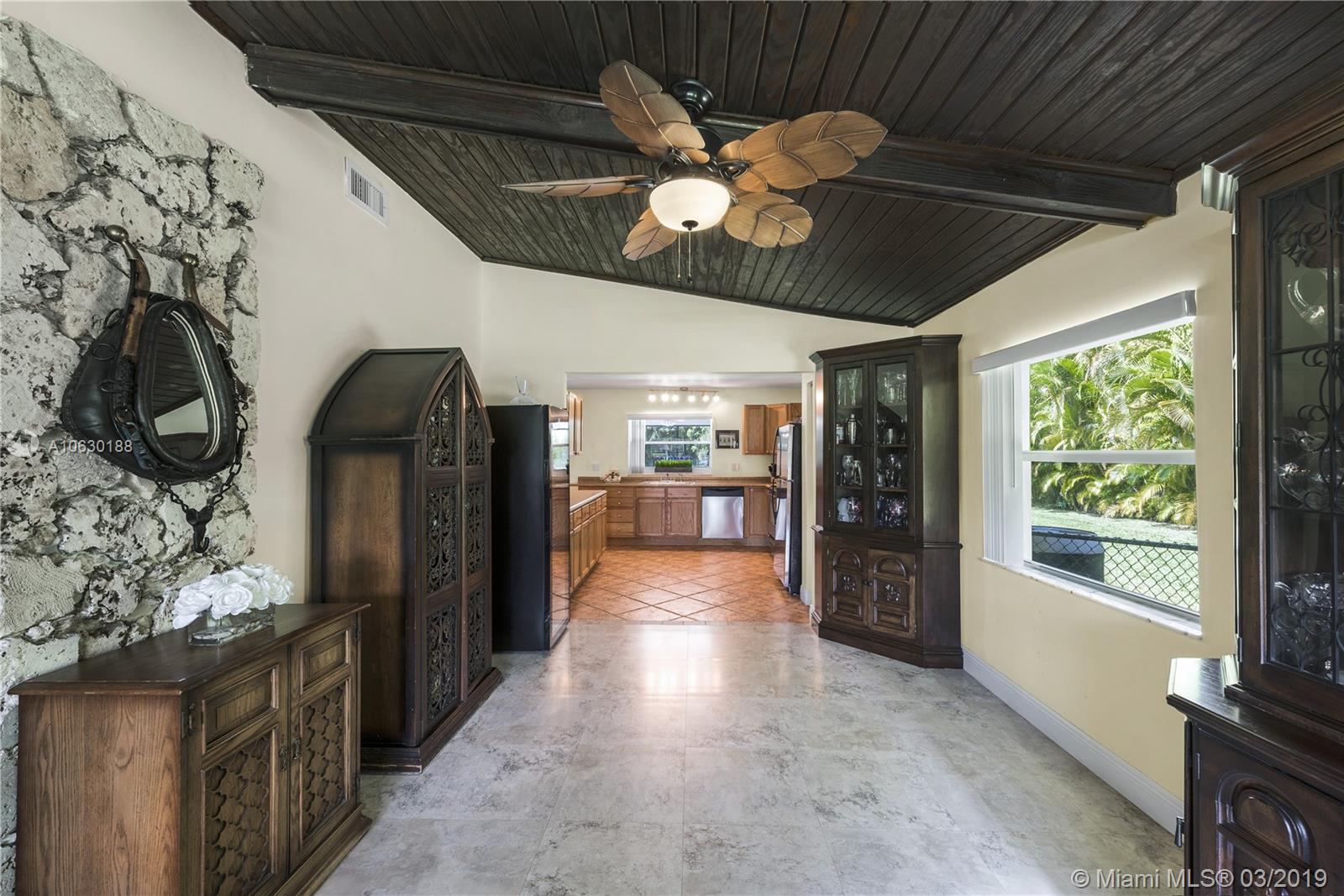 Looking for a charming, immaculate ranch style home in Southwest Ranches? This is it! Nestled on 1.2 acres, this 3bd 2bth has been extensively updated throughout. Features include gated entrance, scenic driveway, fully fenced with an array of bamboo and fruit trees lining the entire property for privacy. New remote controlled therapeutic hot tub, salt water heated pool, stone deck and enormous backyard ideal for entertaining. Solar paneled roof for heating the pool and hot water. Garage was converted into a 4th bed/office equipped with A/C. Can be converted back. Exquisite stone fireplace showcased in both living and family rooms. Tile floors throughout. Generous kitchen with wood cabinets and stainless steel appliances. Screened patio, laundry room, ample closets and many more features.