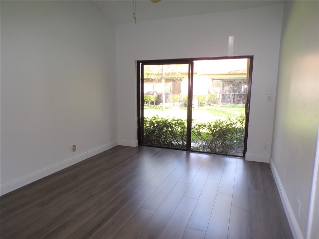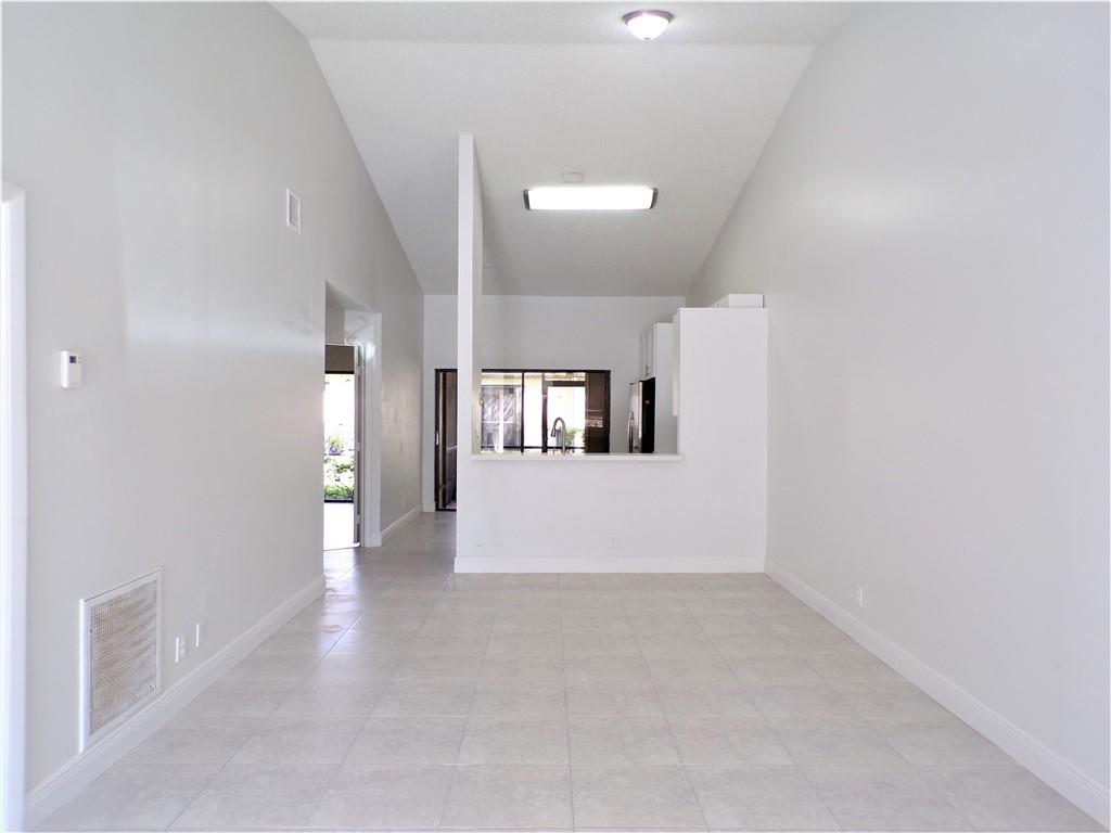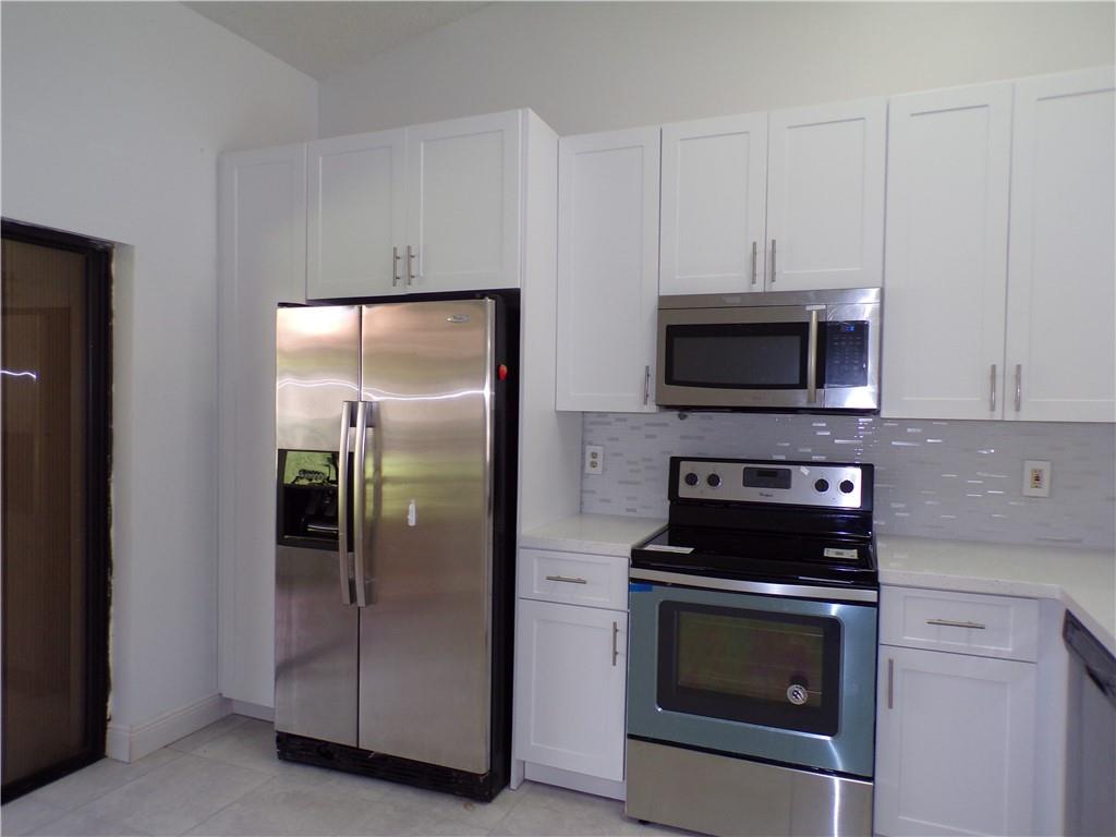 GORGEOUS INTERIOR, NEWLY RENOVATED INTERIOR WITH BRAND NEW TILE FLOORING IN LIVING ROOM, NEW WOOD LAMINATE FLOORS IN BEDROOMS, BRAND NEW KITCHEN WITH QUARTZ COUNTERS, UPGRADED WHITE CABINETS WITH BRAND NEW STAINLESS STEEL APPLIANCES. BATHROOMS ALSO REMODELED TO INCLUDE NEW TILE, BRAND NEW VANITIES WITH DESIGNER SINKS, LARGE WALK IN CLOSET IN MASTER. ACCORDION HURRICANE SHUTTERS, SCREEN PATIO OVERLOOKS OPEN GREEN AREA..GREAT COMMUNITY WITH LOW HOA DUES OF $190 PER MONTH