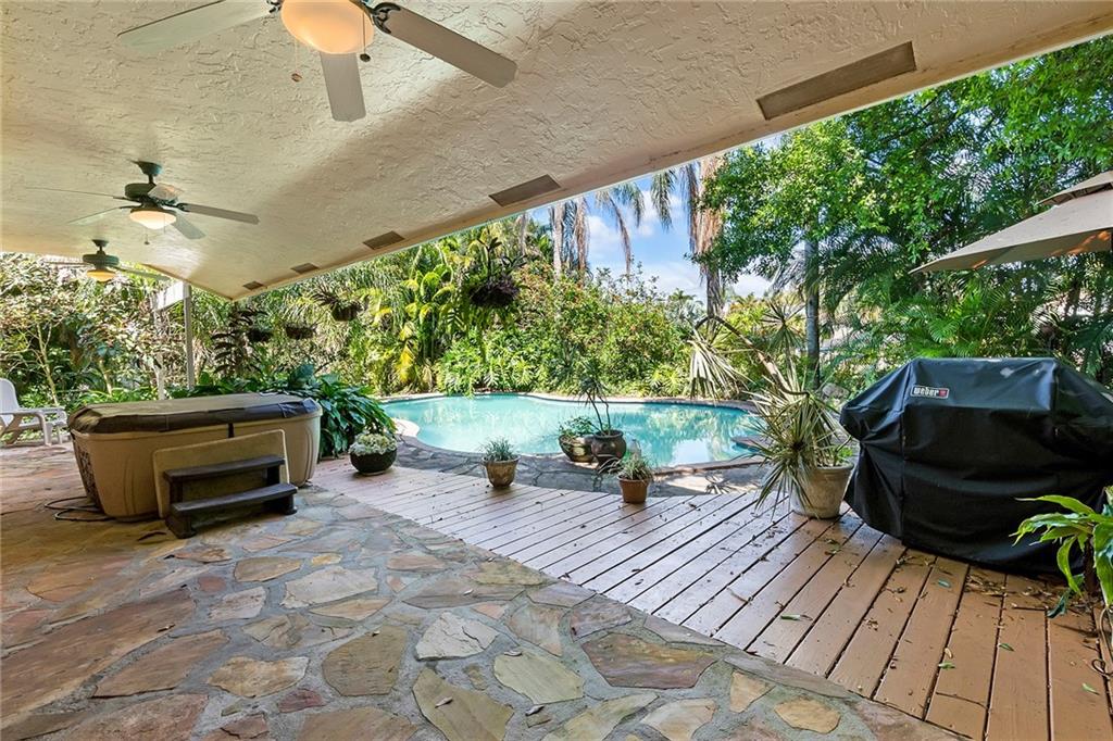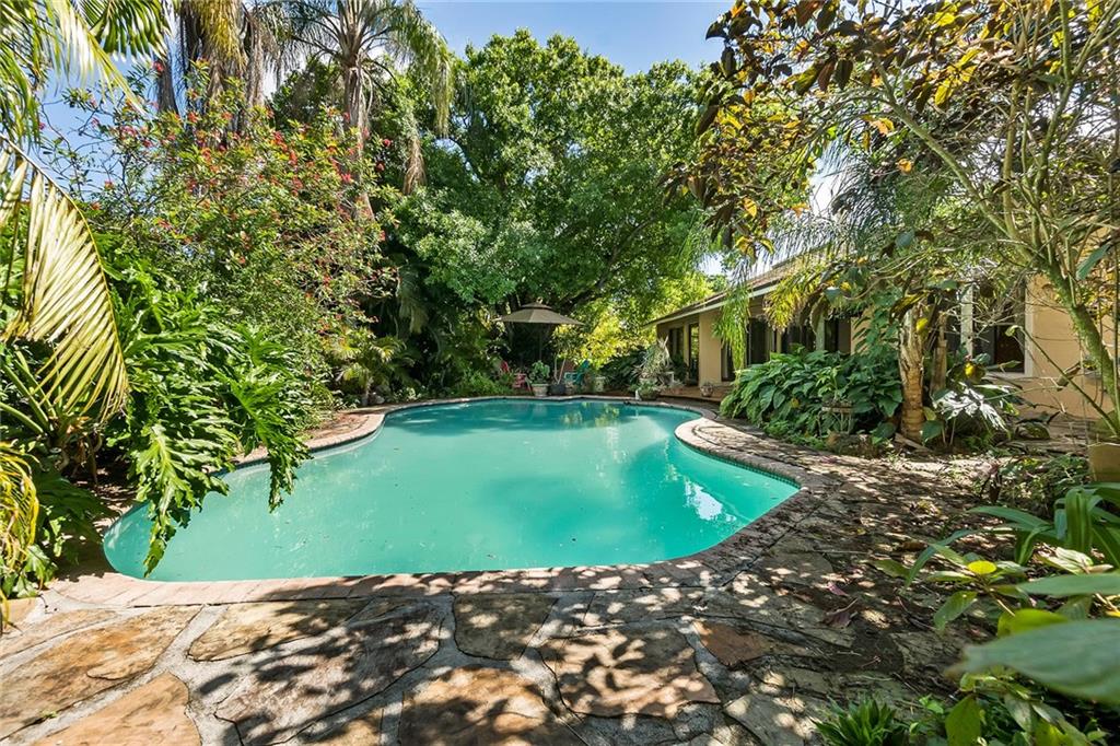 Lovely 3 bedroom 2 bathroom single family home in sought after Plantation Acres. Door open to grande formal living area w/ wood beam, vaulted ceilings, firestone pit w/ real wood burning fireplace, formal dining area, family sitting area all w/ tiled floors. Large galley kitchen w/ butcher block countertops and white and green cabinets, white appliances, large pantry and eat-in kitchen w/ tile floors. Huge master bedroom w/ walk in closet, dual sinks/dressing area. Sizable secondary bedrooms all tiled as well. Covered patio overlooking oversized pool and lush landscaping. All on 21,749 sqft lot. Great schools! Close to major highways, entertainment, shops and lots of parks.