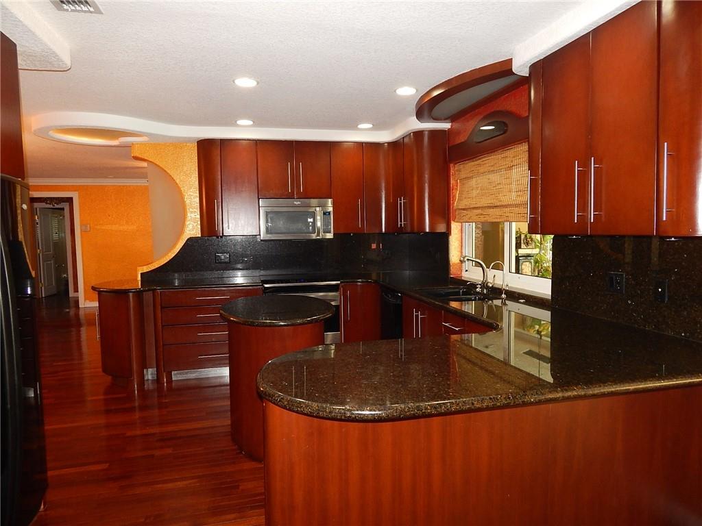 Priced below tax assessor just market value! Live in northeast Fort Lauderdale in this 3-bedroom tropical oasis pool home with a two-car garage. Wood flooring throughout, granite counter-tops, cherry wood cabinets, crown molding, large master bedroom with over-sized walk-in closet. Master bath has separate spa tub, full sit-down shower, dual sinks and cabana door to pool area. Large living area with extra room off kitchen that can be used in many ways. Private fully landscaped fenced backyard with pool, spa, lighting and covered areas for entertaining. Outside shower, kitchen has pass through window to back. Shed and Tiki Bar. Impact glass windows. Built in generator. Close to many local parks and activities. Near Commercial and Federal Hwy shopping, dining and beach corridor.