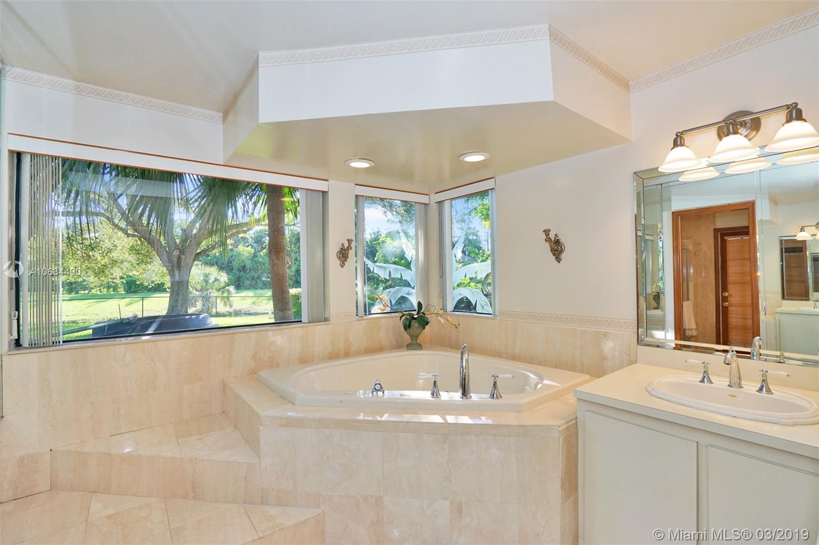 This custom Pine Ridge home is privately set on a commanding, rarely available oversized cul-de-sac waterfront lot. The grand entrance opens up to generous living spaces with volume ceilings, wood & tile floors, high hat lighting & impact windows. The open planned kitchen allows you to chop, stir & socialize while providing an abundance of cabinet & pantry space. The substantial master suite comes complete with dual walk in closets, jacuzzi tub, dual vanities, walk in shower & a cabana door leading to the pool. Grill, swim & relax on the oak lined pool deck offering private & tranquil views of the canal. This beautiful property also offers a full family room & Florida room, outdoor bbq area, fully fenced back yard, circle driveway, side entry garage, Kohler finishes & more!