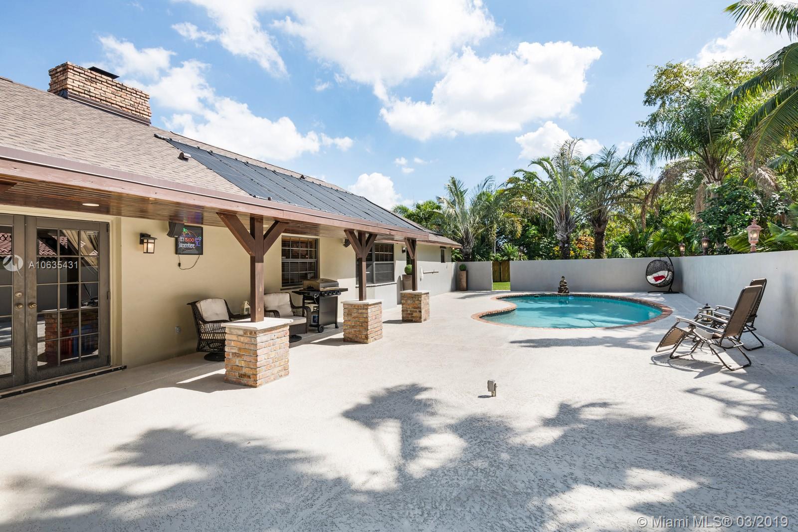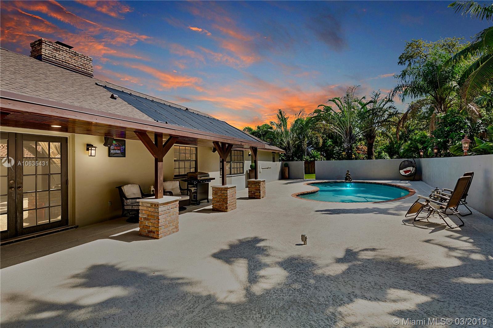 THE SEARCH IS NOW OVER! This ONE OF A KIND spectacular 5 bedroom 3 bathroom home with a pool sits on an oversized pie shaped lot at the center of a private cul-de-sac. Custom designed home that offers a split floor plan (in law living quarters with own bathroom), Specially designed indoor and outdoor gorgeous brick fireplaces. BRAND NEW ROOF, HURRICANE IMPACT WINDOWS, BRAND NEW AC/AIR DUCTS, BRAND NEW SOLAR PANEL/POOL PUMP, 24X24 Porcelain tile flooring, BRAND NEW ENGINEERED WOOD FLOORING in rooms, BRAND NEW WATER HEATER. CUSTOM BUILT Wet Bar! Master Bath/2nd bathroom all redone. 2 car garage, NEW landscaping + fencing, SURROUND SOUND SPEAKER INDOOR AND OUTDOOR, SMART HOME (RING DOOR BELL/SMART SWITCHES/ 24/7 Camera surveillance), Two separate oversized yards! OVER $200,000 in upgrades!!