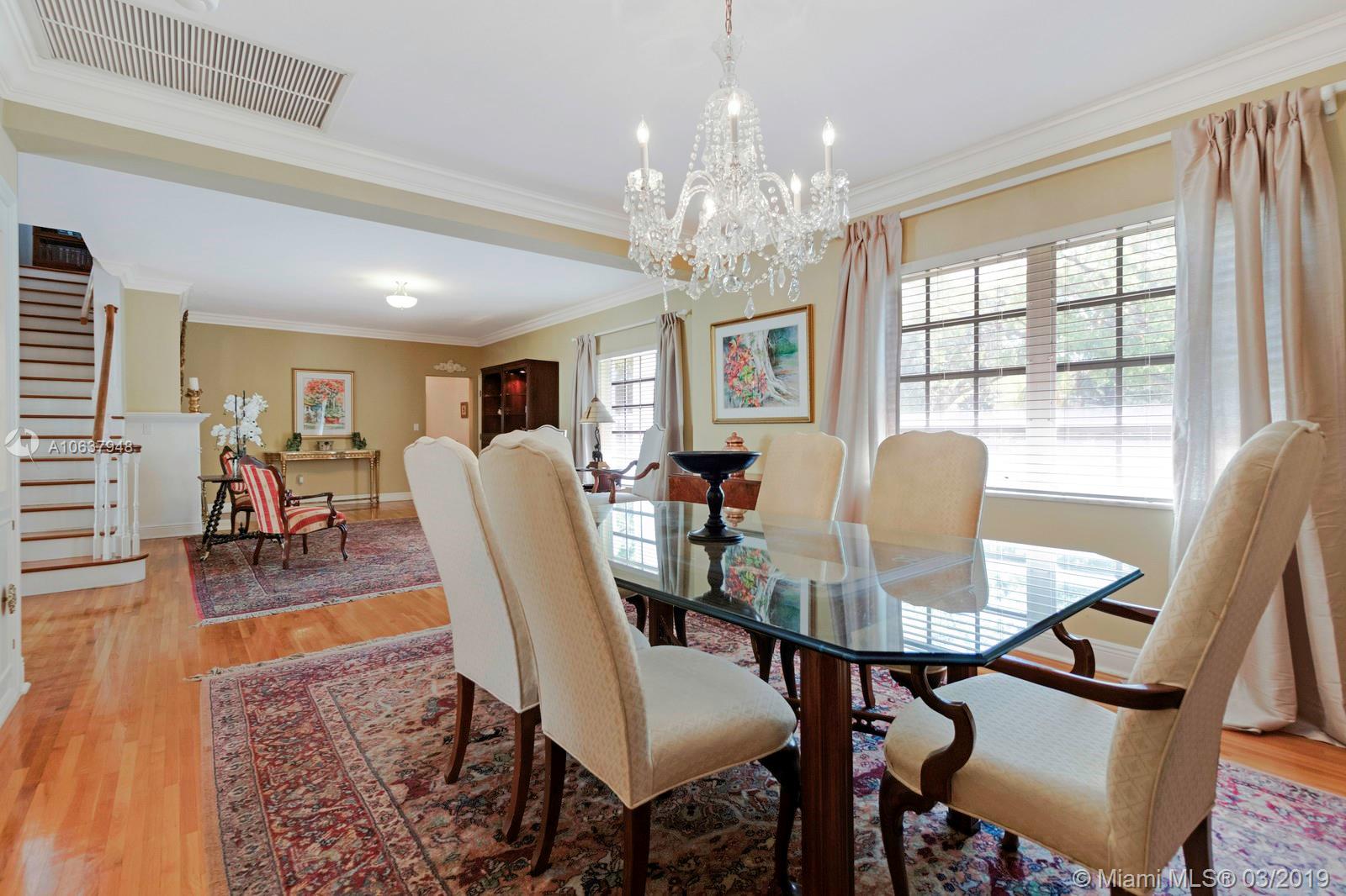 Magnificent two story colonial home on the Coral Gables Waterway with access to the Bay. Boaters dream home 171 ft. of water frontage with dock and boat lifts. The beautiful living spaces include, the living room with quality finishes high ceiling with wood beams overlooking the pool and the waterway, spacious dining room, media room and family room, master suite and bathroom on the first floor,grand staircase leading to the upstairs two bedrooms two baths. 2 car garage. Beautiful oak trees. Chandeliers in the dining room and kitchen not included.