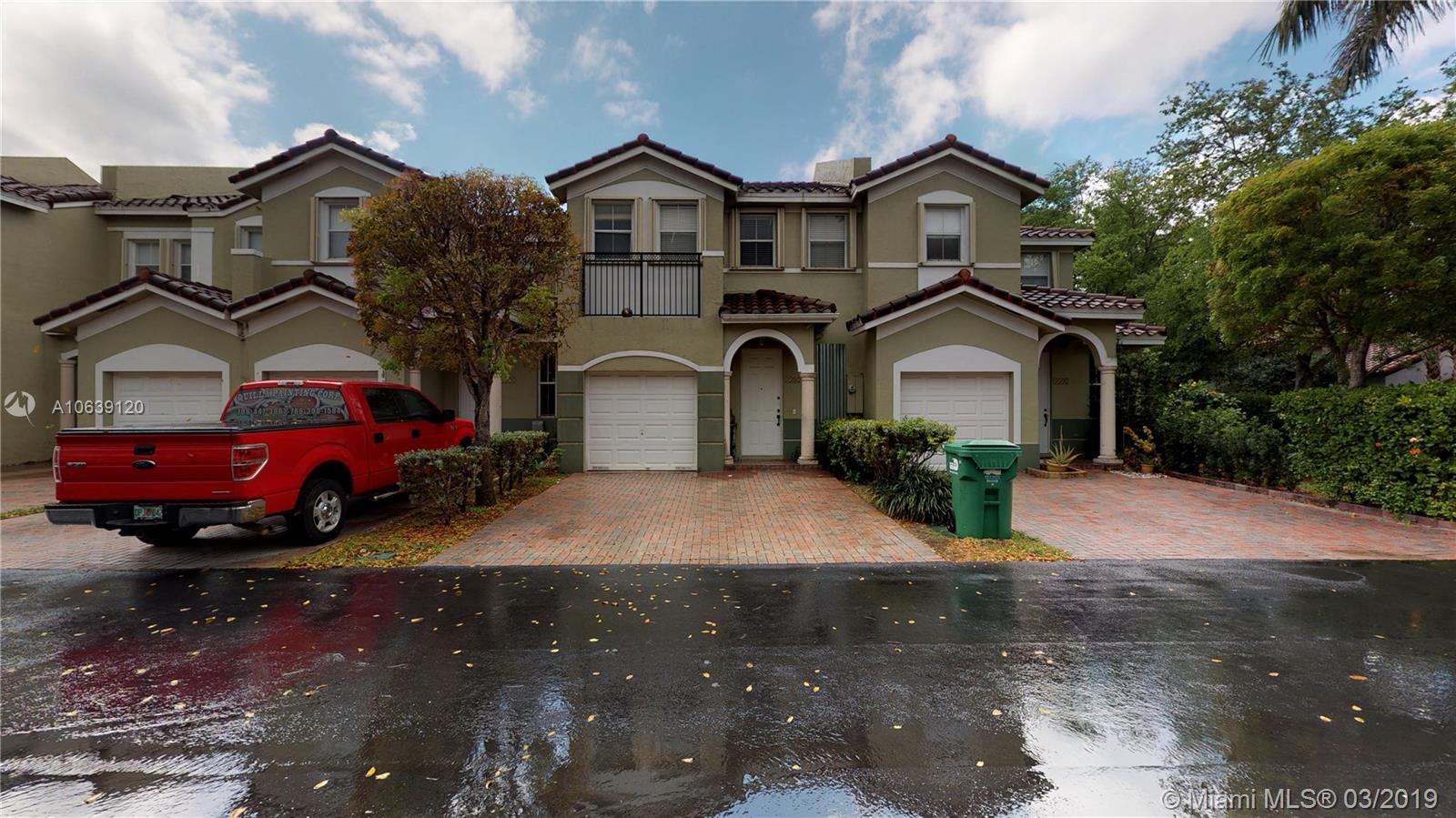 BEAUTIFUL 2/2.5 + DEN TOWN HOUSE IN SANDCASTLE AT DORAL. GORGEOUS WOOD FLOORING ON 2ND LEVEL. HOME FEATURES TWO MASTER BEDROOMS, EACH WITH IT'S OWN BATHROOM AND WALK-IN CUSTOM MADE CLOSET. LARGE SHADED PATIO