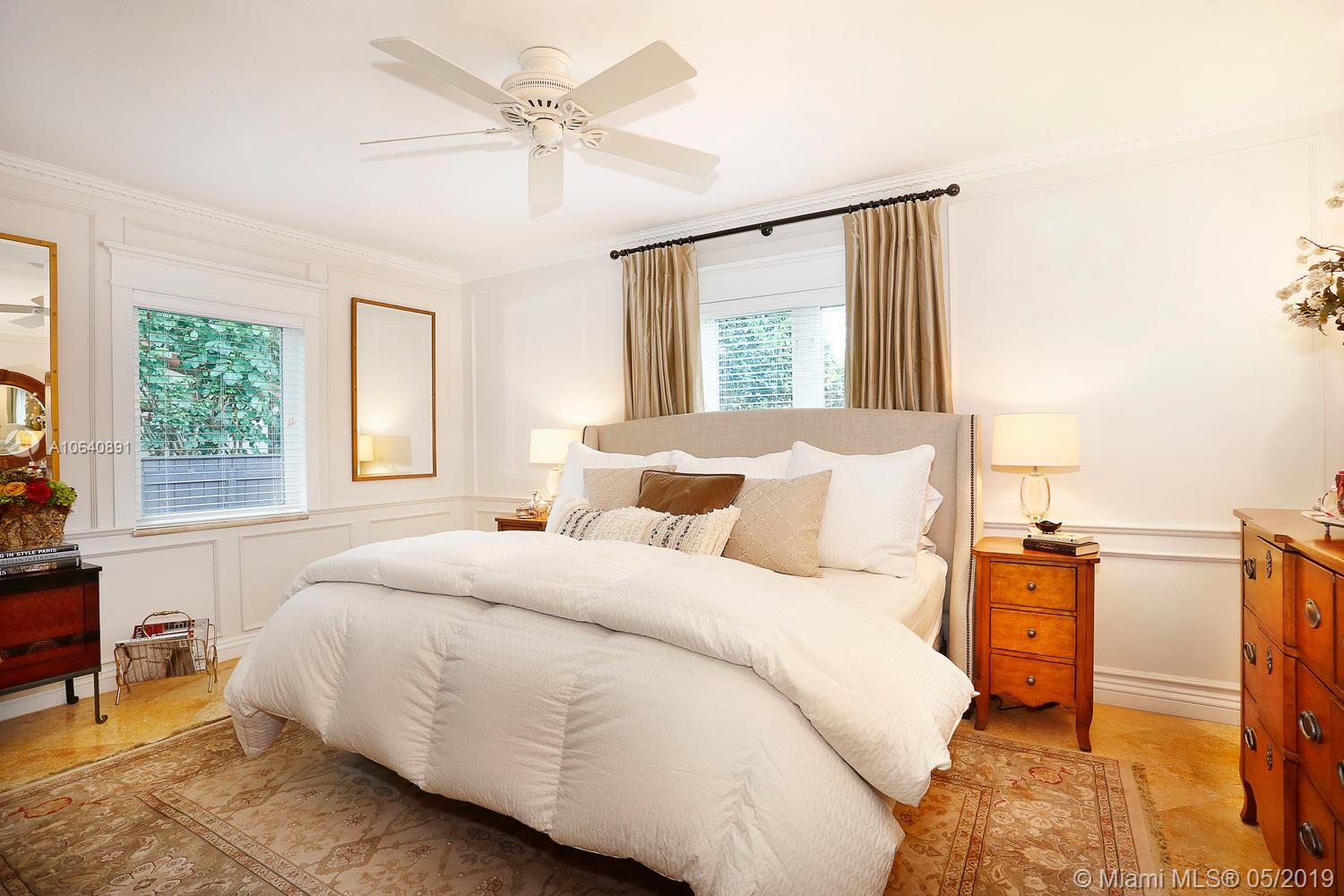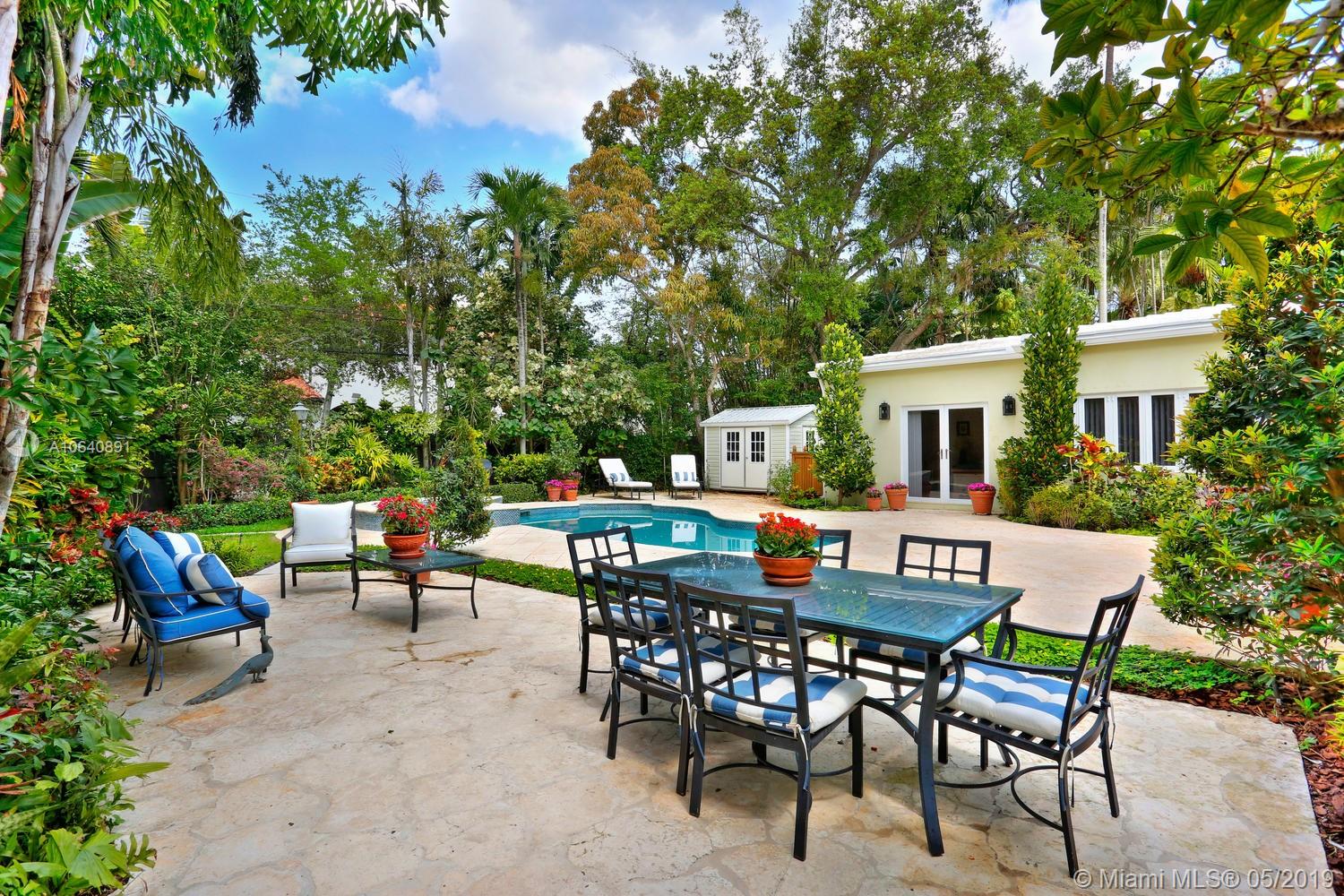Lovely home w/ classic architectural details, impeccably updated throughout. Located on a quiet, tree-lined S. Grove street, just a short bike ride to the village & bayfront parks. Light-filled living spaces include formal living/dining rooms, office & a spacious family room featuring walls of glass overlooking lushly landscaped grounds. Stunning, open kitchen w/wood cabinetry, marble countertops, Jenn-Air appliances & island w/seating. Notable features include marble flooring, custom built-ins/millwork and stone fireplace. Master suite has an expansive walk-in closet & luxurious bath w/ large rainshower. Guest suite ideal for multi-generational families, includes living room, kitchen & 2 BR/1BA. Spectacular, park-like garden with expansive terraces surround tranquil pool & spa.