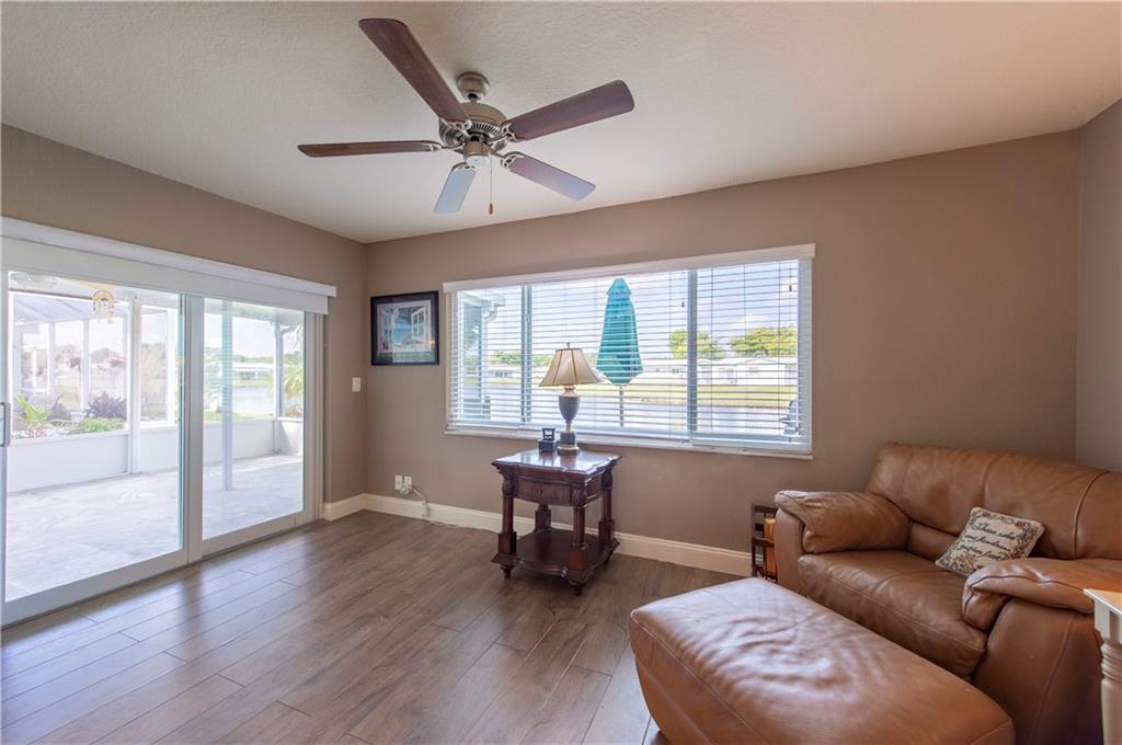 Stunning 2/2 lakefront home in Lauderdale West, 55+ community. Steps from all the action. Enjoy the pool and tennis courts right outside your front door. This home features stainless steel appliances and granite counter tops. Bathrooms were recently remodeled. NEW electrical panel. Covered back patio. Wood flooring throughout. IMPACT WINDOWS and Doors. Low insurance and LOW taxes! The HOA covers the ROOF, exterior paint, pest control, lawn, many amenities such as heated pools, tennis, Cable (ATT U-Verse), Library, Fitness Center & other activities such as shuffle board, other games, stained glass classes & more!! Completely TURNKEY. Unbelievable weather, retire or downsize in paradise! Must see!!