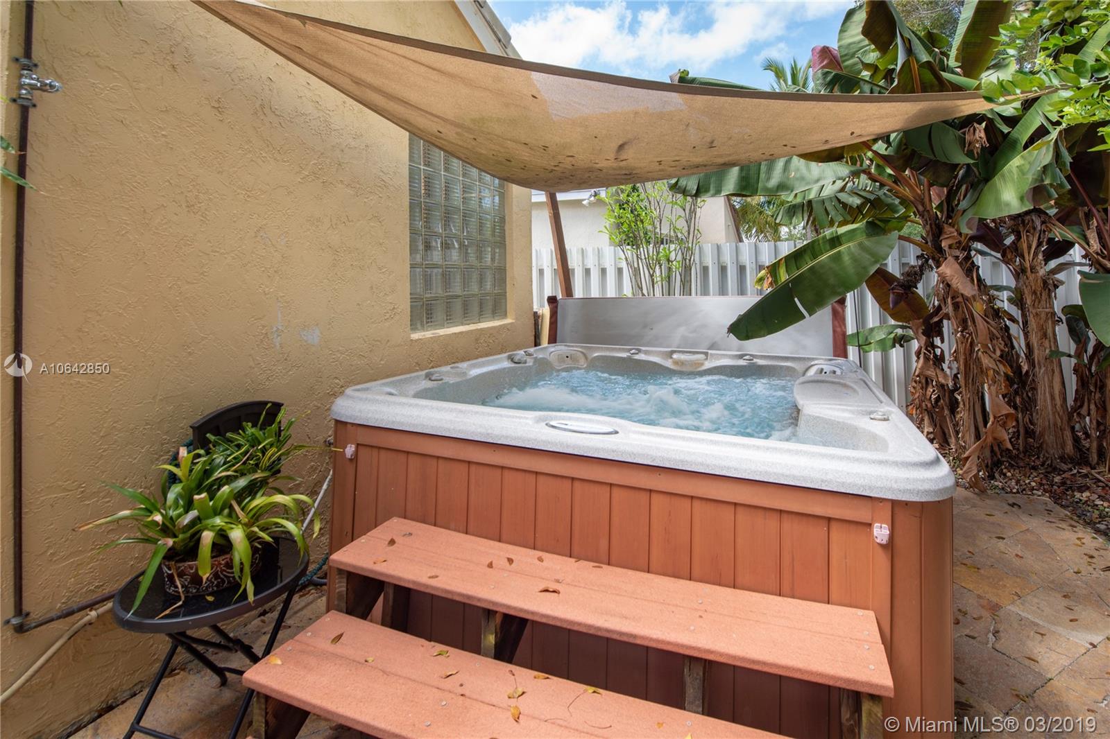Welcome to this private tropical oasis in the guard gated community of The Falls in Weston. Relaxing is easy in the large chromotherapy jetted hot tub surrounded by Key Lime, Plumeria, and Coconut trees! Spacious one story 4 bed / 2.5 bath home with ceramic flooring, large master walk-in closet, storm accordion shutters, new A/C, and new hot water heater. Low HOA fees with excellent community amenities including pool, basketball court, volleyball court, and playground. Close to shopping and highways. In the boundaries of Weston’s desirable “A” rated public schools.