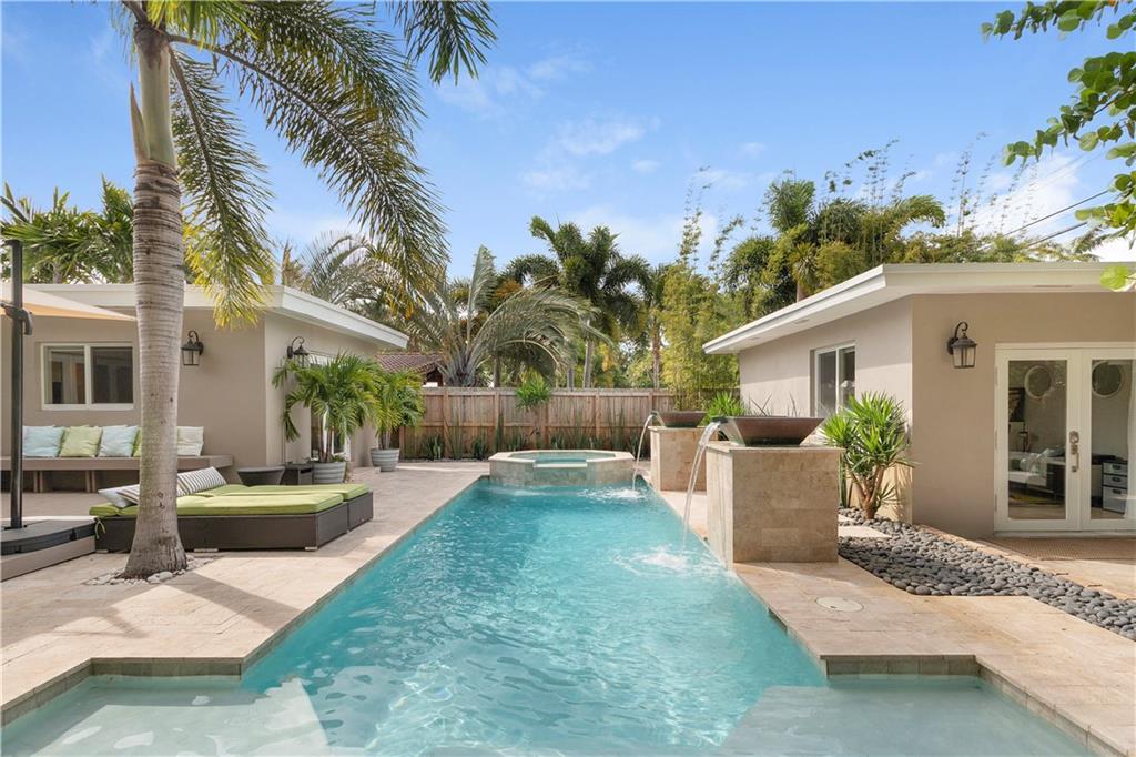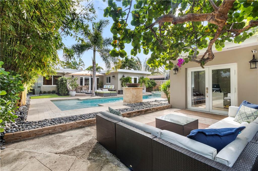Welcome home to a tropical oasis of serenity, inspired by lush landscaping, cascading water features & a salt water pool & spa. This updated home is situated in E. Fort Lauderdale's desirable subdivision of Poinsettia Heights. The luminous open floor plan is conducive to today's lifestyle with hurricane impact windows & doors that seamlessly integrate indoor & outdoor living spaces. The gourmet kitchen offers tremendous counter space ideal for entertaining & opens onto the dining area & great room. The master suite & lavish bathroom provide the ultimate retreat. A separate air conditioned studio/office is only steps from the main house. A fenced & private front yard, sun deck overlooking the pool & spa & outside living area complete the private allure of this residence. Sq ft from IMAPP