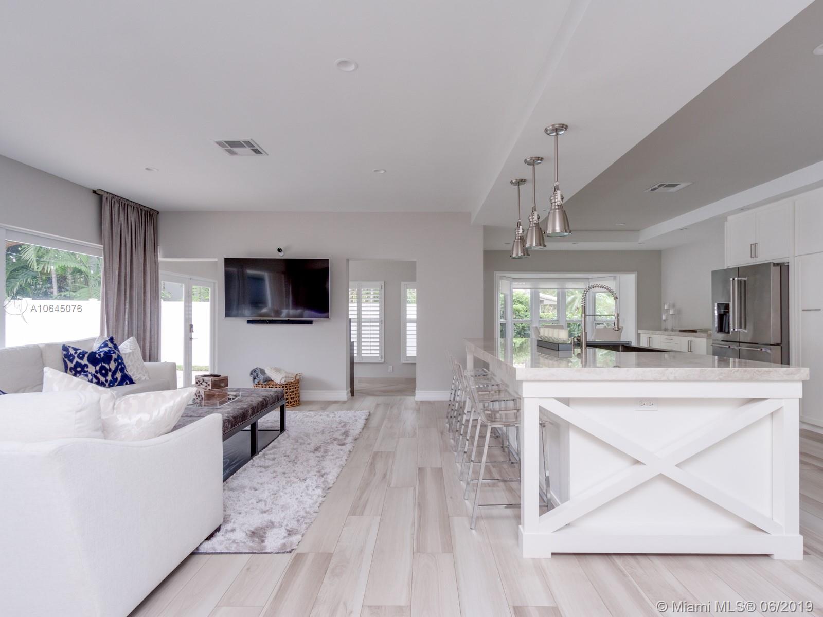 Gorgeous and unique split-level home in the heart of Coral Ridge and sought-after Bayview school district! Completely renovated (over $200,000 in recent upgrades) with open-concept floor plan, Quartzite countertops/island with power, new LED lighting, 2 new electrical boxes and buried electrical incoming line, new water heater, new garage doors and closets. All new KitchenAid appliances, Impact windows, wood porcelain floors, poly vinyl fence and so much more. Features include a spacious great room with wall of sliding glass doors overlooking private pool area and huge 2nd floor master suite with sitting area and walk-in closet. Two 1st floor bedrooms have direct access to patio/pool. Prime corner lot offers circular paver driveway and additional side driveway with 2-car garage.