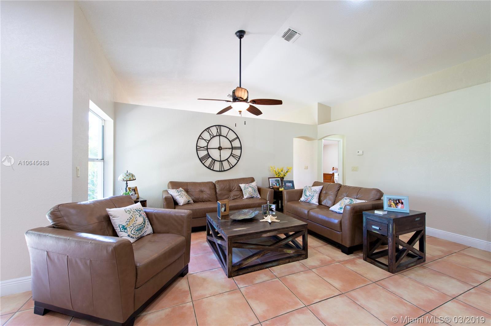 REDUCED!! 4 bedroom, 2 bath home in Southwest Ranches sits on nearly an acre lot with a canal view at the rear of the yard. This home has been meticulously kept and is perfect for entertaining many guests with plenty of indoor living space, beautiful outdoor pergola, and an in-ground fire pit. The bathrooms and kitchen were updated in the last few years and the kitchen has new stainless-steel appliances. The home has 18”x18” tile throughout and high ceilings in the living areas. A portion of the 2-car garage was converted to become the 4th bedroom but can be converted back if so desired. The remaining garage is large enough to store all your toys.