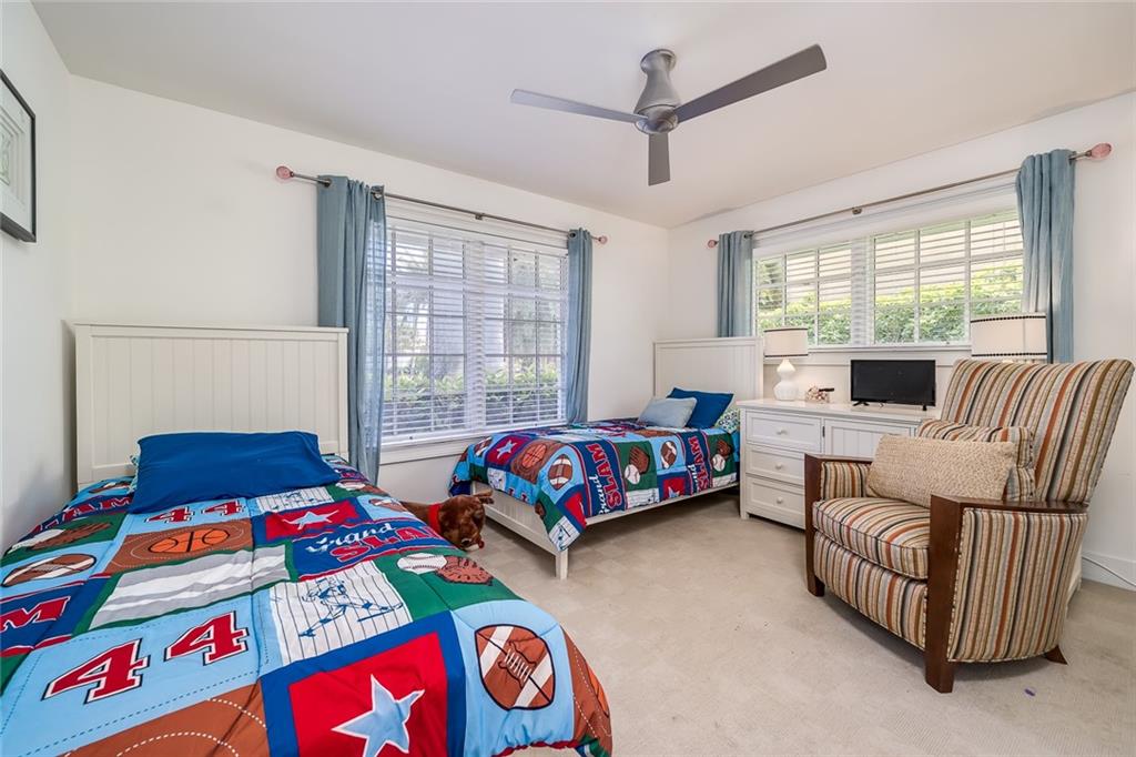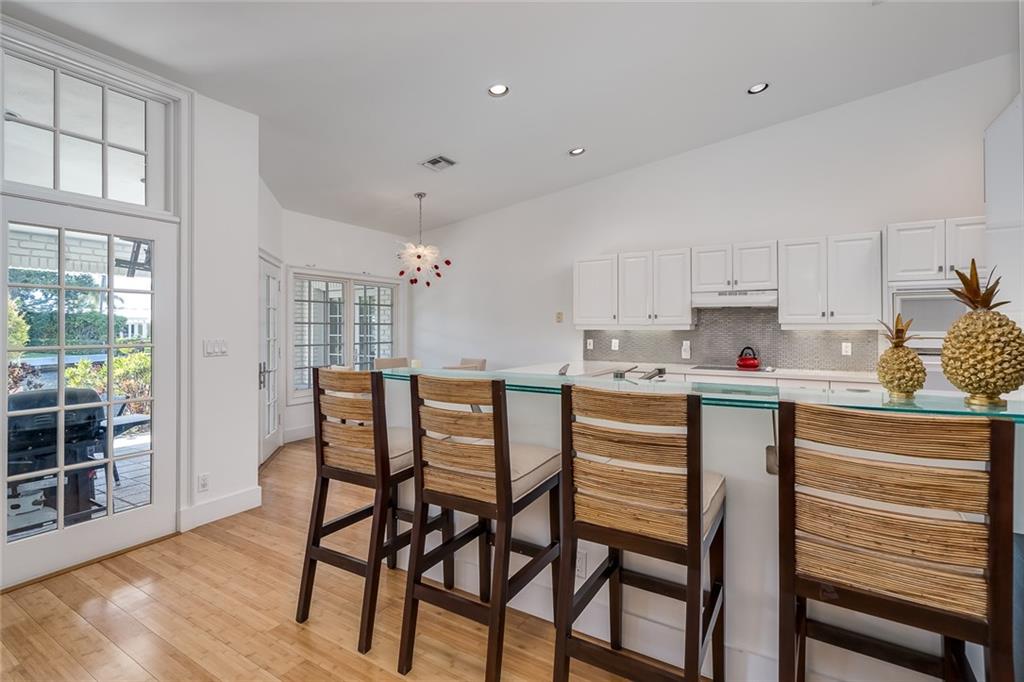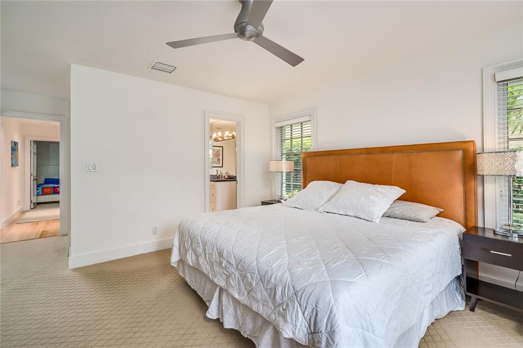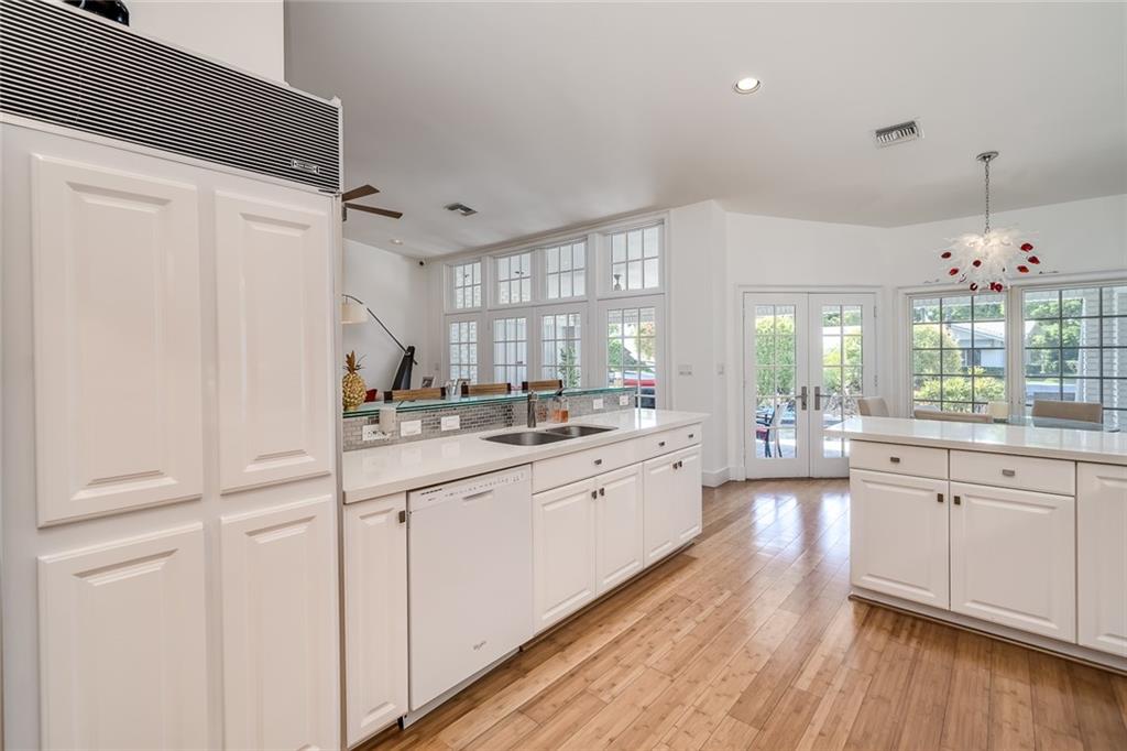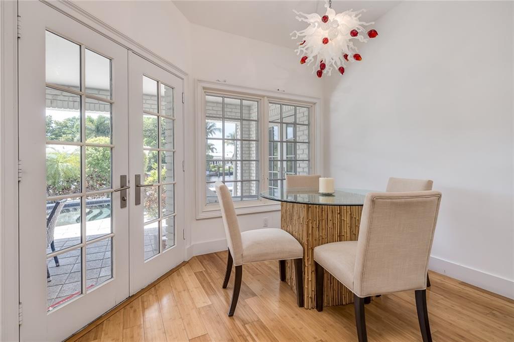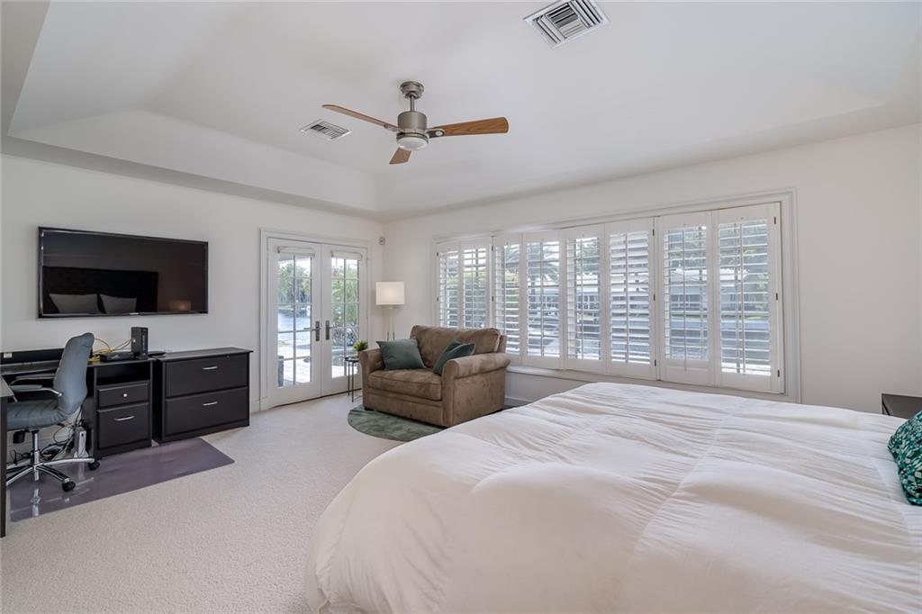 Modern touches dress this classically styled Landings' ranch as it sits just one residence off the point! This waterfront home features French doors throughout, bamboo flooring & perfectly split floorpan. The extra-large master has two walk-in closets & private entrance to the back patio while ensuite bathroom offers double sinks & separate shower/soaking tub. Fourth bedroom off master is best suited as office with plenty of light & private side entrance. Guest suite on opposite side of home also has ensuite bath & walk-in closet. Approximately 90 feet of waterfront provides a beautiful expansive view at the end of your waterway & you're one right turn off the intracoastal! Backyard hosts a newly painted dock with electric/water & spacious grass area for a children's swing set or dog run!