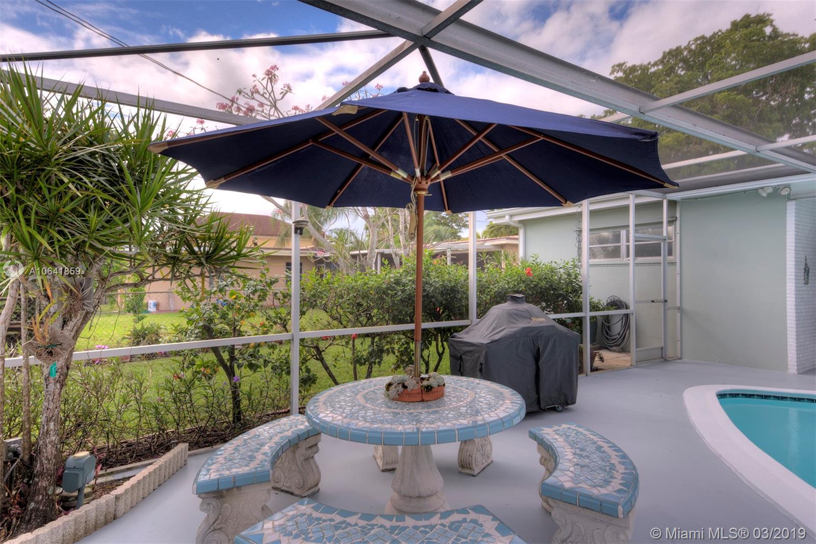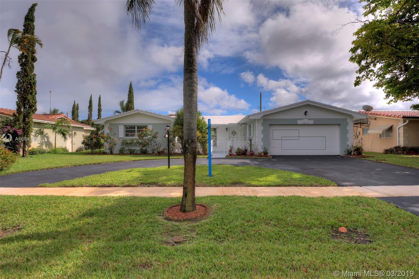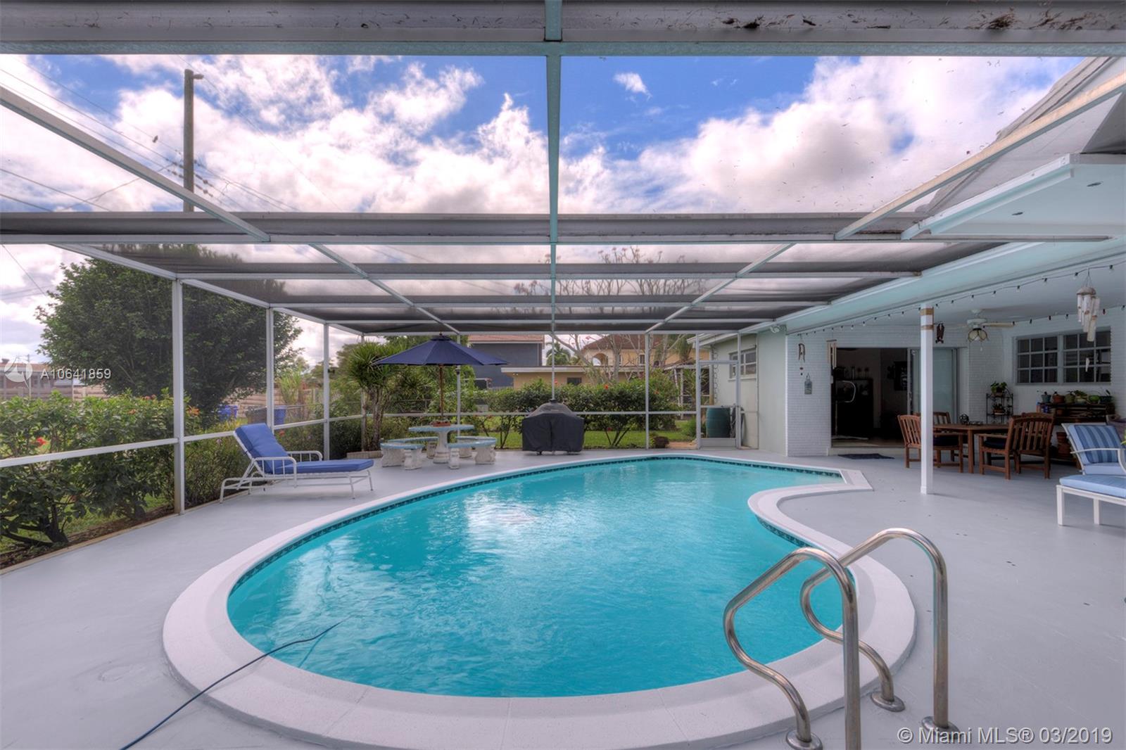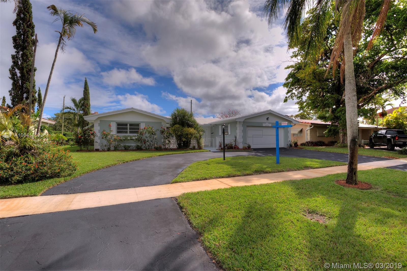 TRUE SOUTH FLORIDA LIVING IN HOLLYWOOD HILLS! Situated on OVER a 10,000 Sq Ft Lot, this meticulously maintained home features a circular driveway, 3 Bedrooms, 2 Bathrooms, 2 Car Garage, & large covered Lanai w/ screened in salt water Pool. Perfect marriage of INDOOR / OUTDOOR LIVING w/ LARGE SLIDING GLASS DOORS off of Living Room, Bonus Room, & Master Bedroom. Features OVER 2,000 Sq Ft under air w/ Tile flooring throughout & polished Terrazzo in Bedrooms. LUSH LANDSCAPING, gated front patio, exquisite pool area, NEW 2018 A/C, 2017 resealed Roof, TERMITE WARRANTY, Propane Gas Stove & Water Heater, & auto Sprinkler system. MOVE FAST ON THIS TROPICAL OASIS!