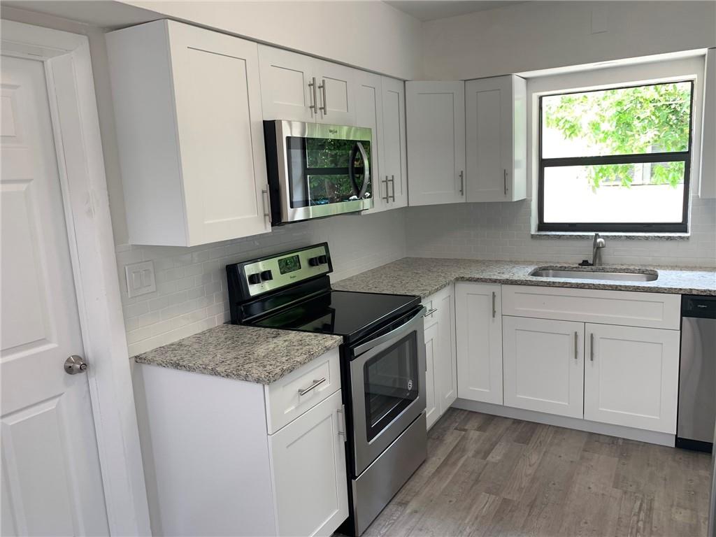 FULLY RENOVATED 3/2 with garage in Melrose Park Fort Lauderdale! Contemporary open floor plan with upgraded waterproof, textured wood-plank vinyl flooring throughout home and bedrooms makes for a spacious feel. Separate dining, living and family rooms with plenty of natural light. New kitchen has solid cabinetry with granite countertops, L-shaped bar countertop for eating & entertaining, under-mount sink, SS appliances. Huge laundry/utility room off kitchen leading to exterior. New lighting, large bright baseboards and neutral tones throughout. Both bathrooms renovated with new vanities, tile, new fixtures, lighting & plumbing; master bath has shower with stone floor, guest bath has a tub. Spacious & clean garage. Huge back yard with room for pool. New AC & upgraded electric.