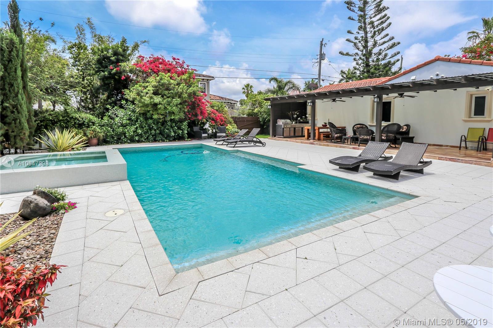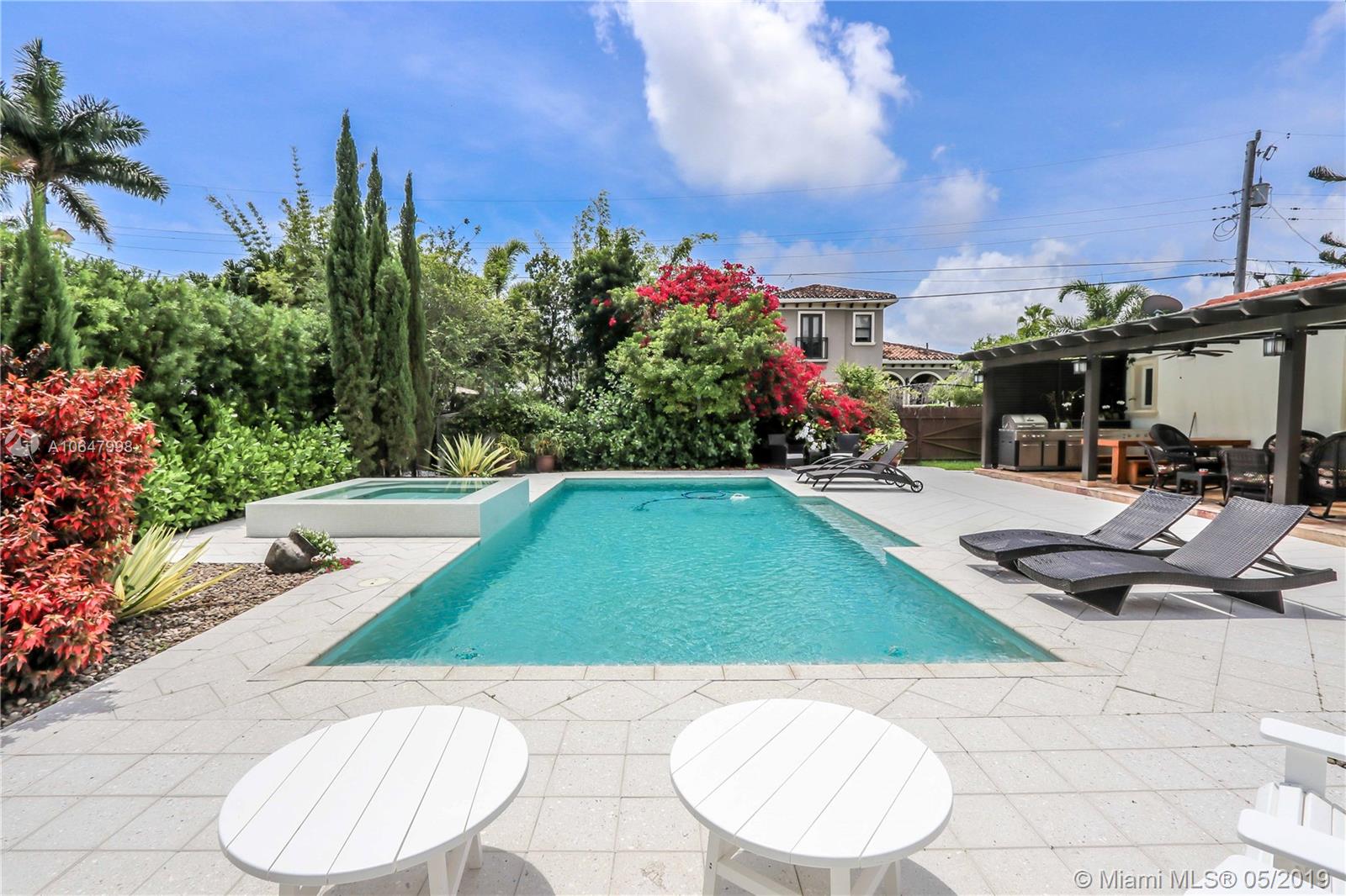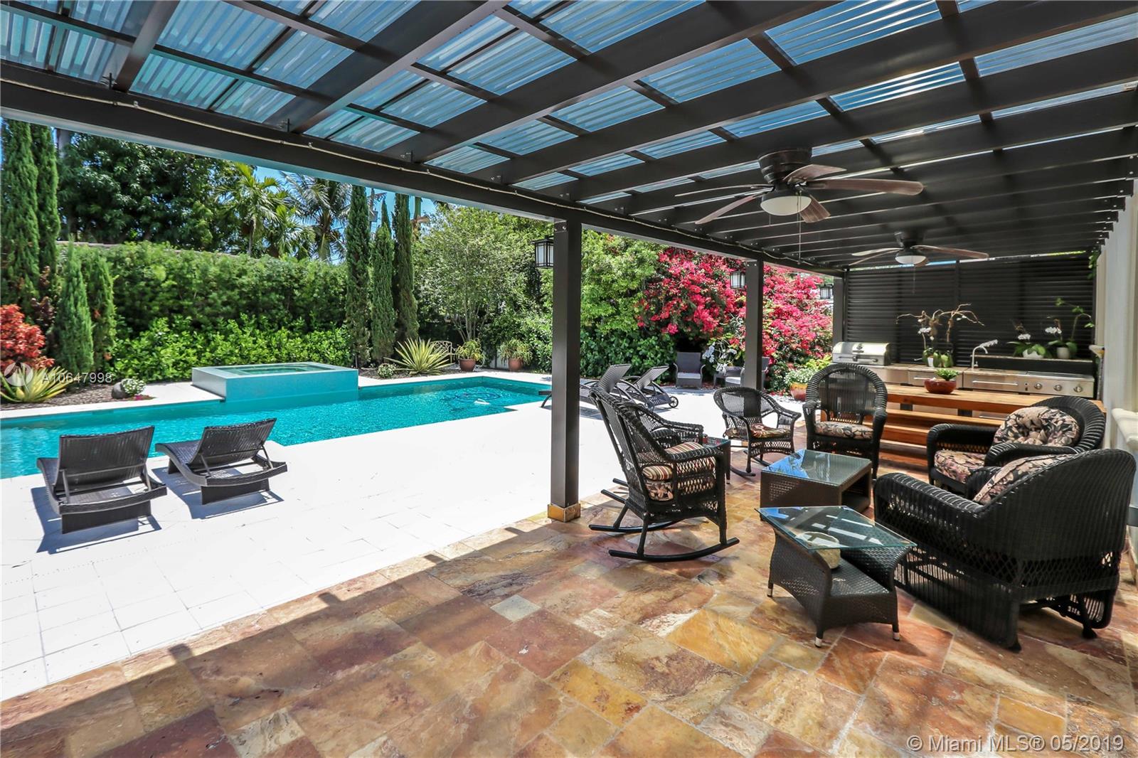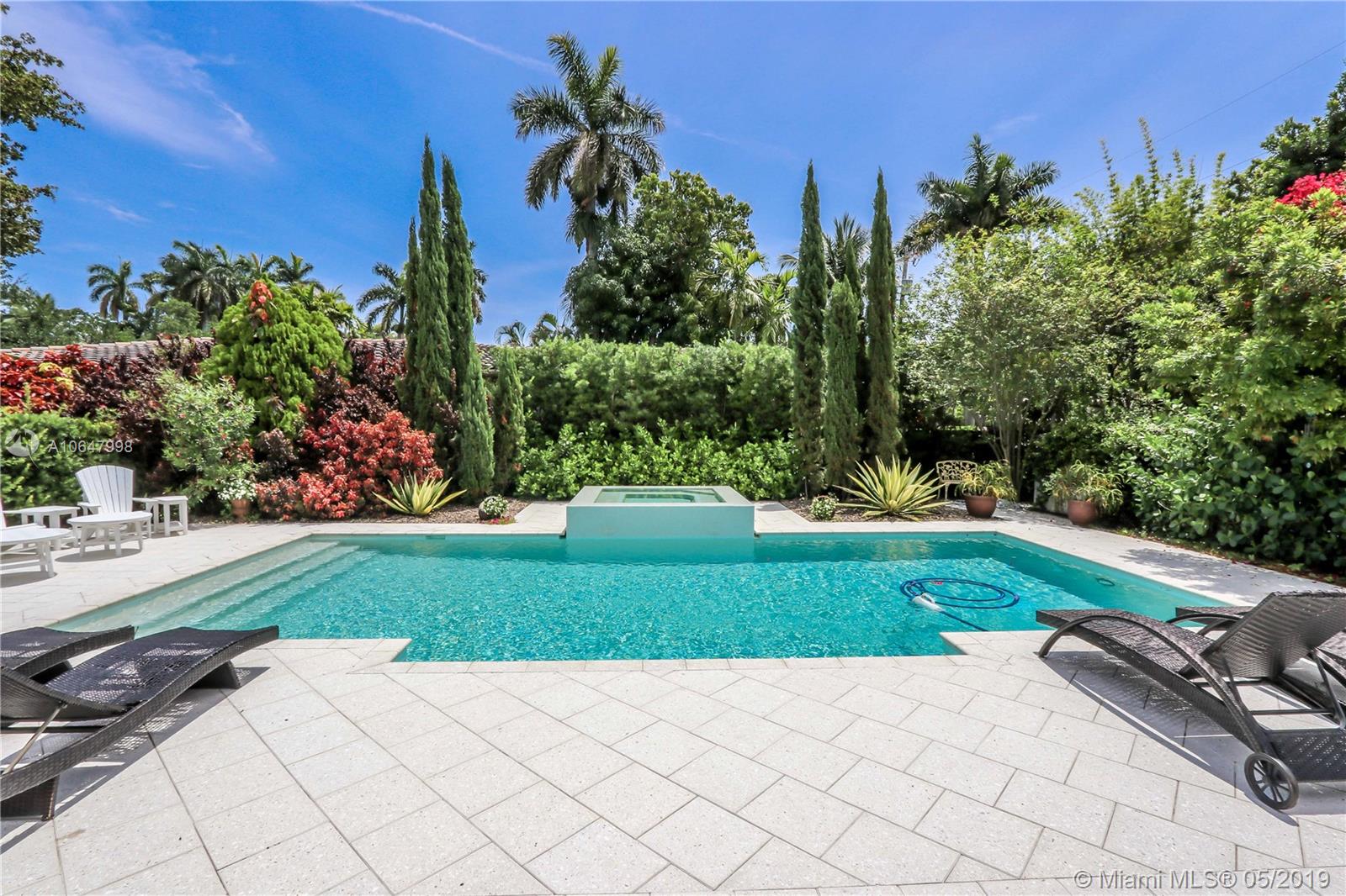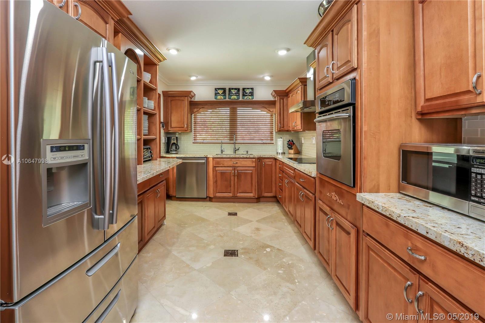 This magnificent 3BR/3BA corner property on double lot. Well maintained property features Travertine flooring throughout, crown moldings, impact windows and doors, many windows providing an abundance of natural light. Great kitchen features stainless steel appliances, granite counter tops w/ glass subway tiles. Updated 3 Baths has floor to ceiling marble walls w/onyx vanity tops. Master bath has separate Jacuzzi tub & shower. Circular driveway has large gates, lush tropical landscaping, tall privacy hedges, w/ iron fencing surrounding entire lot provides extra privacy. Large backyard from gate to alley. Spa/pool w/waterfall, w/ extended covered patio area which is ideal for outdoor dining & entertaining guests. Tankless water heater, filtered water system, indoor/outdoor security​​‌​​​​‌​‌​​​​‌‌​‌​​​​‌‌​​‌‌​​‌‌ system.