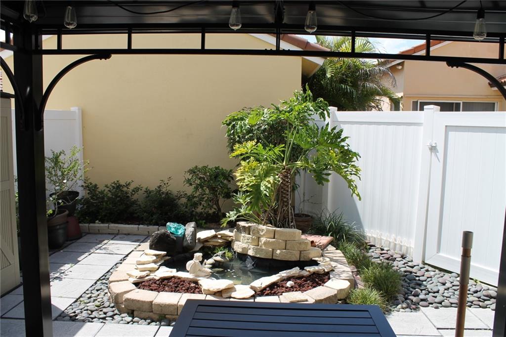 MOVE CONDITION FOR THIS UPDATED AND WELL MAINTAINED HOME. NEW IN 2016: ROOF, A/C AND KITCHEN APPLIANCES; HOT WATER HEATER IN 2014, HURRICANE GARAGE DOOR IN 2010, PVC FENCING IN 2015. UPDATED KITCHEN WITH WOOD CABINET AND QUARTZ COUNTERS, TILE FLOORING ON 1ST FLOOR, GARAGE OPENER, INTERIOR LAUNDRY ROOM, ACCORDION HURRICANE PROTECTION, LARGE PATIO WITH GAZEBO, LUSHLY LANDSCAPED. MAINTENANCE INCLUDES EXPANDED BASIC CABLE TV, INTERNET, COMMUNITY POOL, SECURITY PATROL 24 HR, FRONT YARD LANDSCAPE, MASTER SPRINKLER, MUST SEE!!