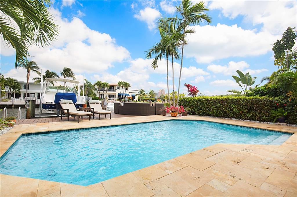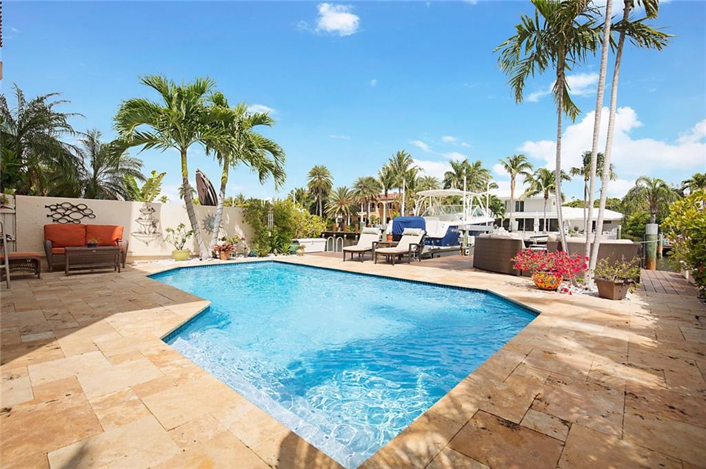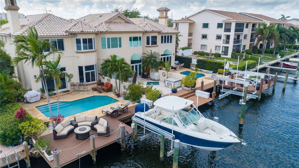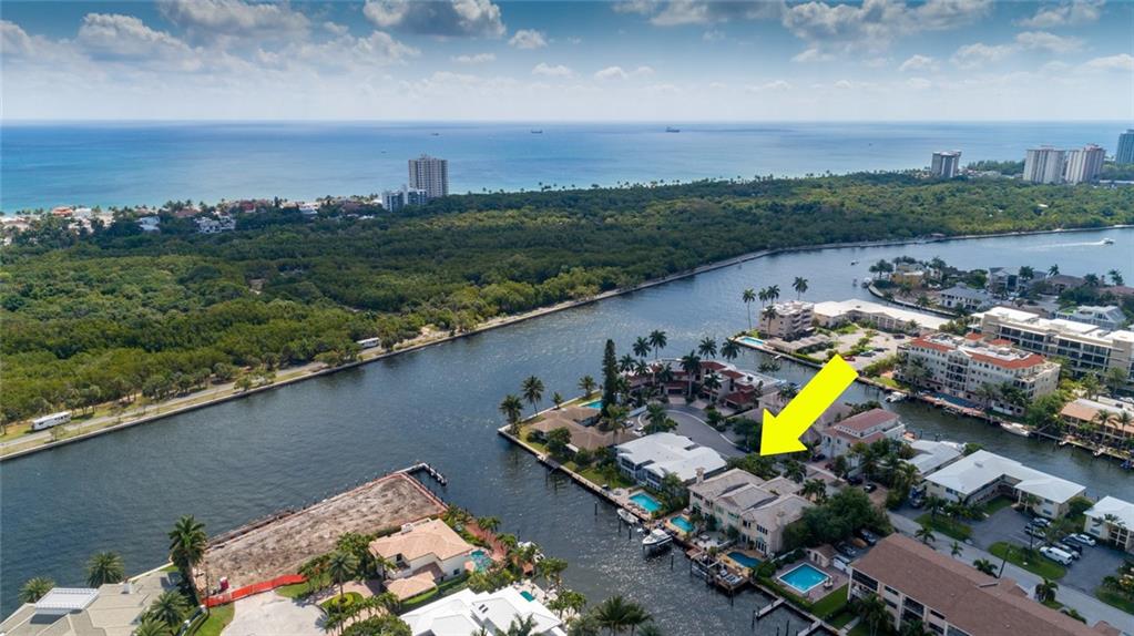 Unique 3/3.5 + private office, 2 car garage on deepwater only 2 homes off Intracoastal Waterway has the feel & privacy of a single family home. Watch the action on the Intracoastal Waterway from your extended deck with Birch State Park in the background. In the Coral Ridge Yachting Community, this unit is one of three in the complex & located on the East end corner. Features: Impact windows/door, all bedrooms have private on-suite baths, 10ft ceilings, personal full-size pool, boat lift, already raised seawall to the new code, fireplace, separate laundry room upstairs, private entry, extra-long & wide Chicago brick driveway that provides parking for 4 more cars, on a cul-de-sac street, coffered ceiling in dining area+. Bayview school district, minutes to the beach, park & Ft Laud Airport.