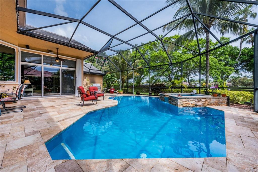 STUNNING GOLF COURSE ESTATE! TOTAL REMODEL WITH INCREDIBLE VIEWS! A TRUE 5 BEDROOM+ OFFICE, TRIPLE SPLIT FLOOR PLAN, BEAUTIFUL HARDWOOD FLOORS & CROWN MOLDING THRUOUT. YOU’LL LOVE THE CHEF’S DREAM KITCHEN WITH GAS RANGE, HIGH-END 42” WOOD CABINETS, GRANITE COUNTERS, SS APPLIANCES, WINE COOLER & BAR AREA. NEW REDESIGNED SOLAR HEATED POOL/SPA, HUGE SCREENED ENCLOSURE & COVERED AREA IS GREAT FOR ENTERTAINING. ACCORDION SHUTTERS, CUSTOM IMPACT FRONT DOORS, PAVER CIRCULAR DRIVE & WALKWAY. CUSTOM CLOSETS IN EVERY BEDROOM PLUS GARAGE BUILT-INS. HURRY TO THIS ONE!
