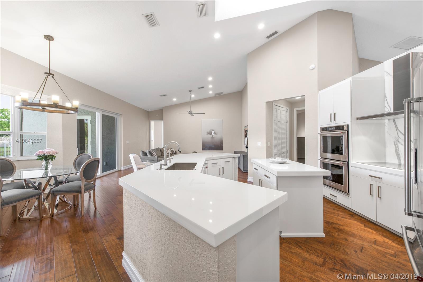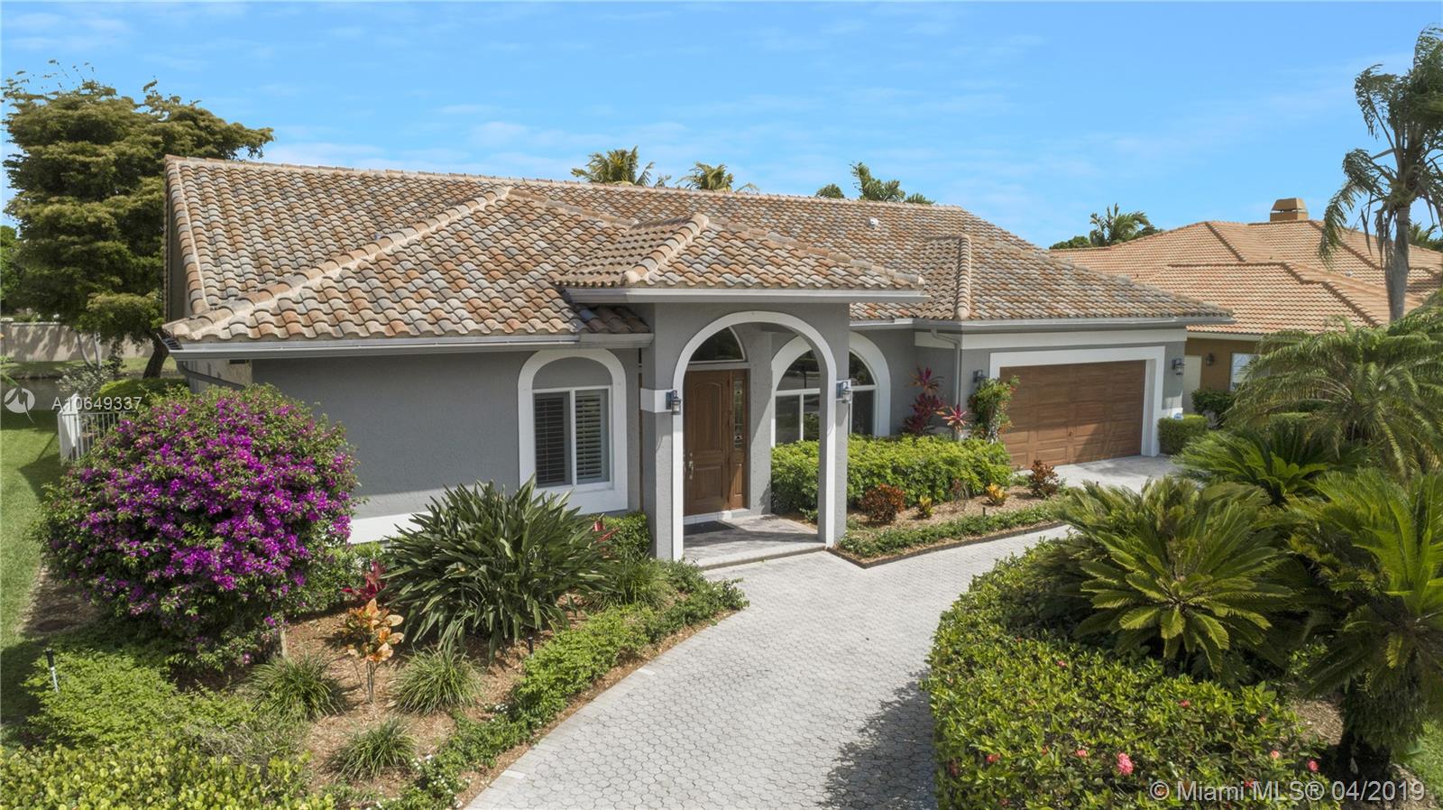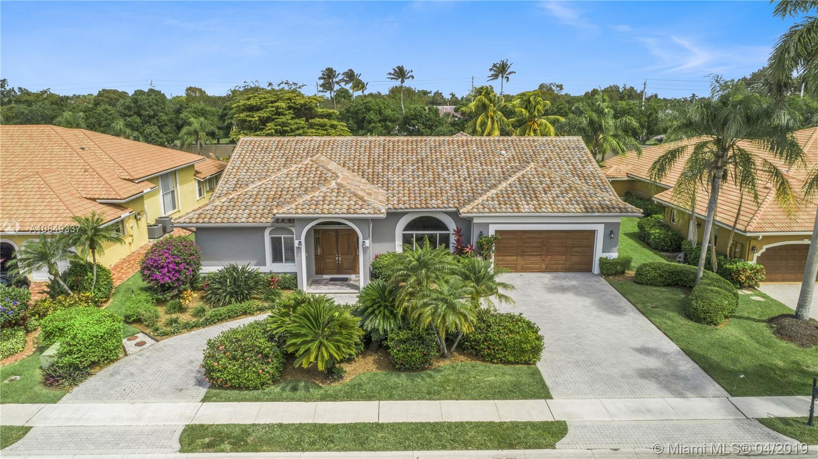 Presenting a rare opportunity to own this move-in ready 5BD/3BD pool home updated in 2018, w/private water views in the gated community of Plantation Palms. Modern living at its finest w/an open split plan featuring great room, formal dining, family room, private master suite, laundry room & storage options. Brand new kitchen w/top-of-the-line SS appliances, custom glass countertops, double wall-ovens & induction cooktop. Enjoy Florida’s outdoor lifestyle on your expansive loggia with summer kitchen and state-of-the-art built-in grill, perfect for entertaining. Entire property is hurricane impact, new roof & AC, hardwired security alarm & smart thermostat. Located in A-rated school district of Central Park Elem., centrally located blocks from American Heritage. Bring your fussiest buyers.