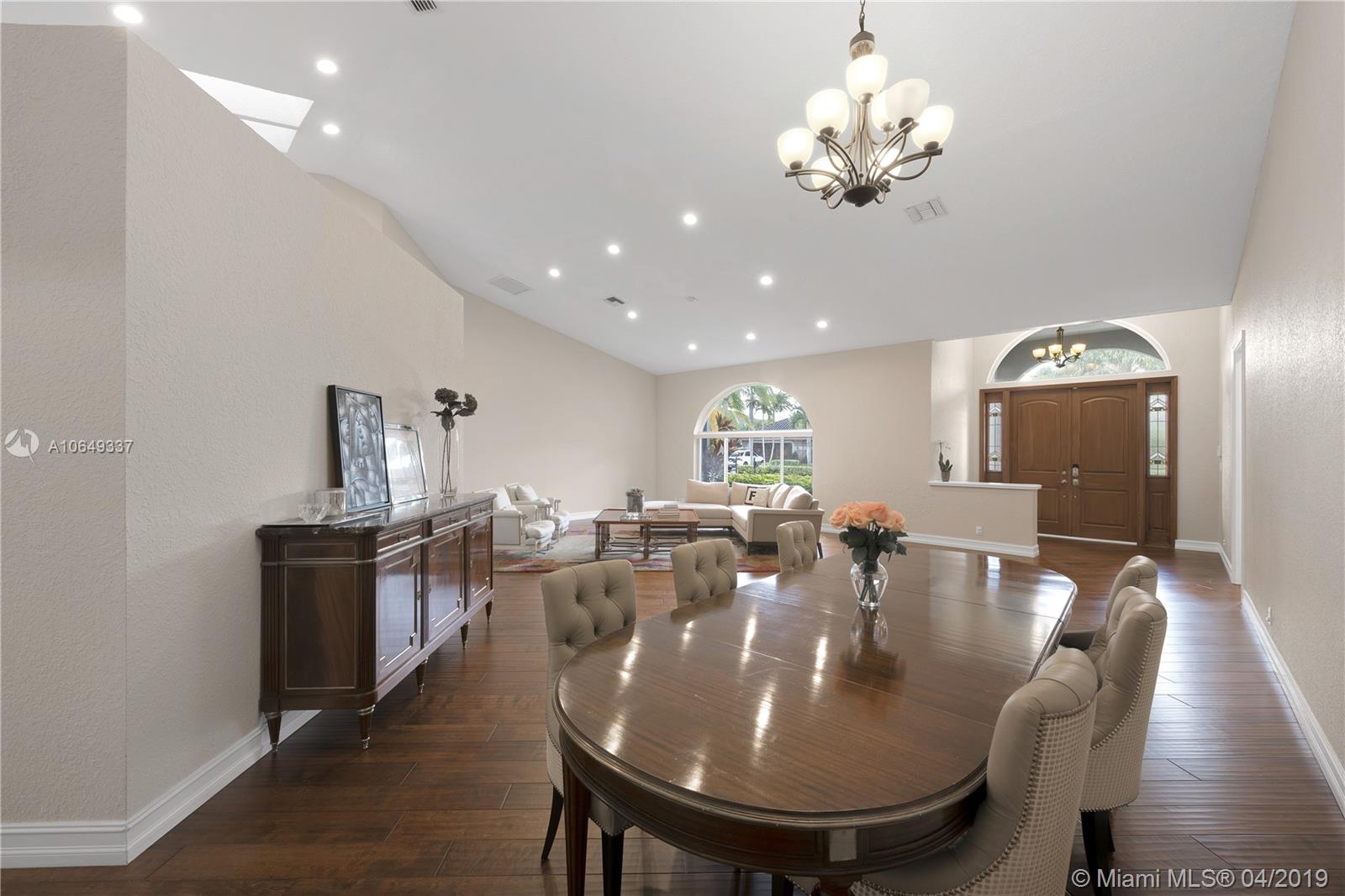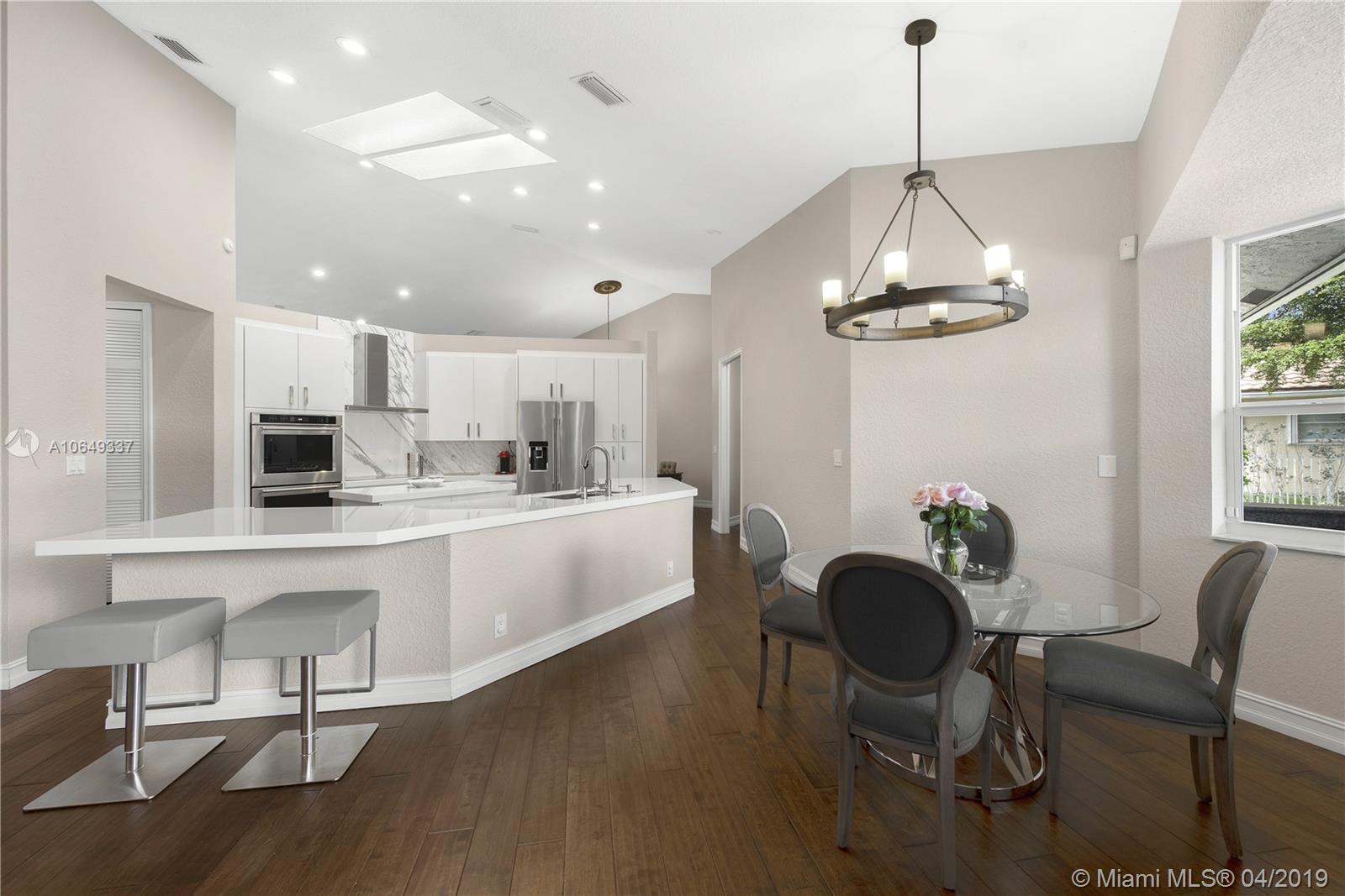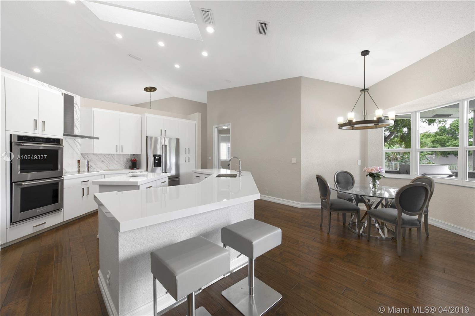 Presenting a rare opportunity to own this move-in ready 5BD/3BD pool home updated in 2018, w/private water views in the gated community of Plantation Palms. Modern living at its finest w/an open split plan featuring great room, formal dining, family room, private master suite, laundry room & storage options. Brand new kitchen w/top-of-the-line SS appliances, custom glass countertops, double wall-ovens & induction cooktop. Enjoy Florida’s outdoor lifestyle on your expansive loggia with summer kitchen and state-of-the-art built-in grill, perfect for entertaining. Entire property is hurricane impact, new roof & AC, hardwired security alarm & smart thermostat. Located in A-rated school district of Central Park Elem., centrally located blocks from American Heritage. Bring your fussiest buyers.