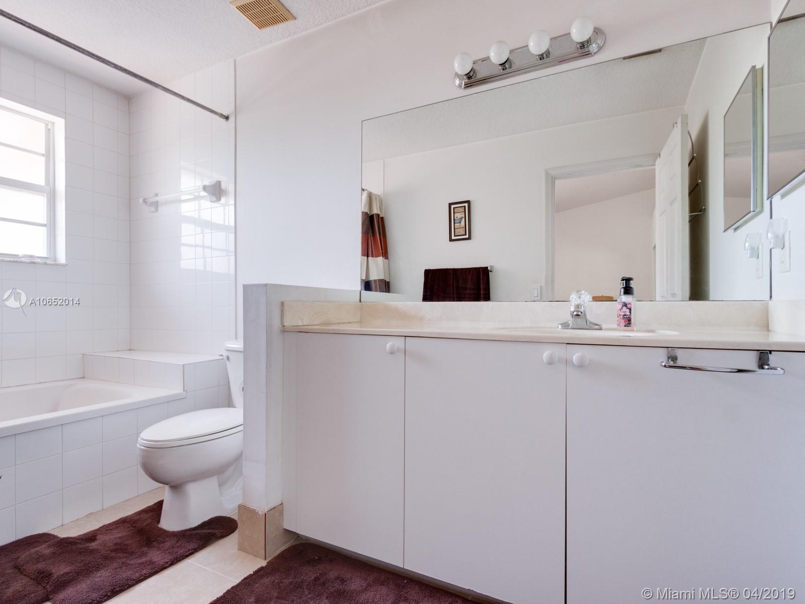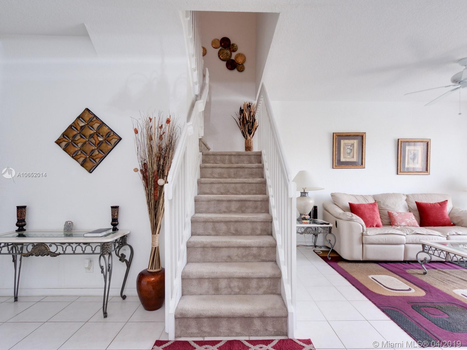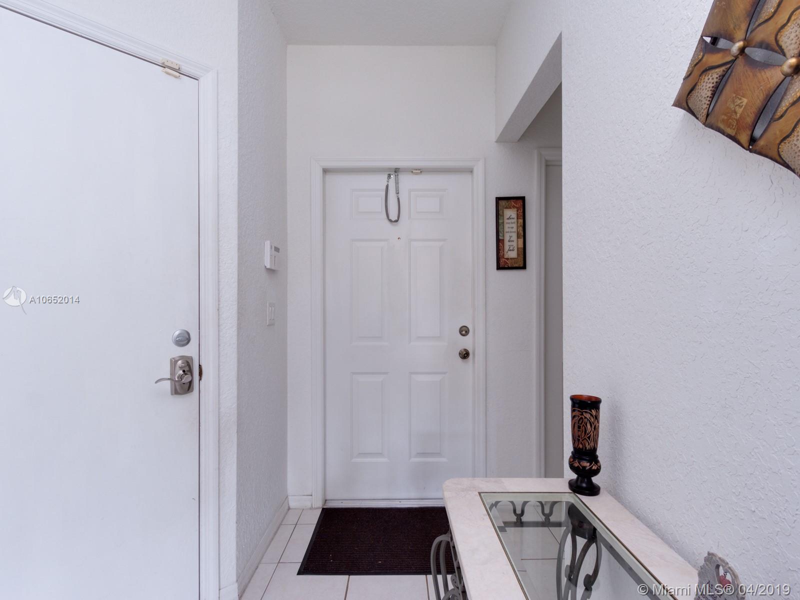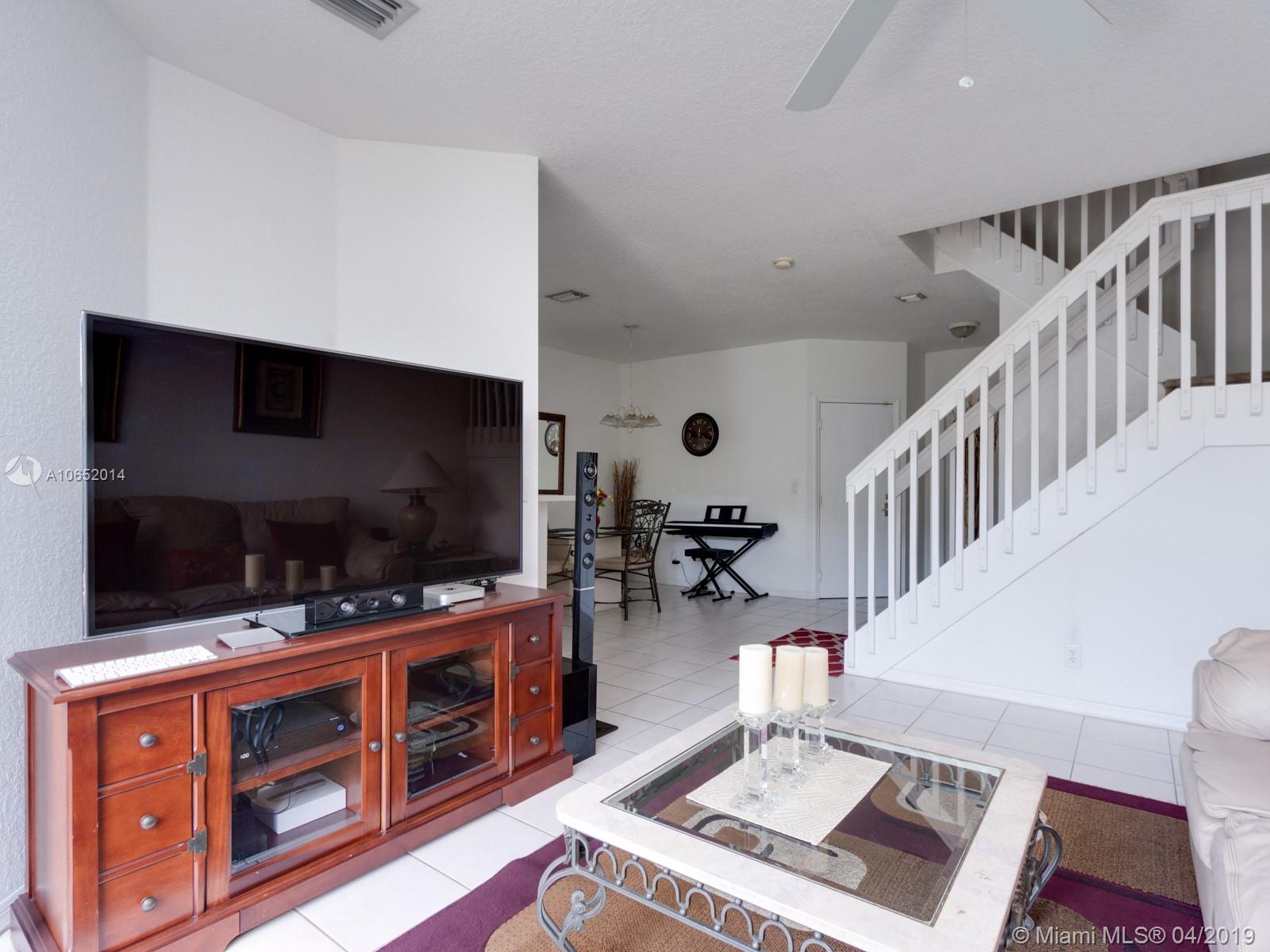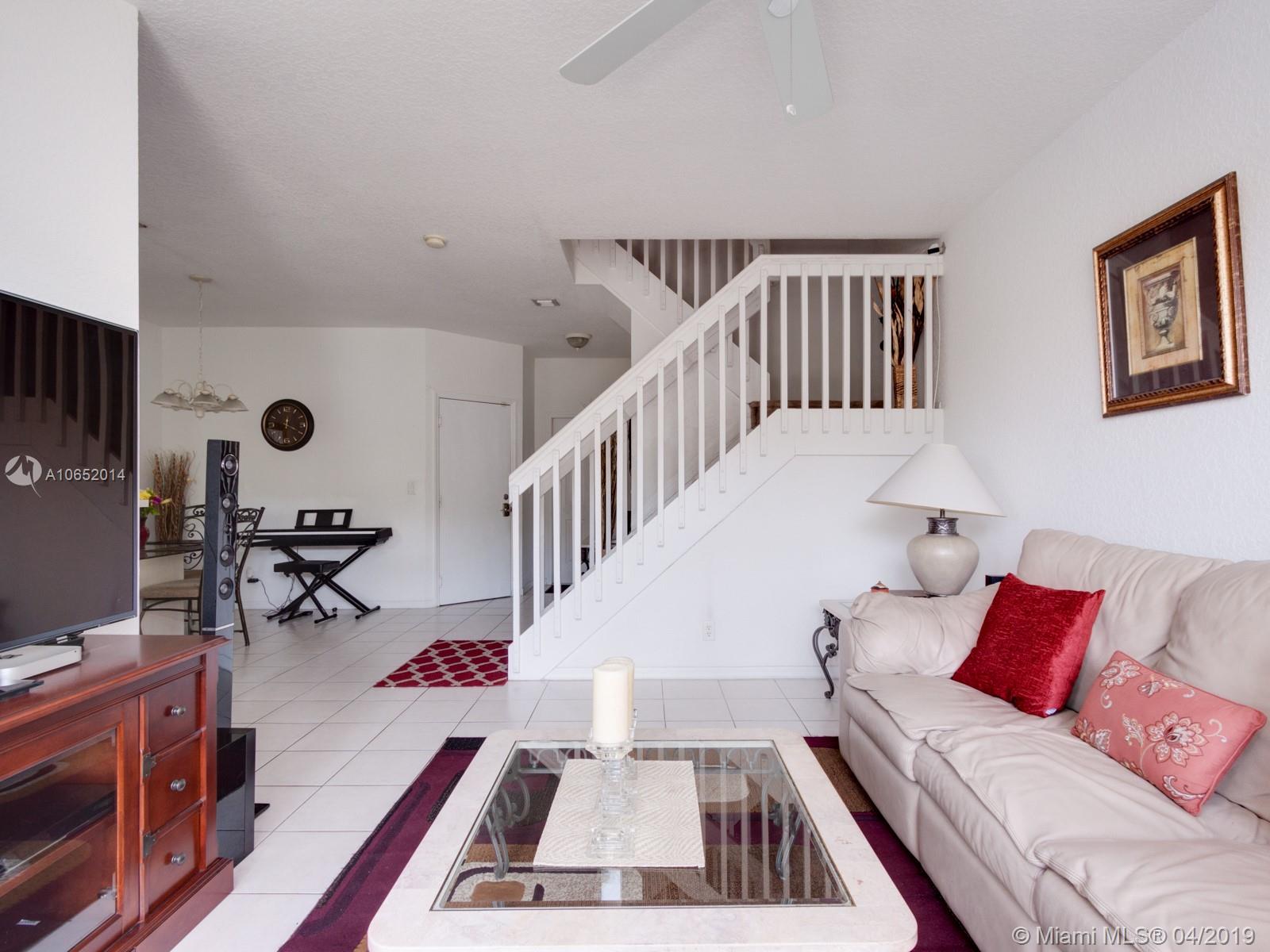 Come experience this beautiful townhouse with a serene view of a massive lake and lake fountain. The driveway of the home can easily fit 4 vehicles. Property has a one car garage. As you walk in you will find a half bathroom for the guests, large dining room space, family room with view of the lake, kitchen with a new microwave and dishwasher, and a separate laundry room with brand new washer and dryer. Upstairs you will find a large master bedroom with a walk-in closet and it’s separate master bathroom. There are two other bedrooms upstairs with a shared bathrooms. Both upstairs bathroom floors have new ceramic tile floors. Property comes with security cameras, alarm system and accordion shutters for hurricane protection. Property will not last, make an offer ASAP before it's too late.
