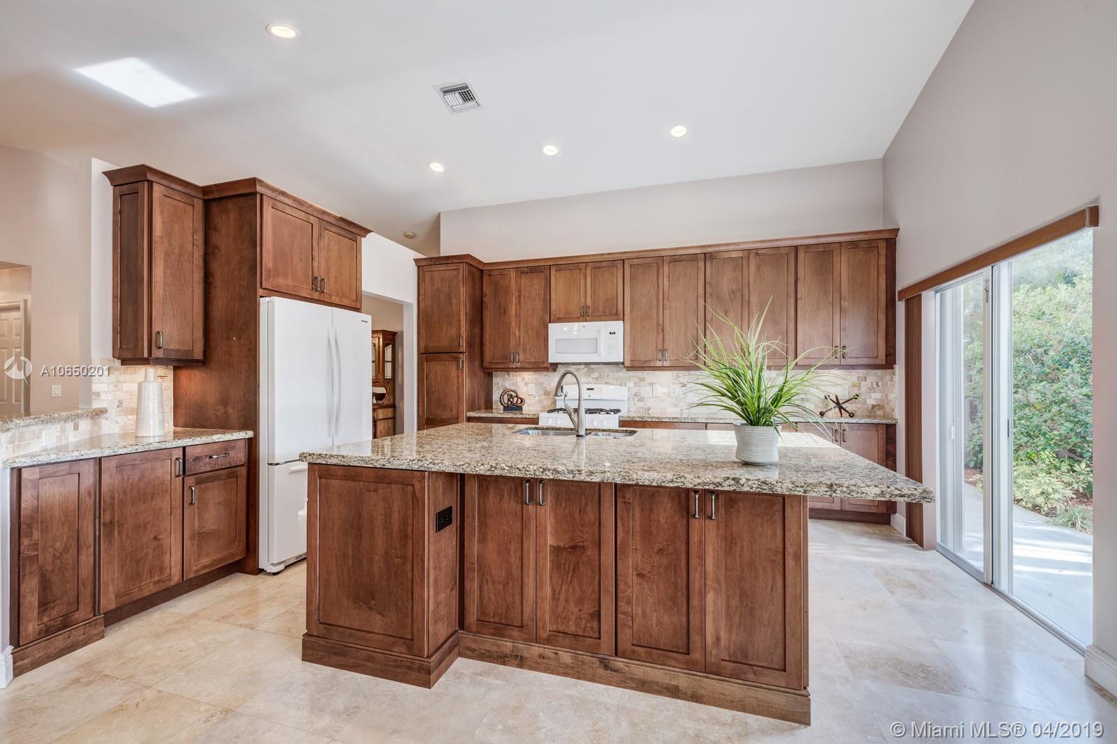 Are YOU looking for a WESTON home well under $400k with a gorgeous remodeled KITCHEN with GRANITE counter tops, a GAS range, touch faucet and MASSIVE island with tons of storage, huge family room, ONE STORY, 2 CAR garage, then call RIGHT NOW! This will not last! Owners have taken great care of this home. The common areas feature TRAVERTINE marble flooring. The back is beautifully LANDSCAPED with an oversized patio. ACCORDIAN hurricane shutters. Roof has been well maintained and is in great condition. All that is needed are your personal touches. A/C under service contract. CITY GAS for range, water heater and dryer - saves $$. GREAT SCHOOLS, easy highway ACCESS.