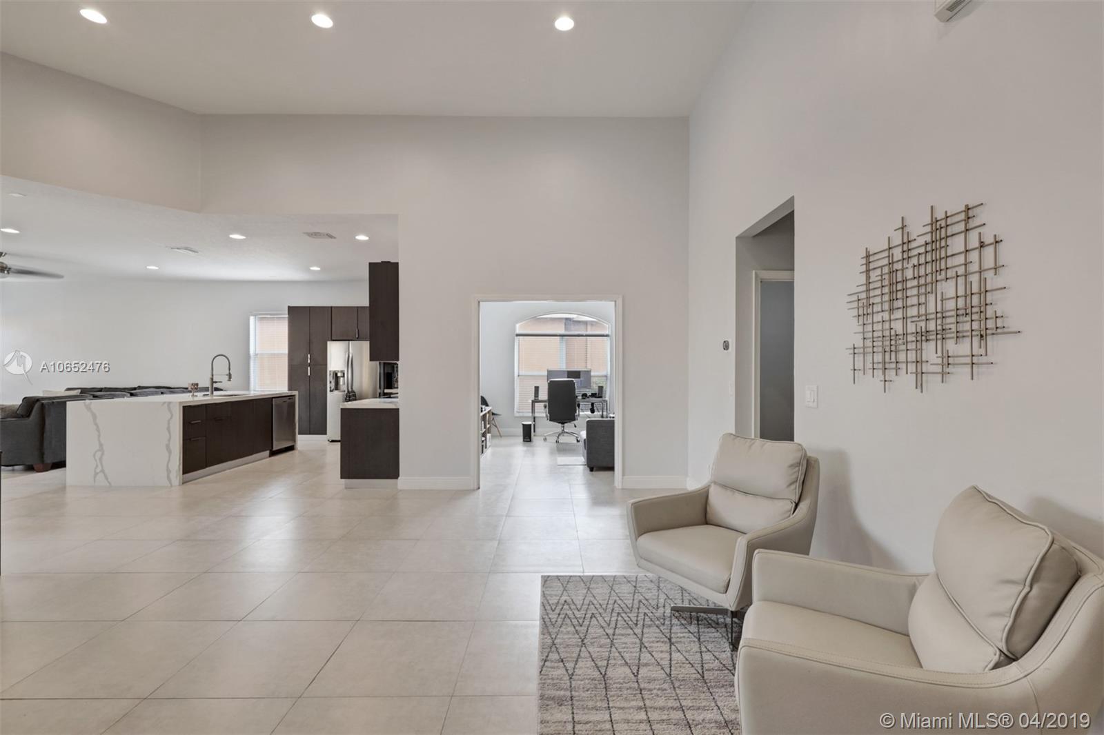 Embrace the Florida lifestyle in this completely remodeled 4BR/2.5BA home with 3-car garage in the established Monarch Lakes community. Step inside to an airy open floorplan featuring volume ceilings, and Italian porcelain tile flooring. This modern designed home has remodeled kitchen with huge island with waterfall Quartz countertops. This home is a Smart home with many features including smart front door, nest AC , cameras and smart lighting. The split bedroom floor plan allows for privacy with a master suite with custom cabinetry in the walk in closet, master bath with dual sink, soaking tub and walk in shower. Outdoors a private oasis awaits you with a professionally landscaped backyard with large screened-in patio. Conveniently located close to shopping & dining. Low HOA.