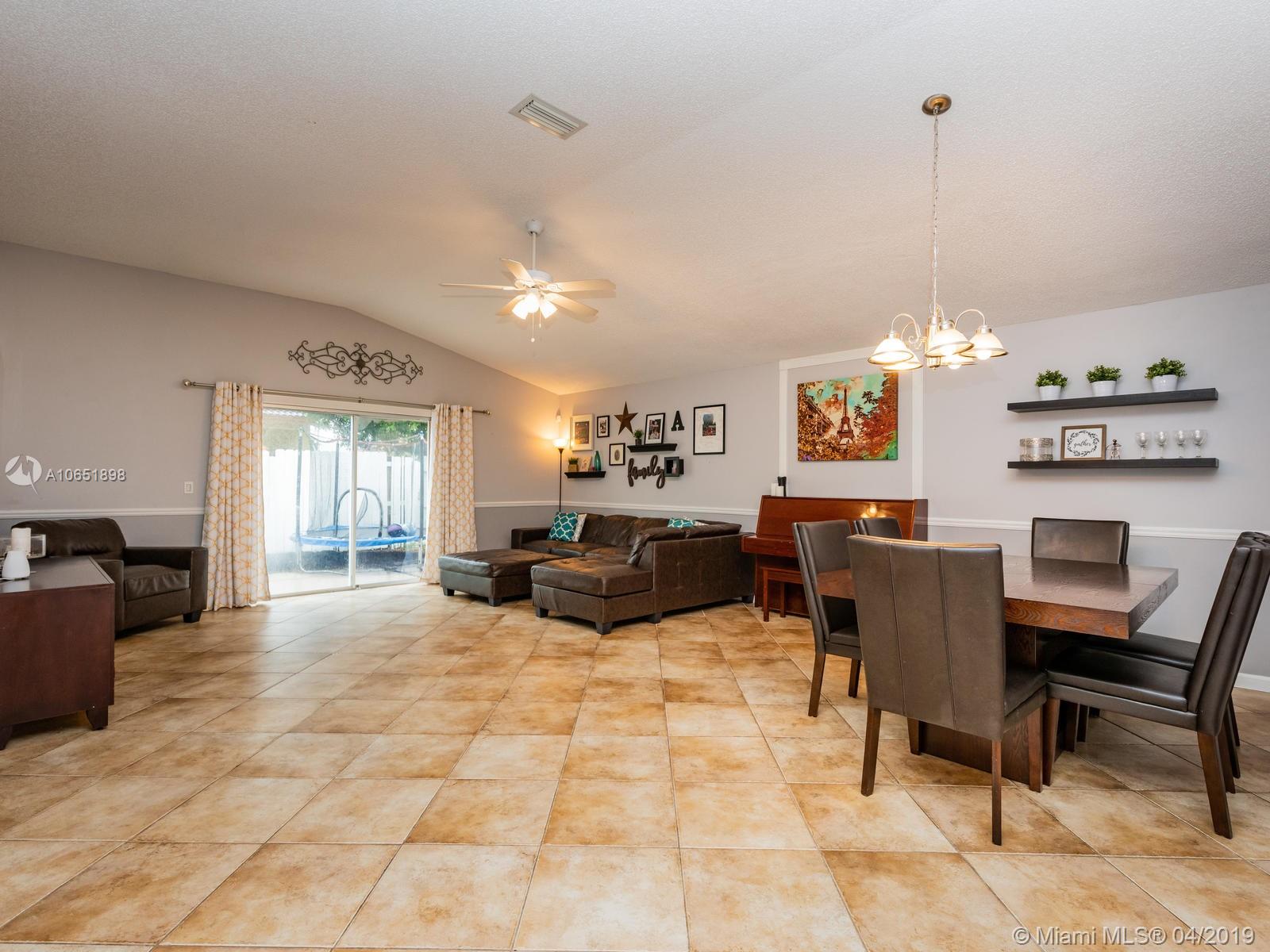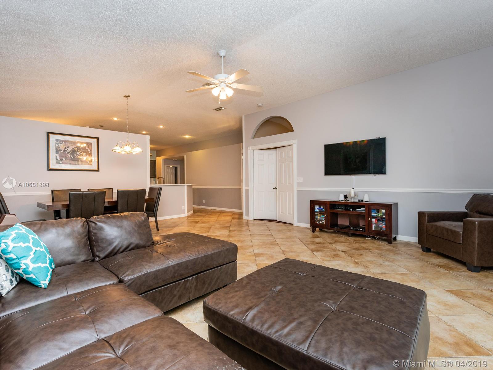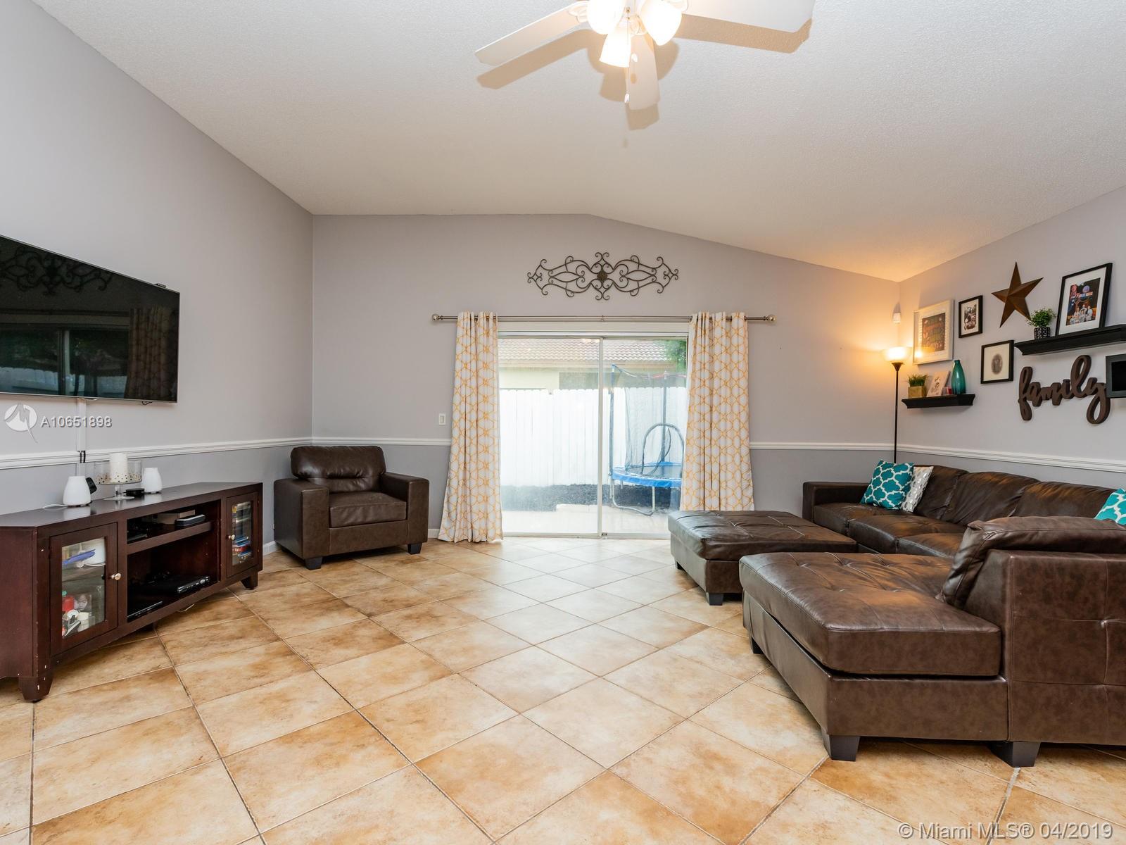 Very well kept 3 bedroom and 2 bathroom one story single family home. Laminated wood floors, upgraded kitchen and bathrooms. Nice backyard. Located in a family oriented community with lots of amenities. Roof, water heater, A/C and appliances are 4 years old. House was painted 4 years ago.