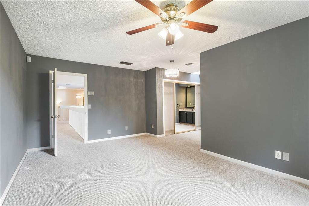 Beautiful 3 bedroom 2 ½ bath town house in sought after Fairway Village! Walk up into your front courtyard patio to the front door. Main living areas down stairs are all tile floors. Grand living area with volume ceilings, large living room, den/office and a two story atrium. Kitchen has white cabinets, white appliances, gray speckled Formica counter tops and tile back splash overlooking dining/eat-in kitchen area. Second floor all carpet. Huge master bedroom with walk in closets! Separate vanity area w/dual sinks. Master bathroom has roman tub/shower. Large secondary bedrooms w/ large bathroom. Laundry closet. Open wood deck patio. One car garage and long driveway. Low Homeowners Association Dues! Community pool! Centrally located to shops, entertainment and highways! Great schools!